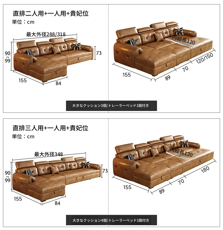 3.48メートル-トリプルサイズ+機能なしユニット+フェイスタイプ+フットスツール