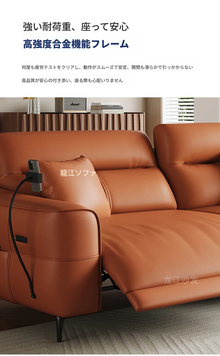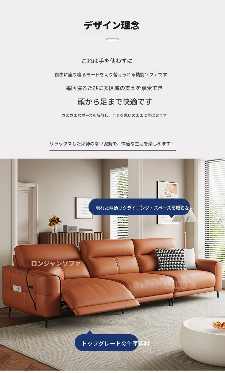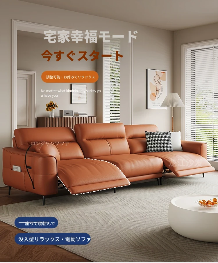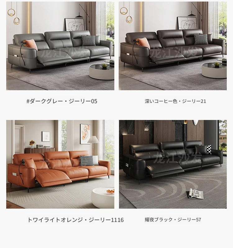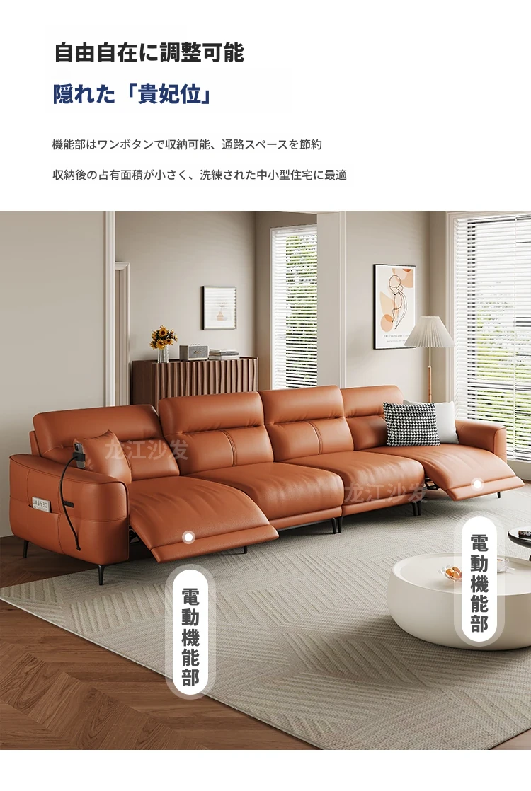 壁に寄せない革張り電動ソファ - 本革使用、快適な座り心地を実現!東莞龙江ソファ公式フラッグシップストアで購入可能。高品質な素材で、スタイリッシュな空間を演出します!