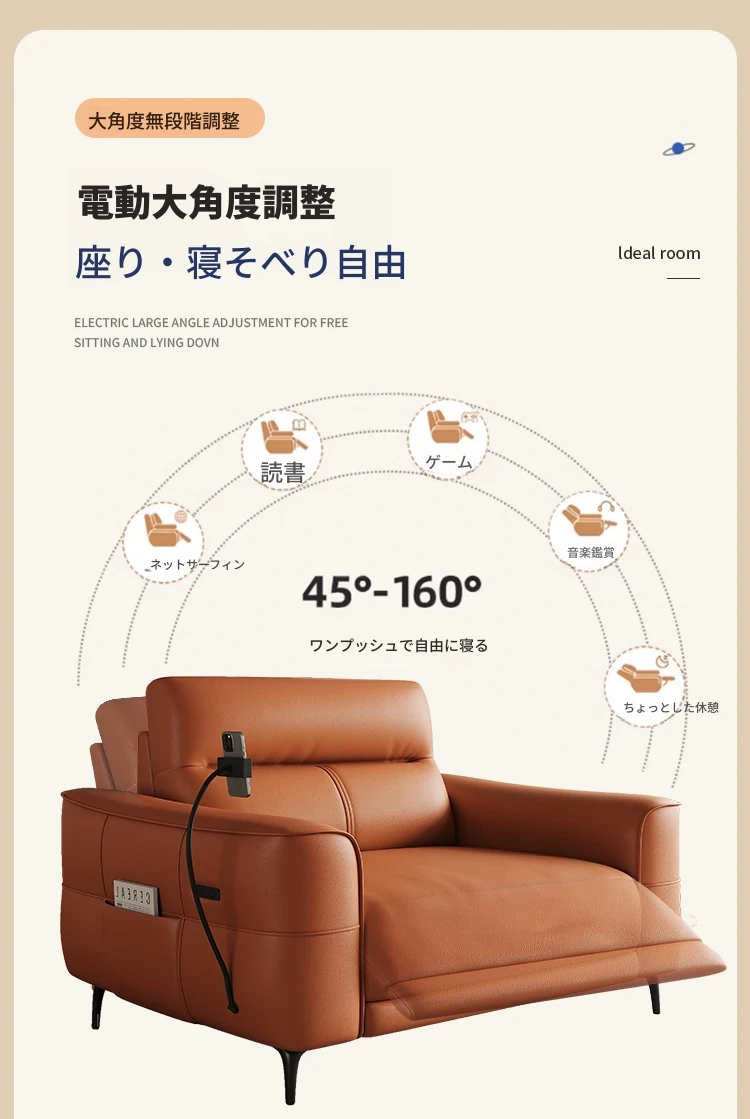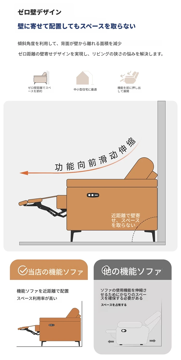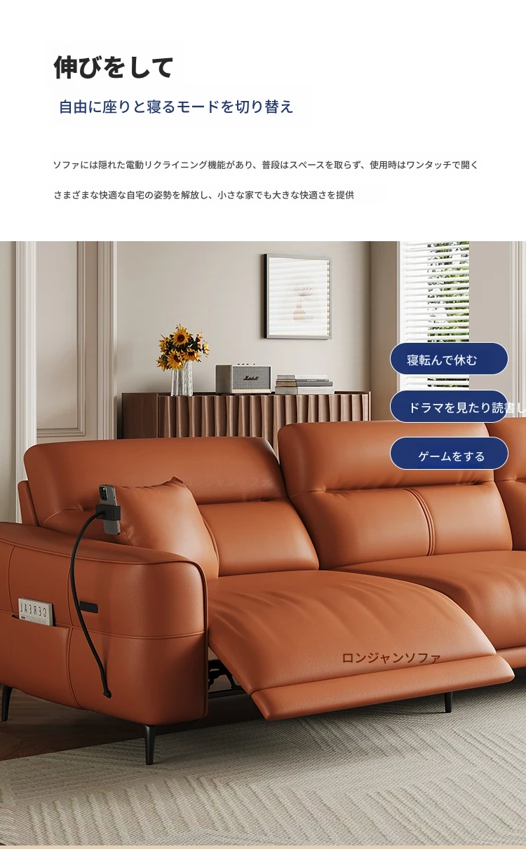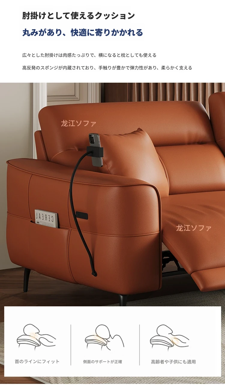 壁に寄せない革張り電動ソファ - 本革使用、快適な座り心地を実現!東莞龙江ソファ公式フラッグシップストアで購入可能。高品質な素材で、スタイリッシュな空間を演出します!
