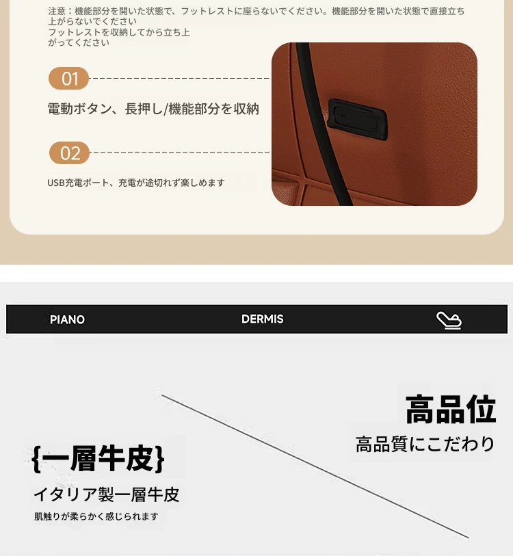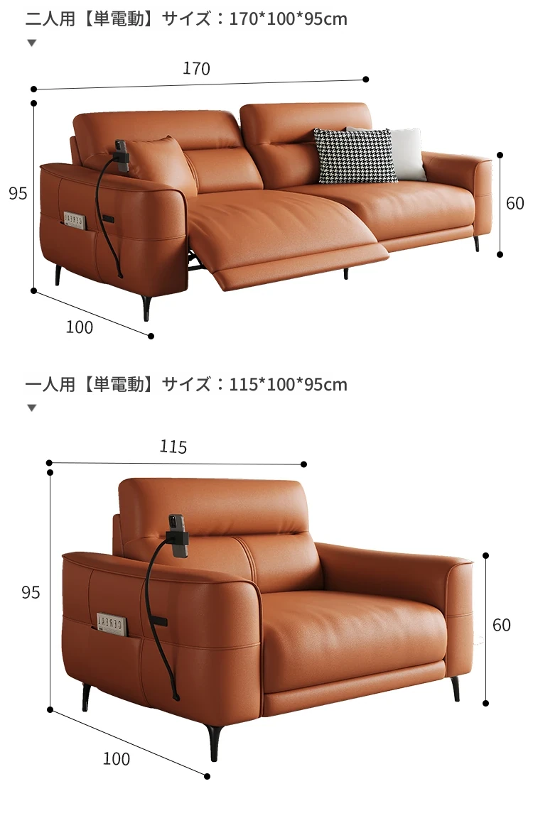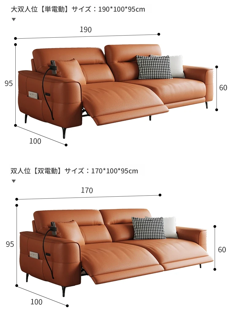 1.7m-シングル電動-ダブル席 【接触面輸入加厚トップグレード小黄牛皮】