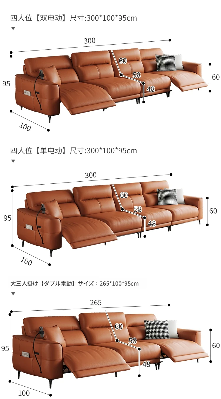3.0m-シングル電動-四人席 【接触面輸入加厚トップグレード小黄牛皮】