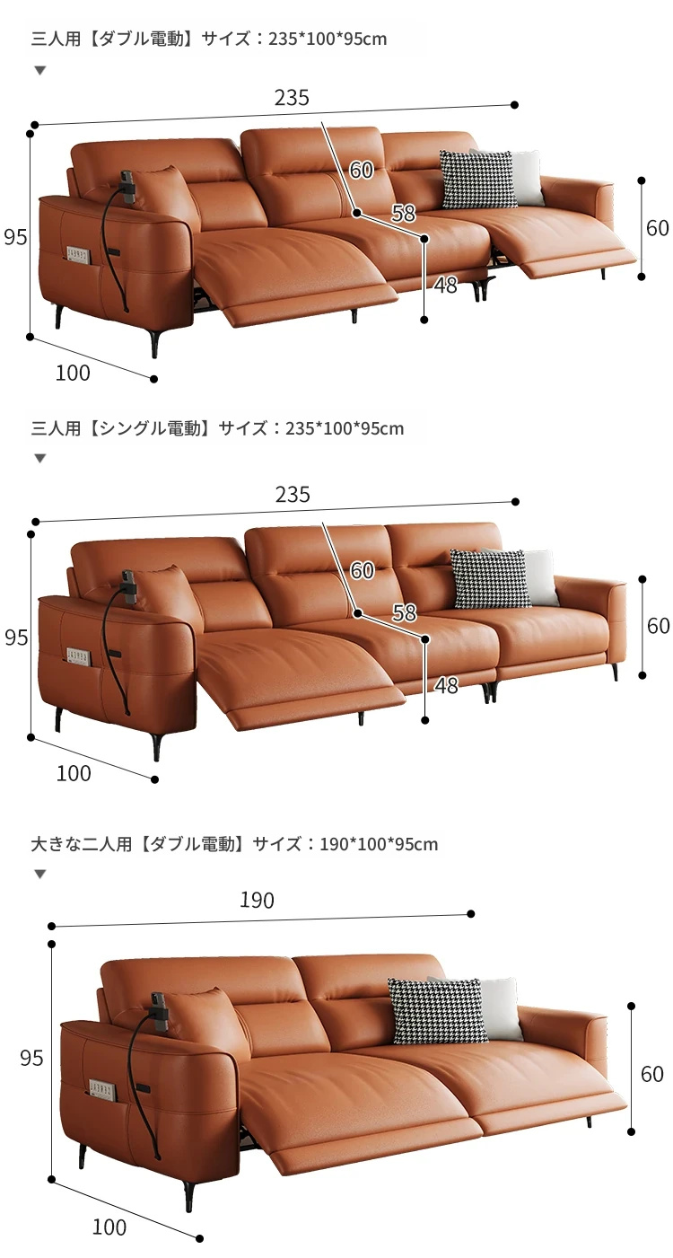2.35m-ダブル電動-三人席 【接触面輸入加厚トップグレード小黄牛皮】