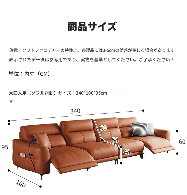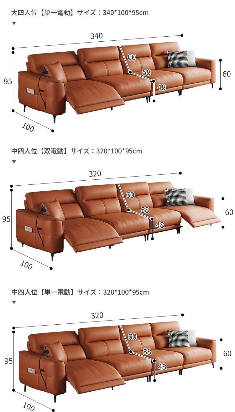 3.4m-ダブル電動-大四人席 【接触面輸入加厚トップグレード小黄牛皮】