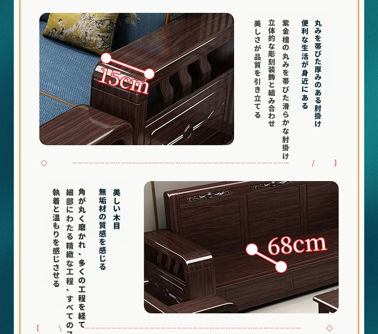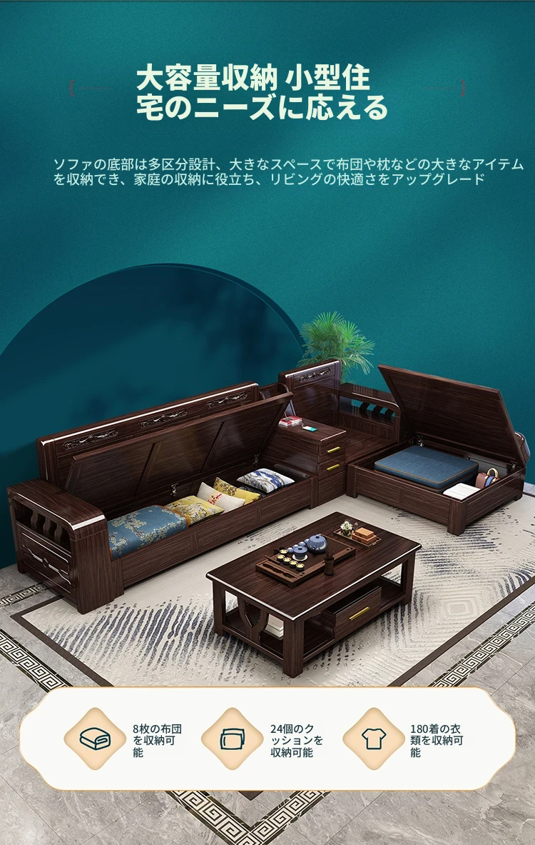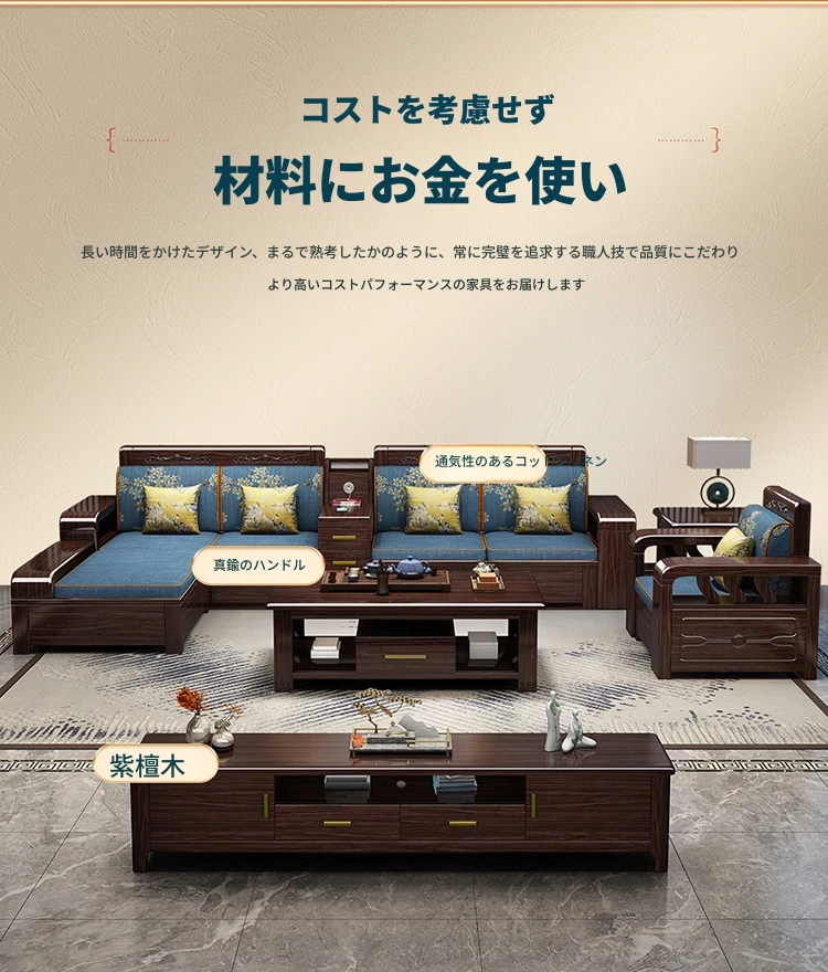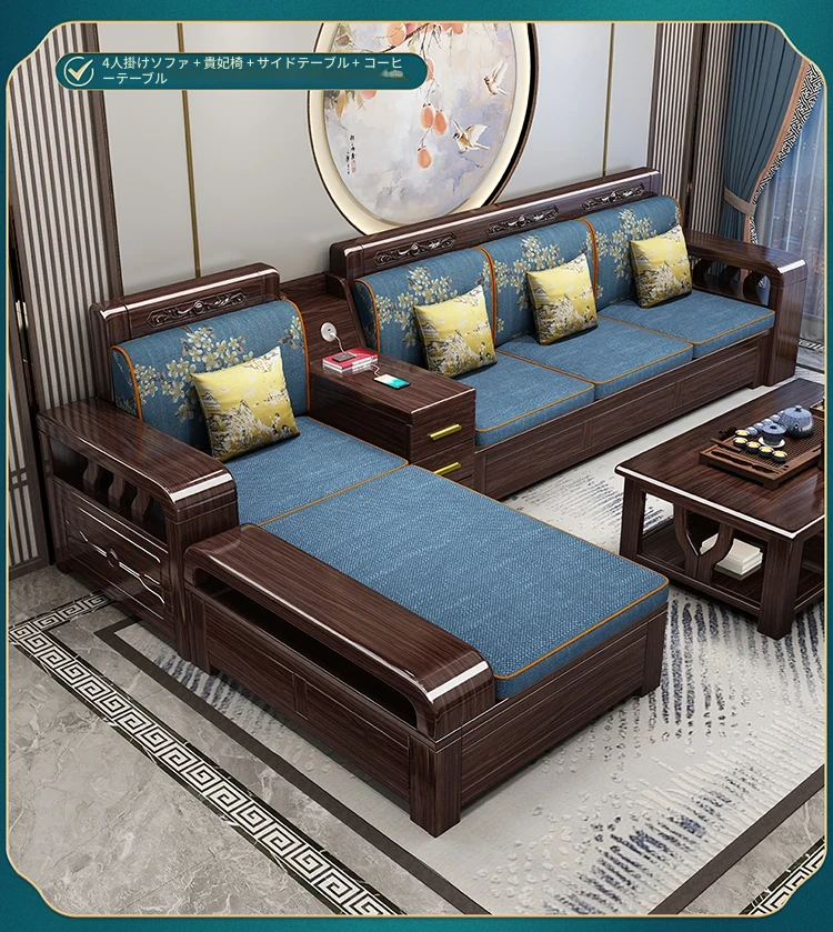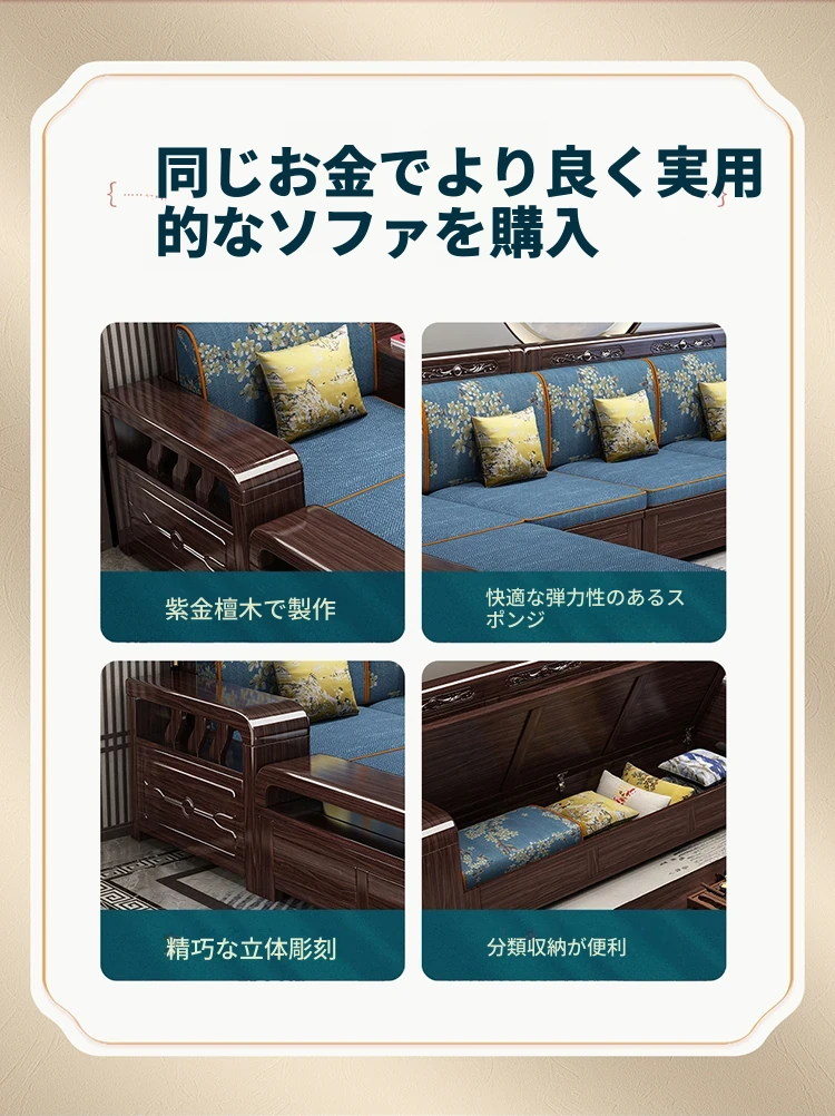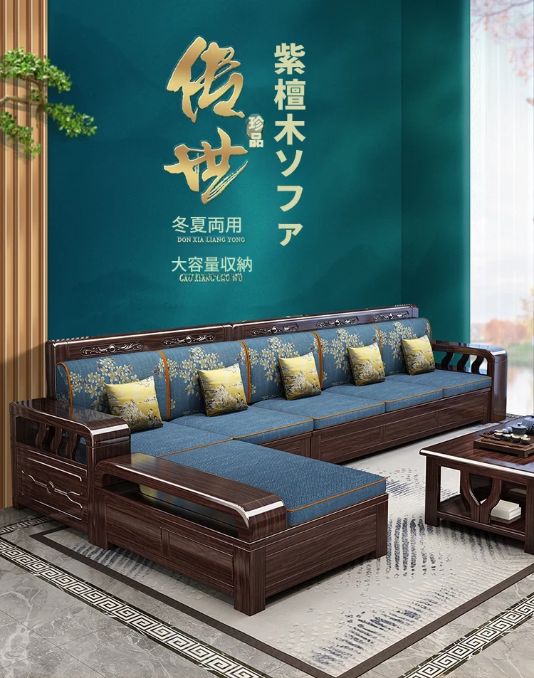 紫金檀木製モダン中式ソファ - 2025年新作、大小戸型に対応、貴妃スタイルの収納付き、リビングルームに最適な高級家具!