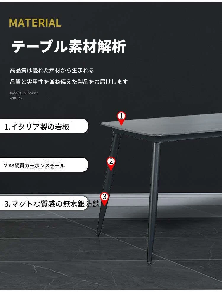 岩板単テーブル180*80+4脚の椅子 テーブルと椅子の色の備考