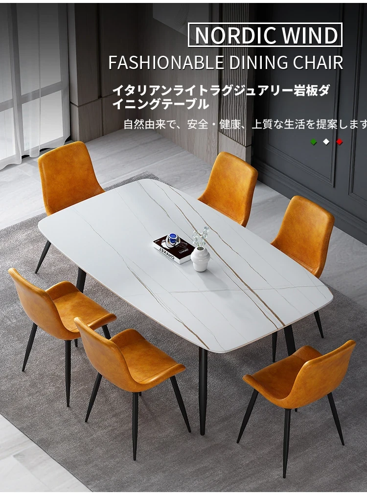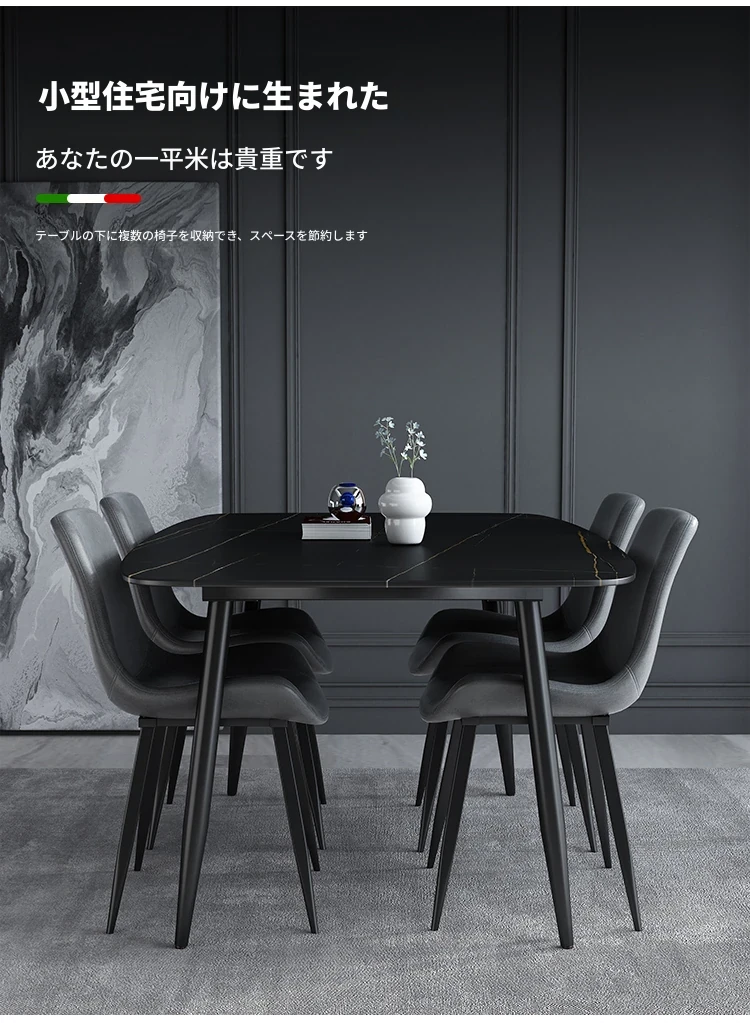 イタリアンスタイルのラグジュアリーな長方形ダイニングテーブル&チェアセット!モダンでシンプルなデザイン、北欧風のエレガンスが小さなお部屋にもピッタリ。家族や友人との素敵なひとときを演出します!