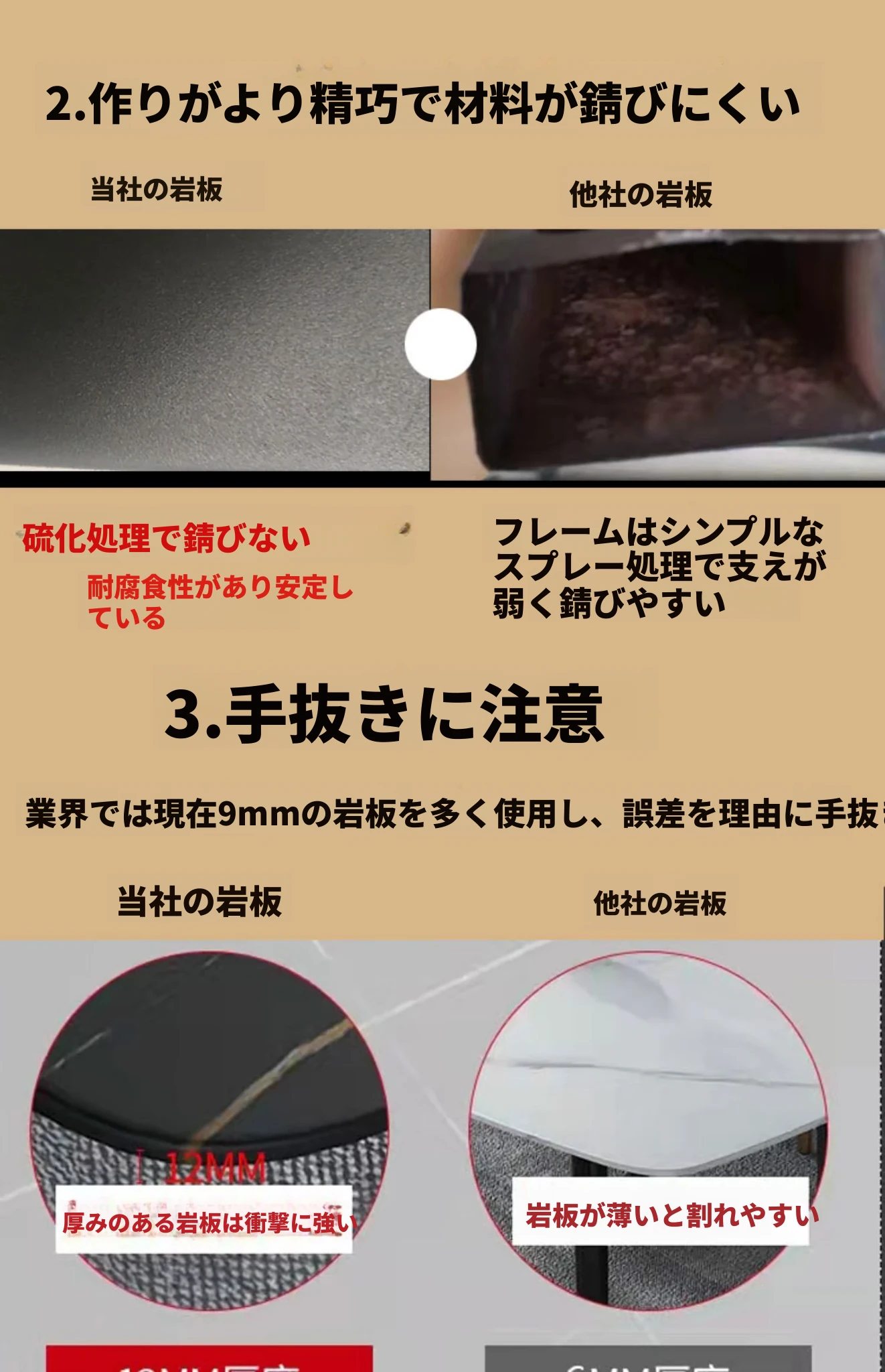 12mm岩板単テーブル180*80 イタリア工芸