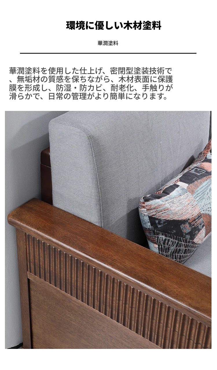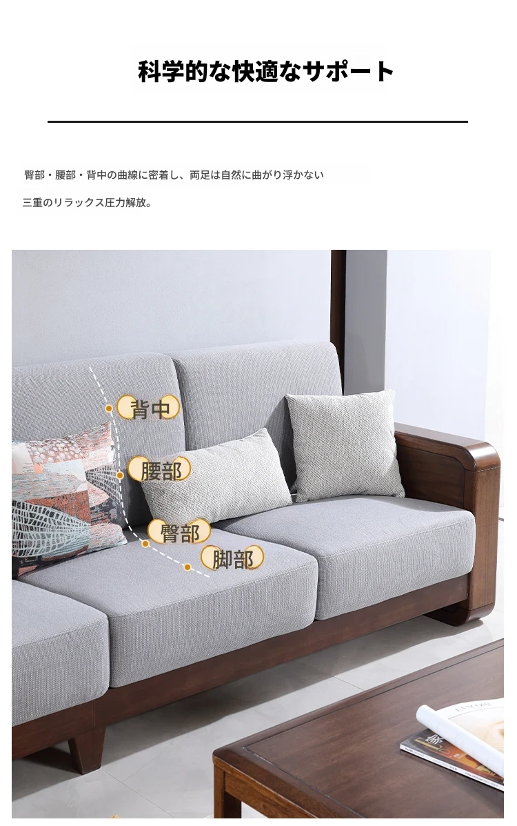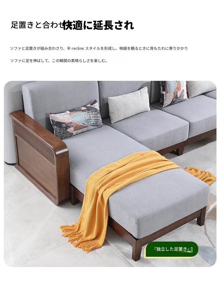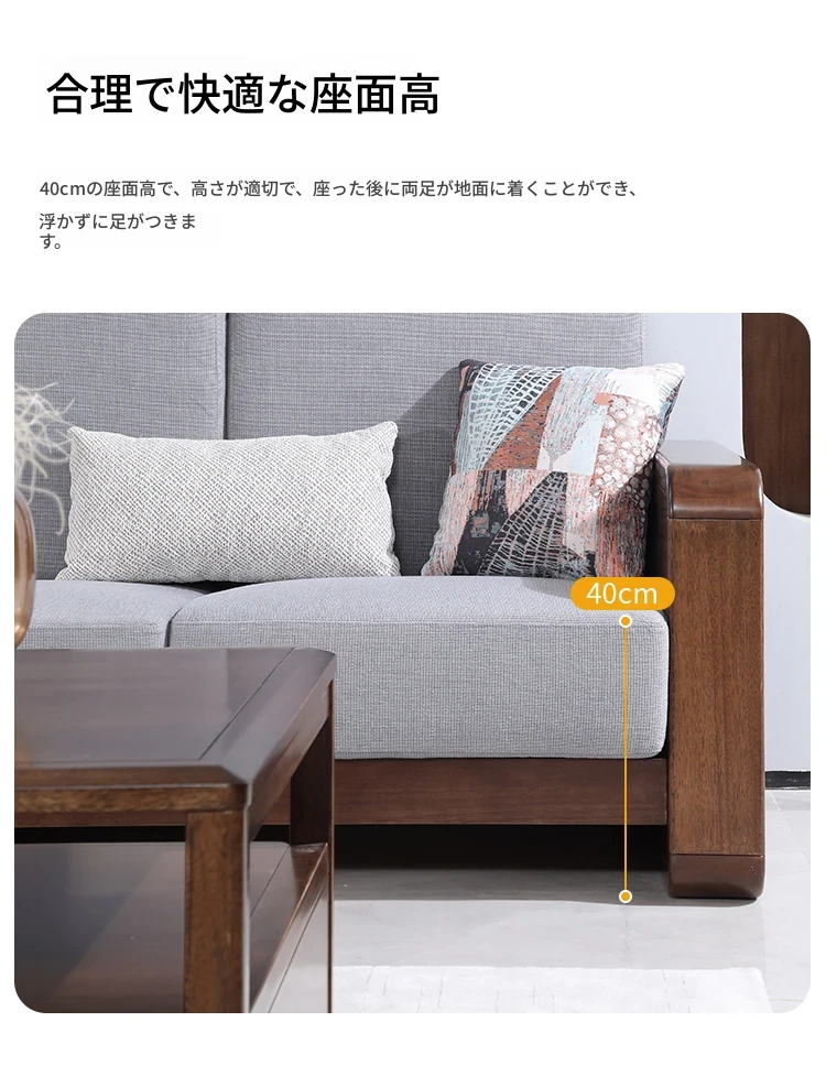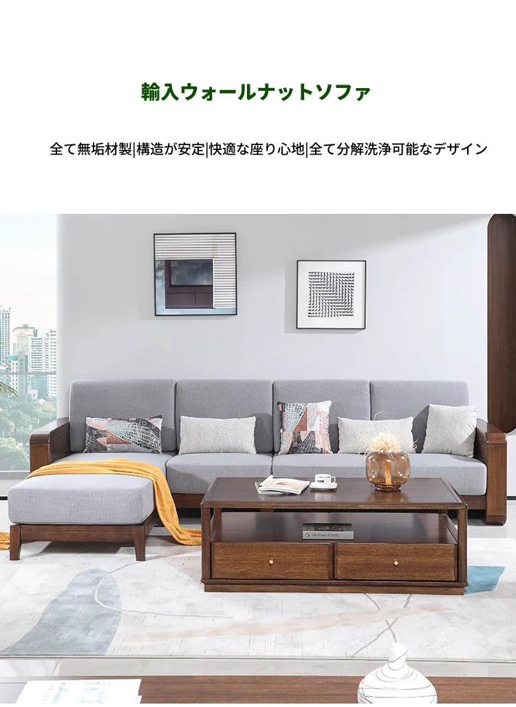 全実木製ソファ|モダンでシンプルなデザイン|小型リビングに最適|ウォールナット材の3人掛け&4人掛けカウチソファ|居心地の良い空間を演出!