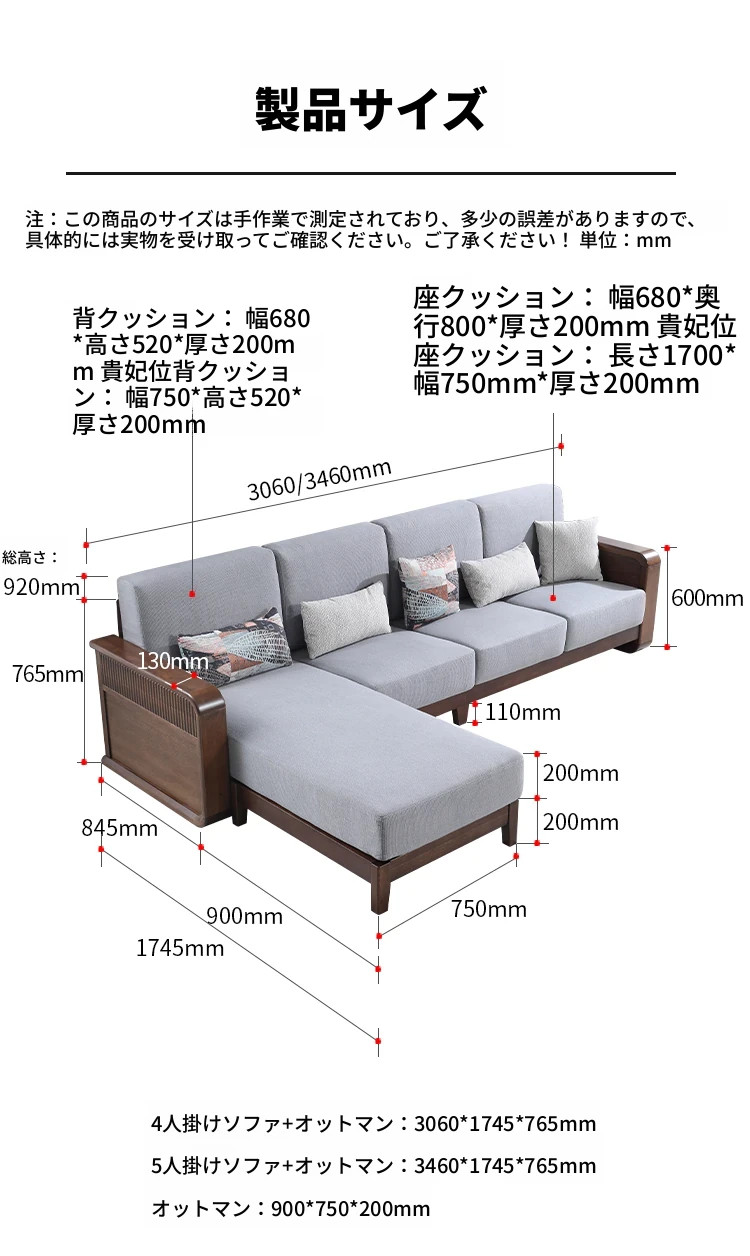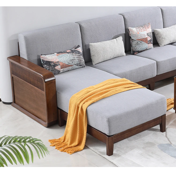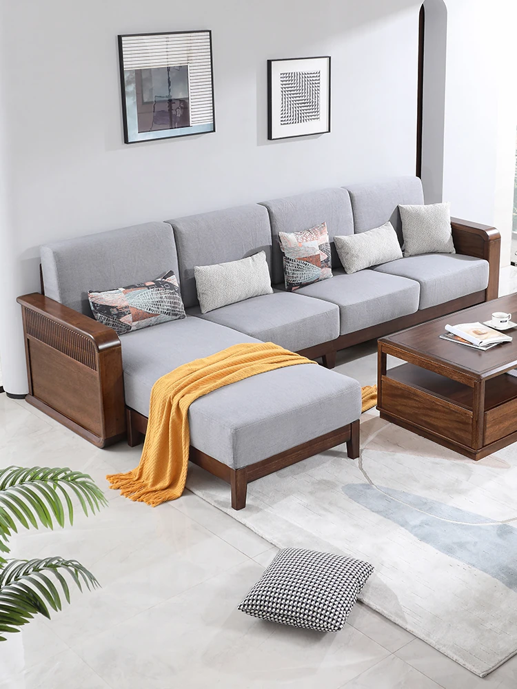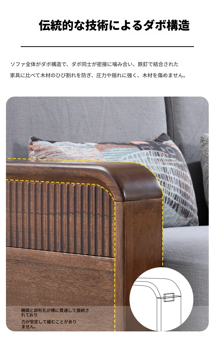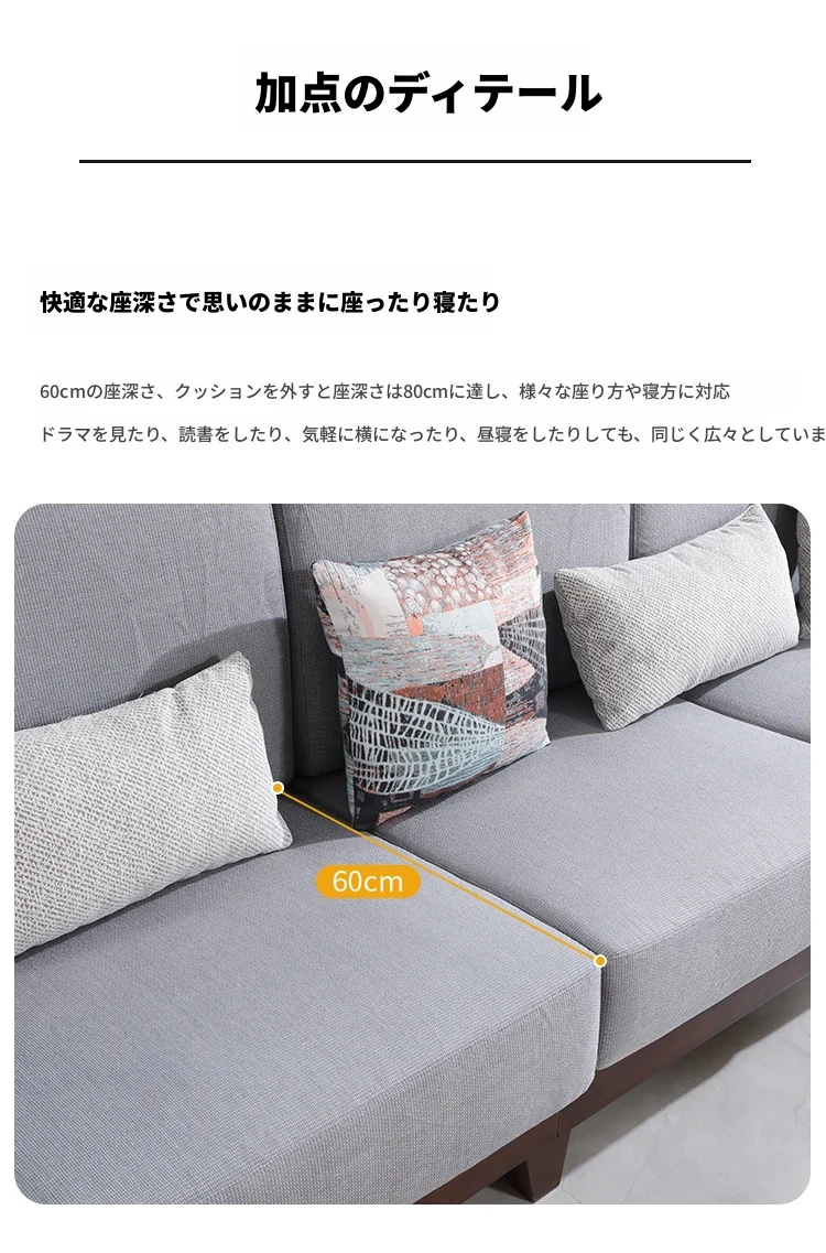 全実木製ソファ|モダンでシンプルなデザイン|小型リビングに最適|ウォールナット材の3人掛け&4人掛けカウチソファ|居心地の良い空間を演出!