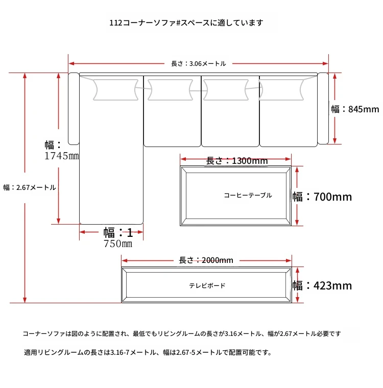 四人掛けソファ+オットマン【長さ3.06m】