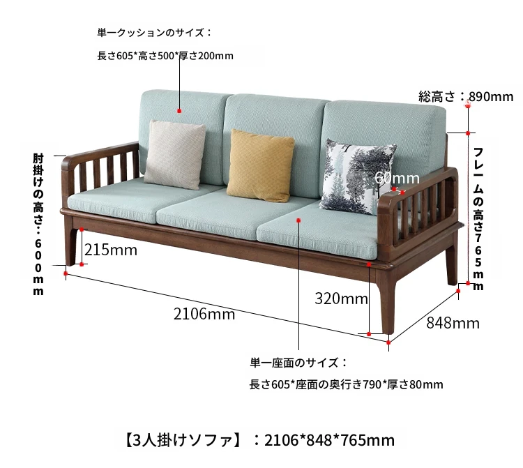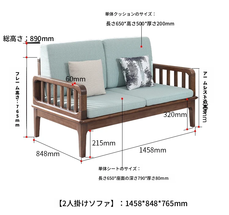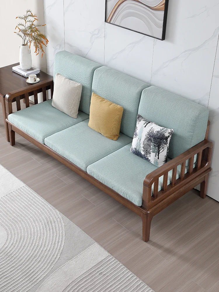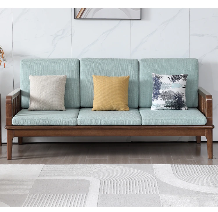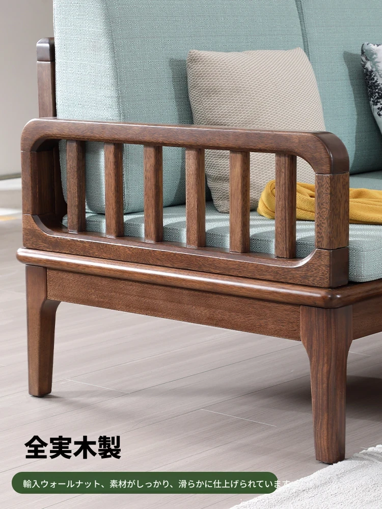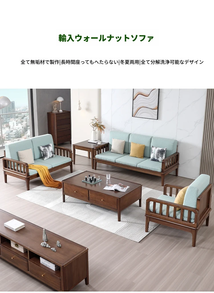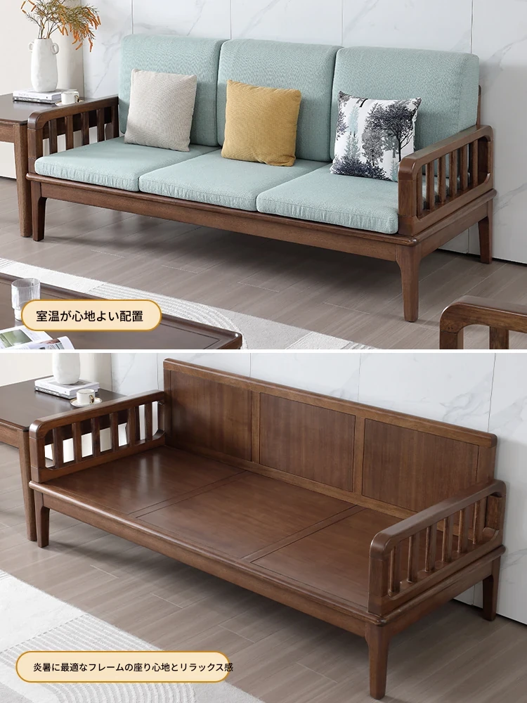 全実木製ソファー 小型リビングに最適 シンプルでモダンなウォールナット材使用 家庭用2人掛け・3人掛けの直線デザイン ソファで心地よい空間を演出!