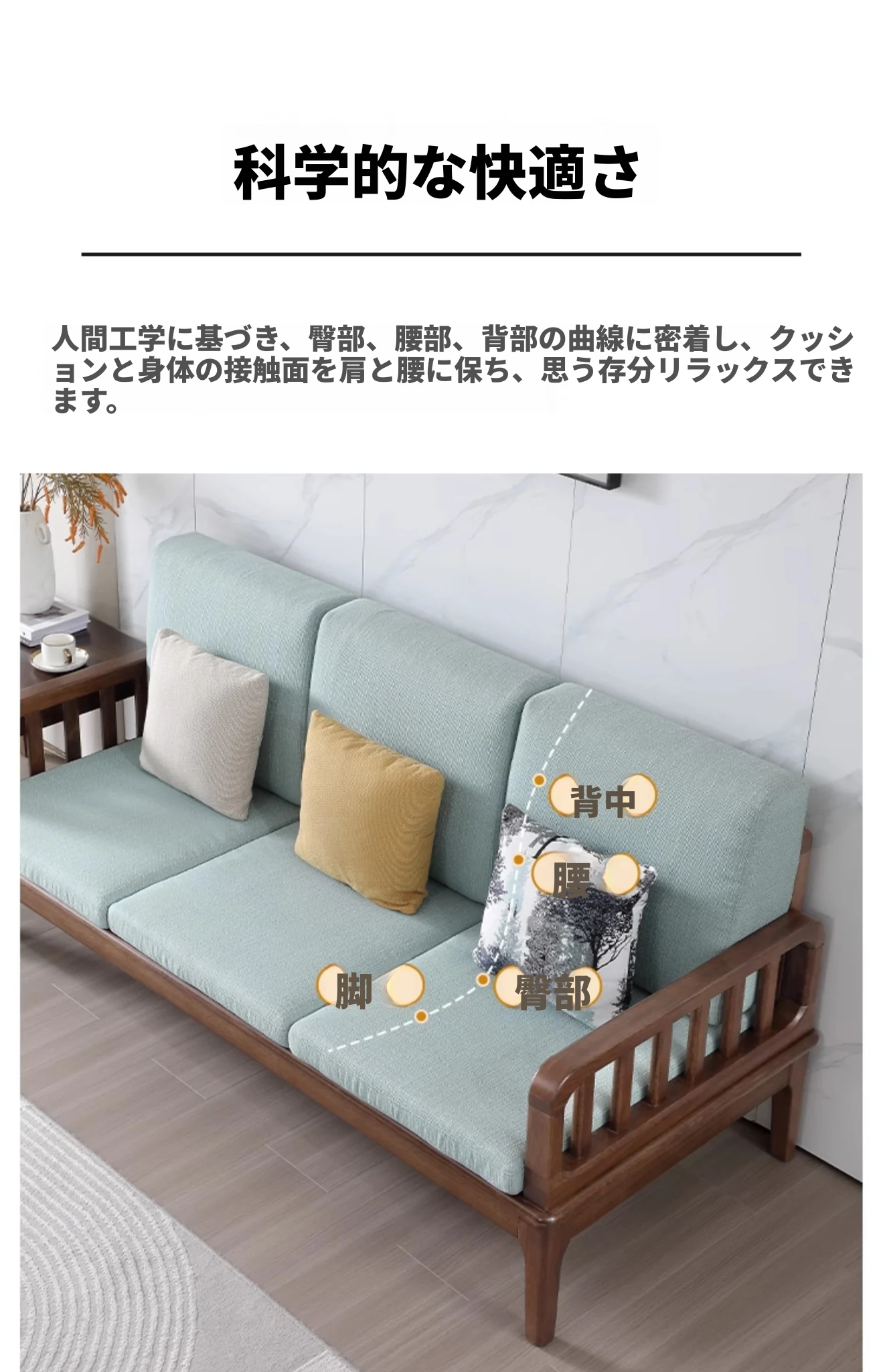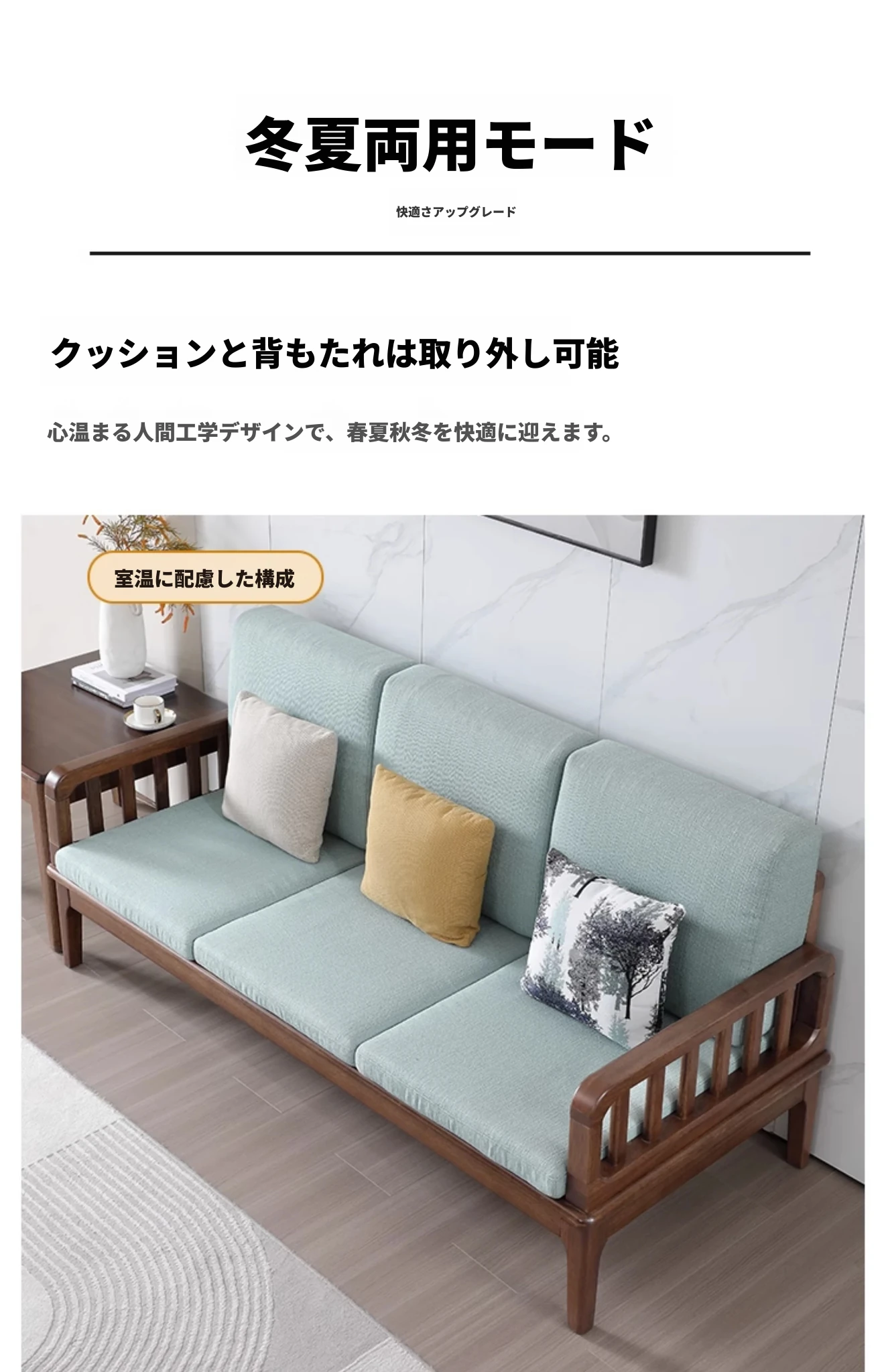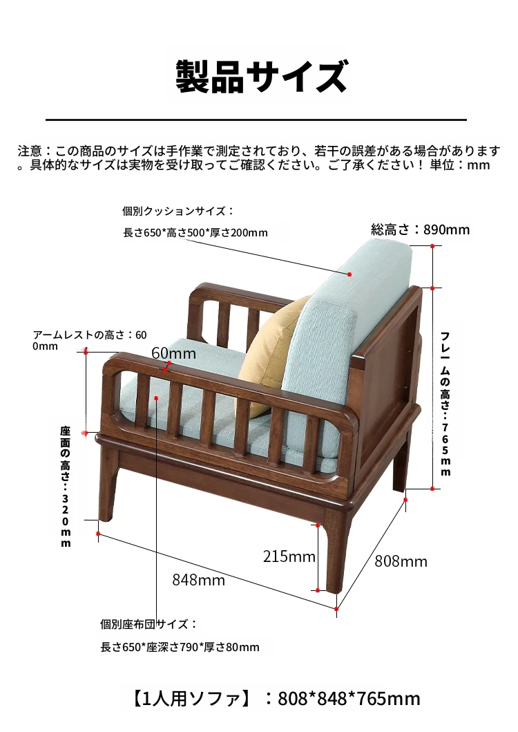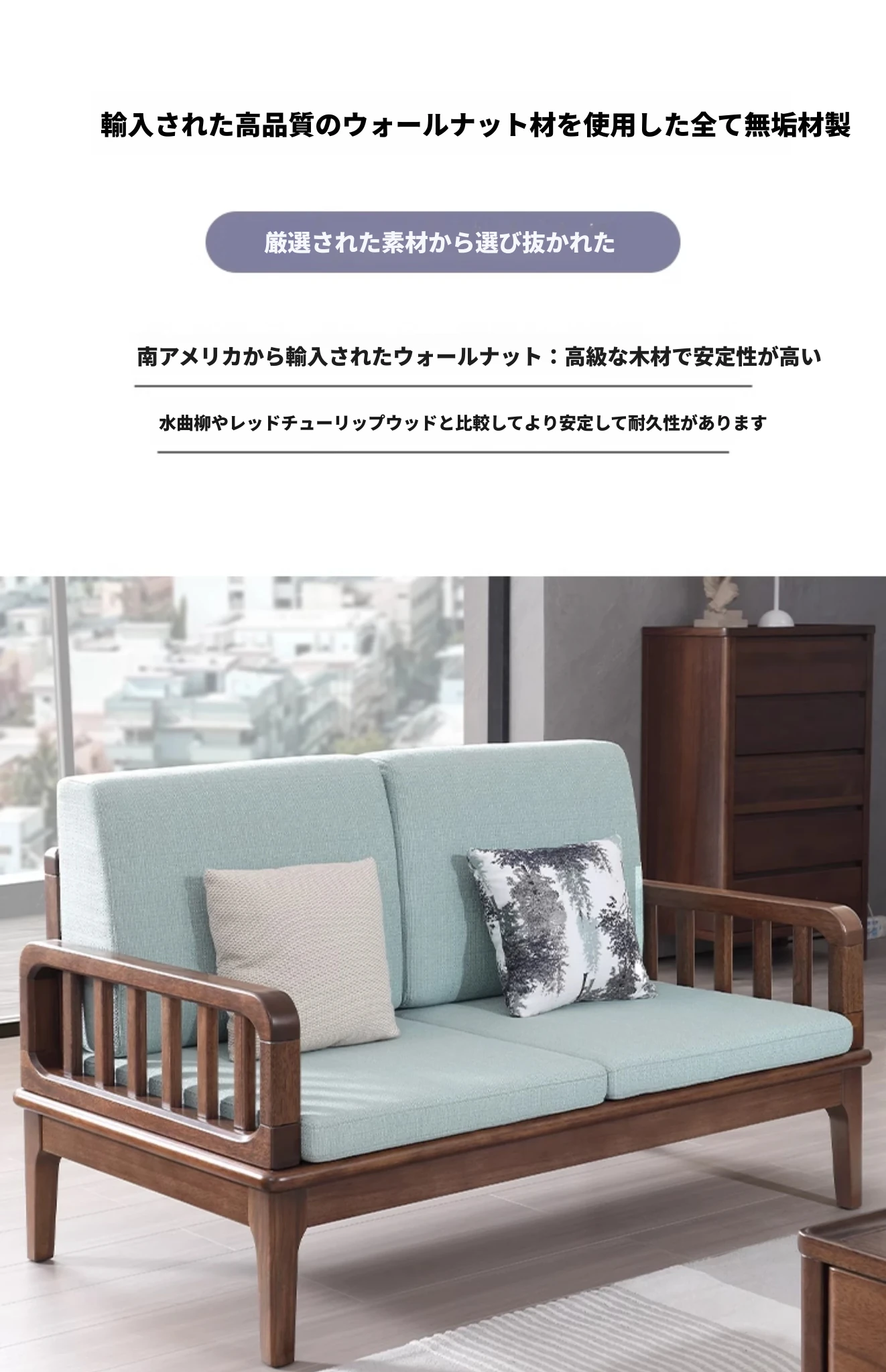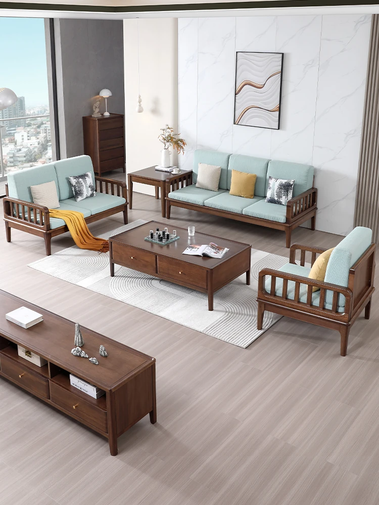 全実木製ソファー 小型リビングに最適 シンプルでモダンなウォールナット材使用 家庭用2人掛け・3人掛けの直線デザイン ソファで心地よい空間を演出!