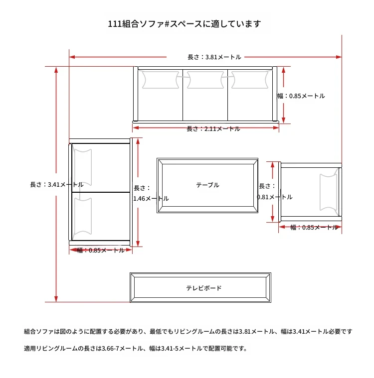 1+1+3ソファ+テーブル(2引き出しタイプ)+角テーブル
