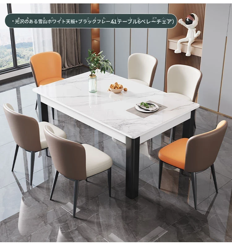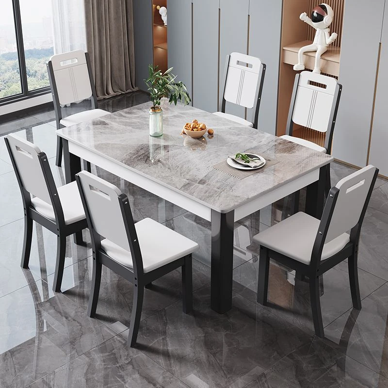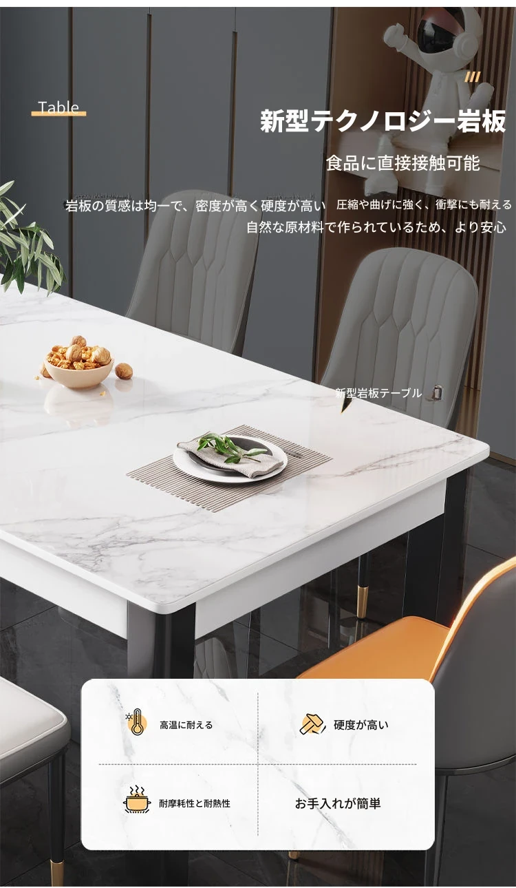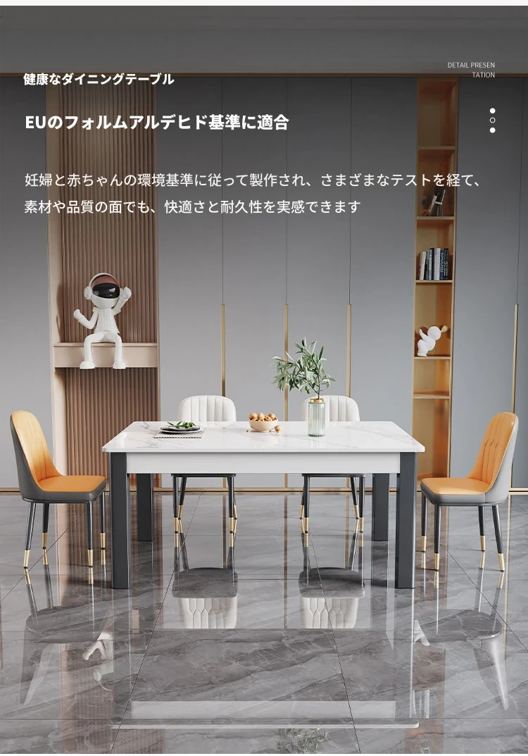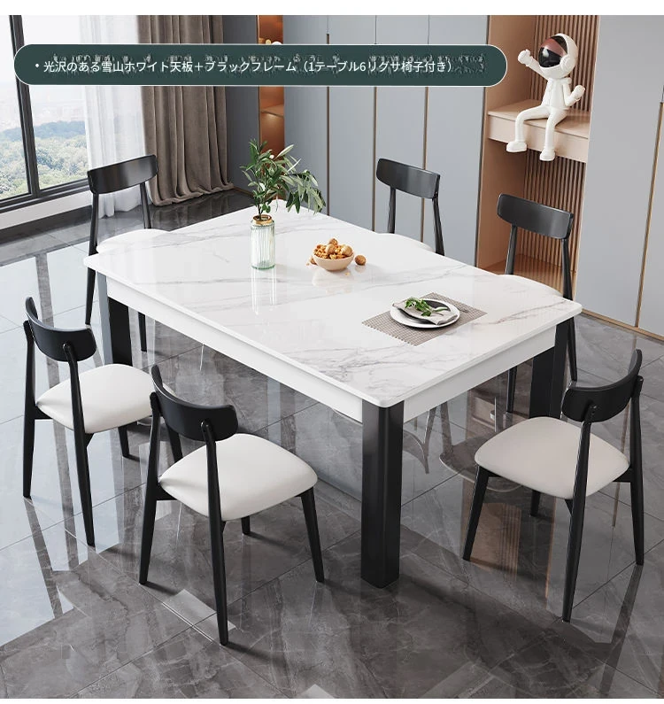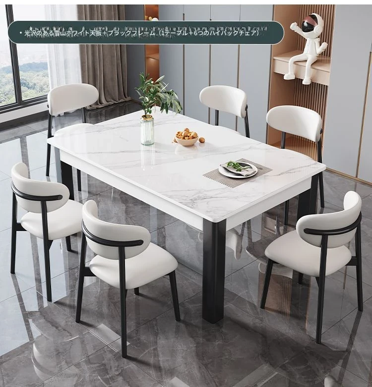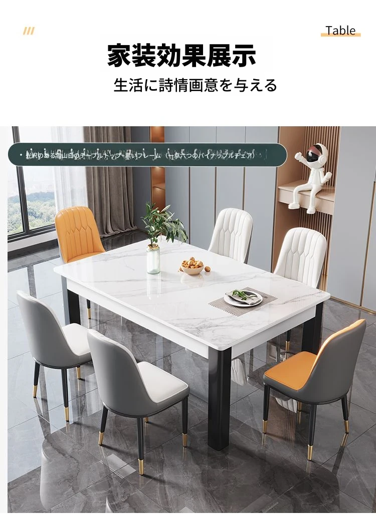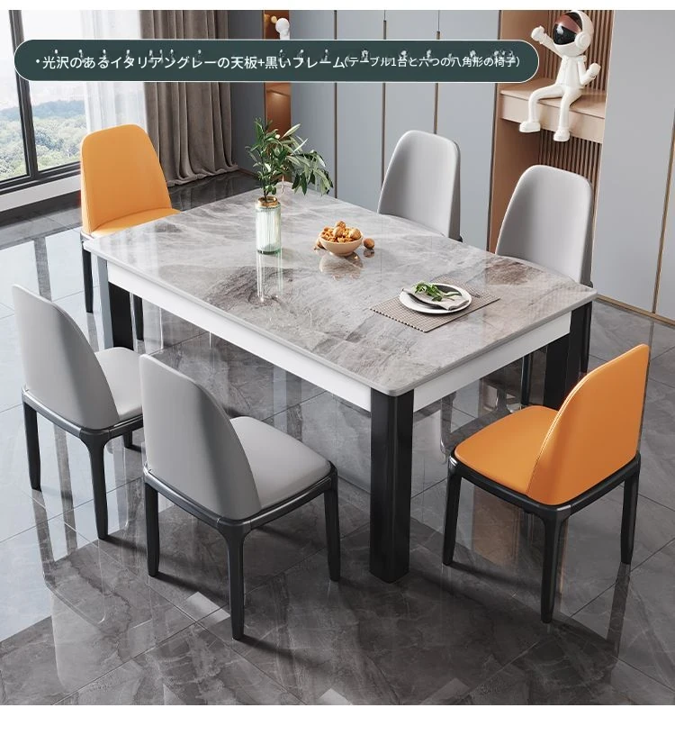 光沢感のある天然石材使用!モダンでスタイリッシュな西洋風ダイニングテーブルセット。多機能の実木製、コンパクトな小型住宅にぴったりなラグジュアリーな長方形テーブル。食事の時間を特別に演出します!