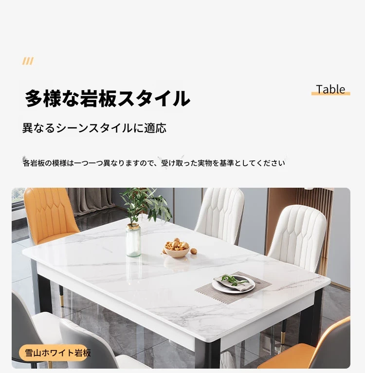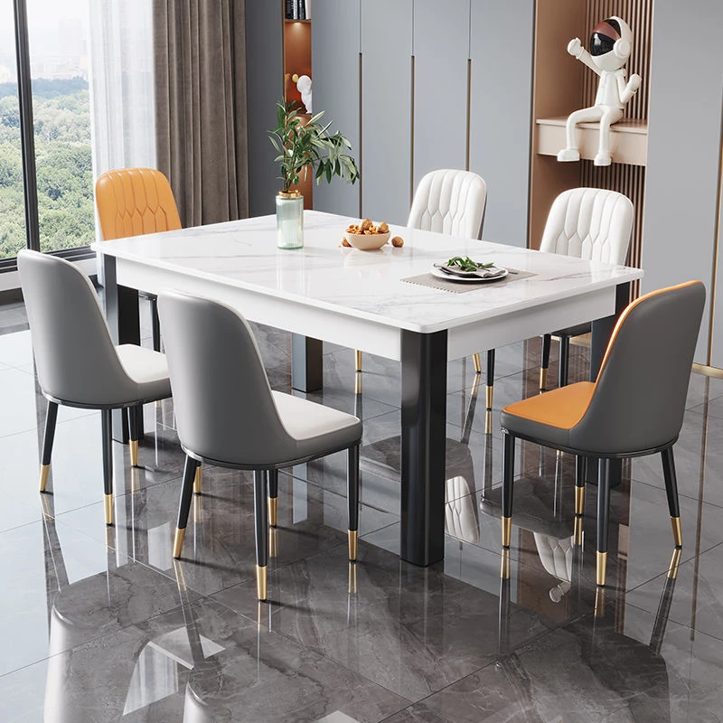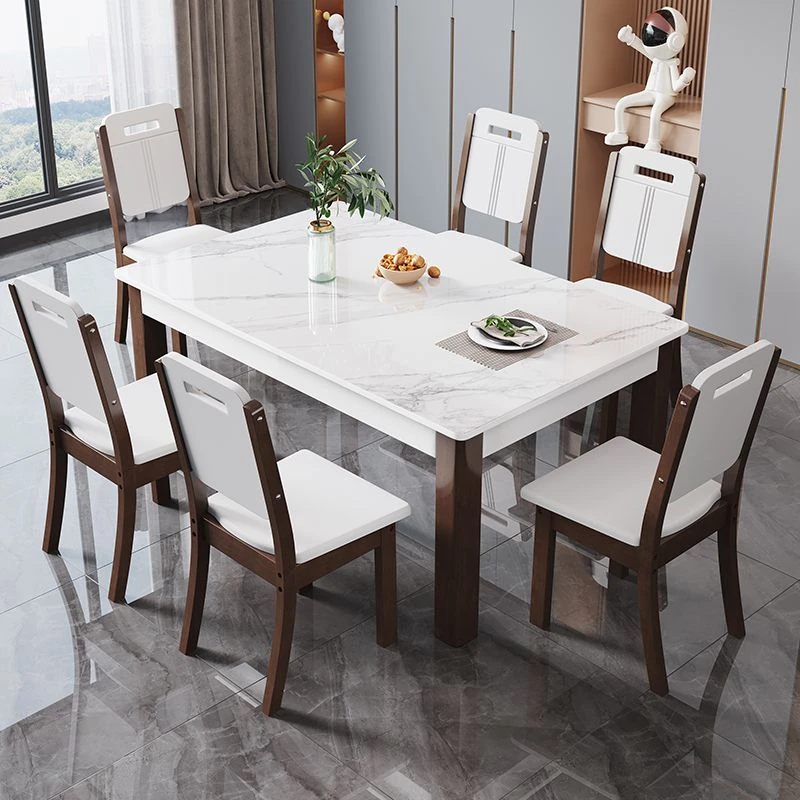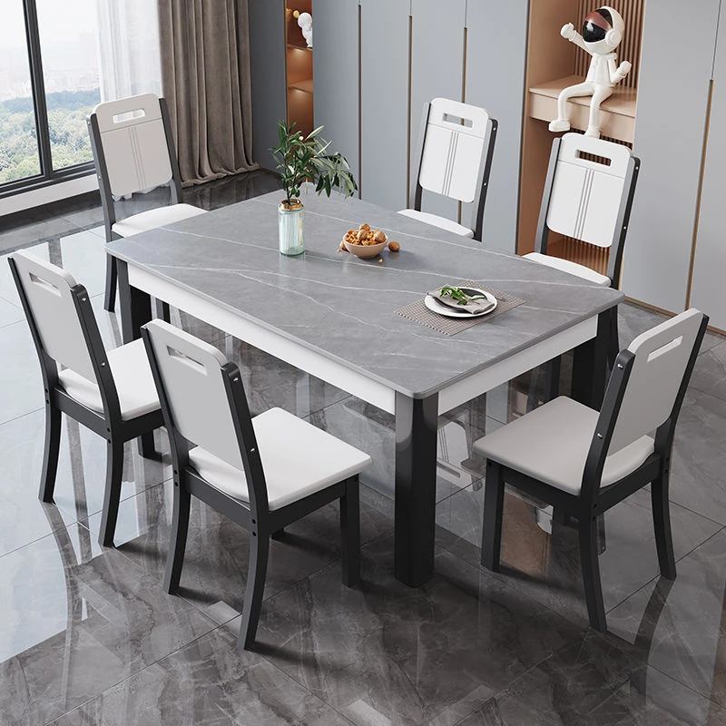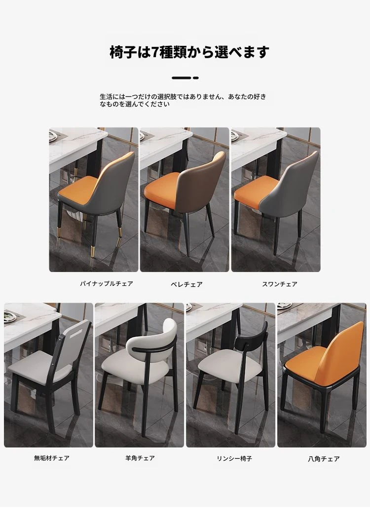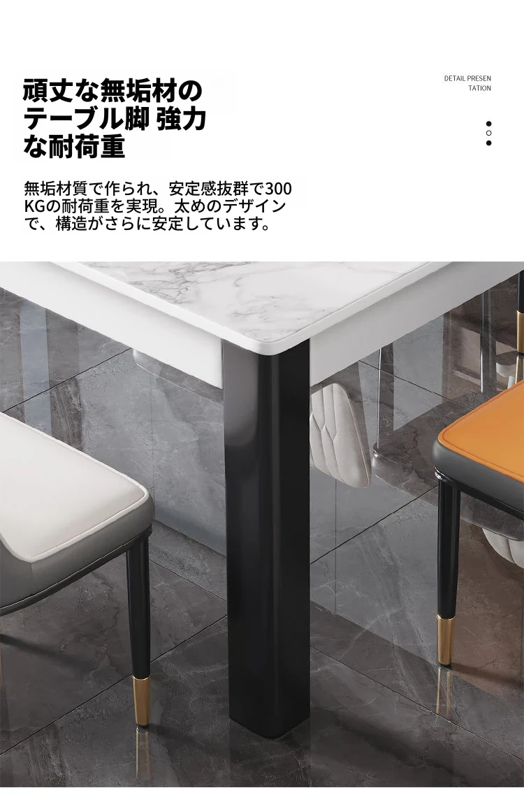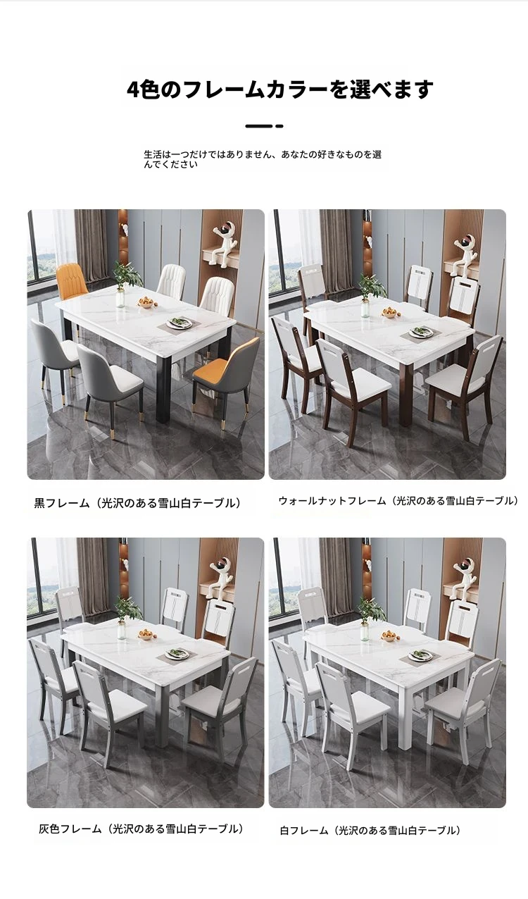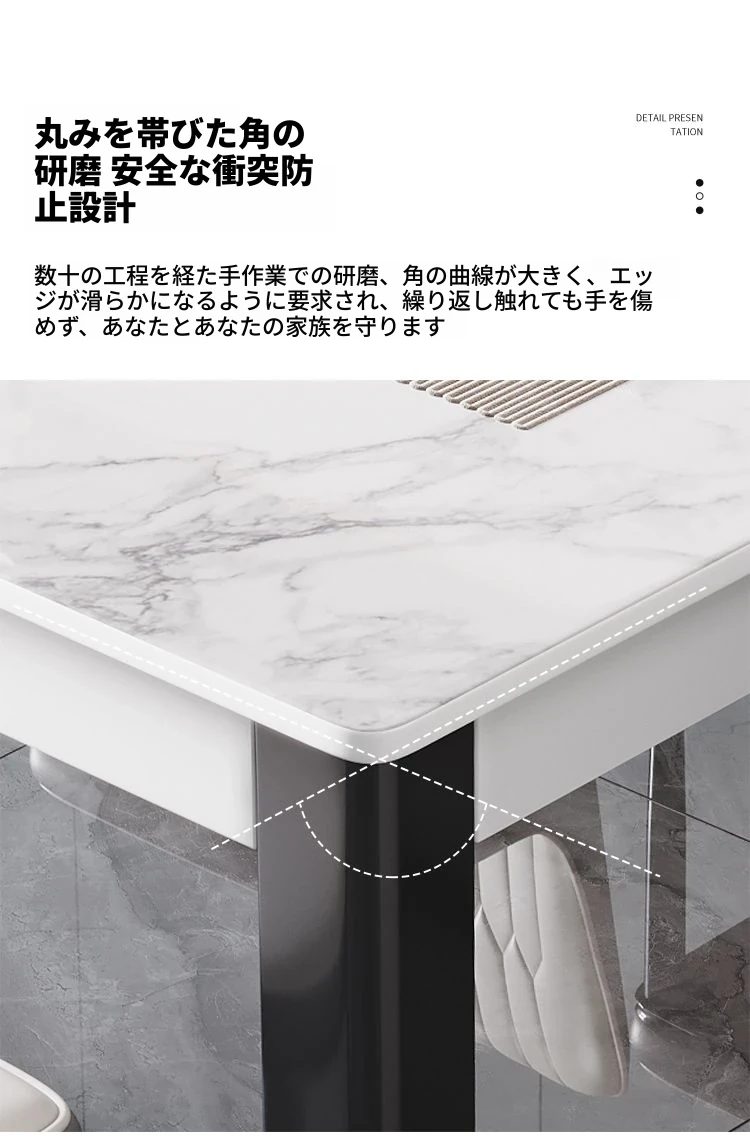 光沢感のある天然石材使用!モダンでスタイリッシュな西洋風ダイニングテーブルセット。多機能の実木製、コンパクトな小型住宅にぴったりなラグジュアリーな長方形テーブル。食事の時間を特別に演出します!