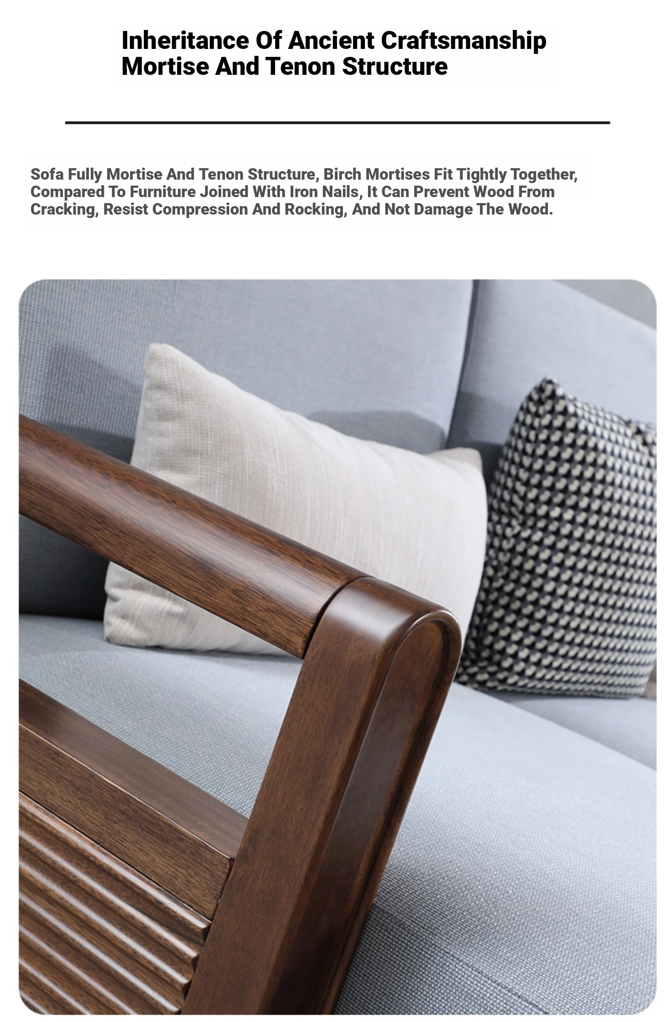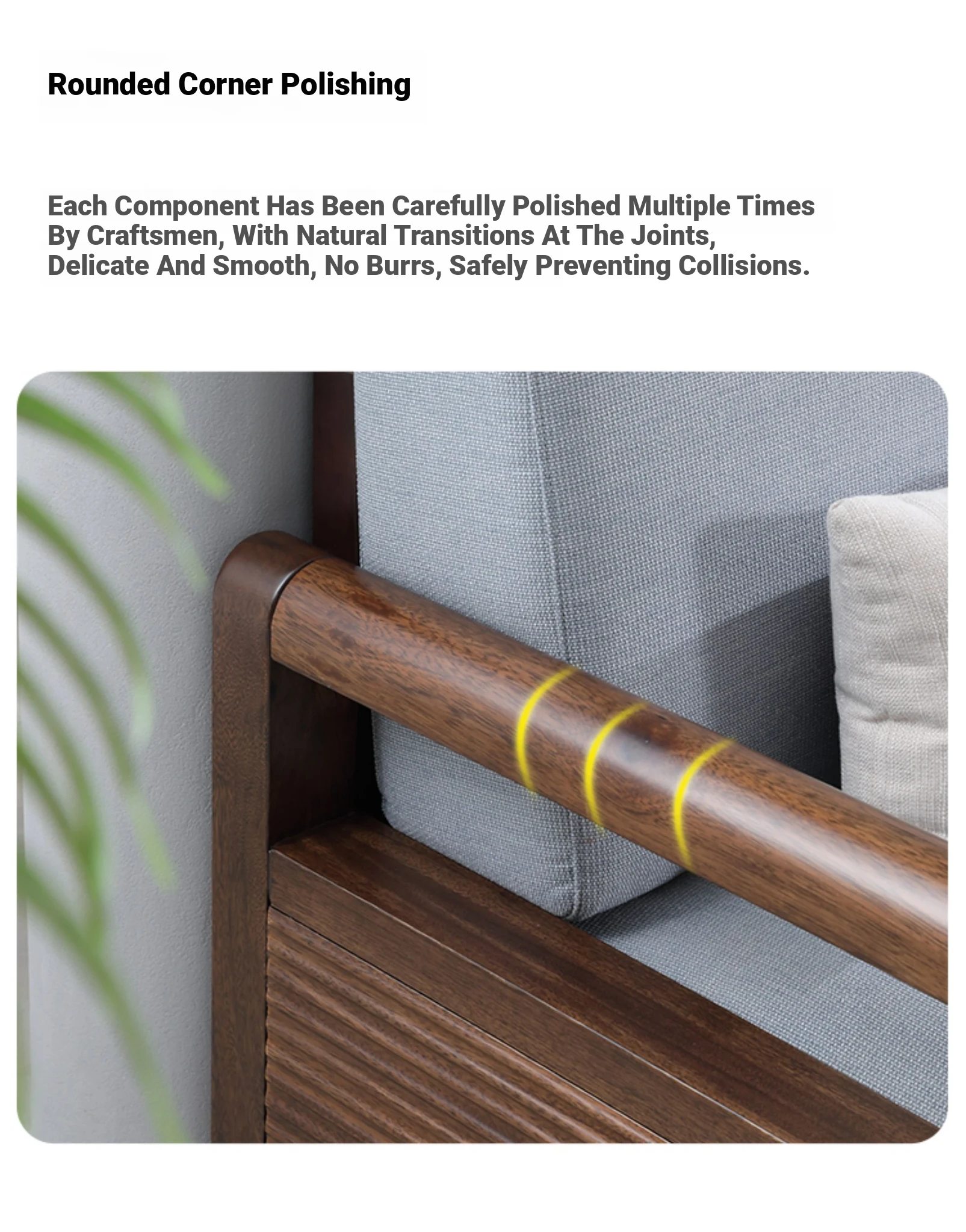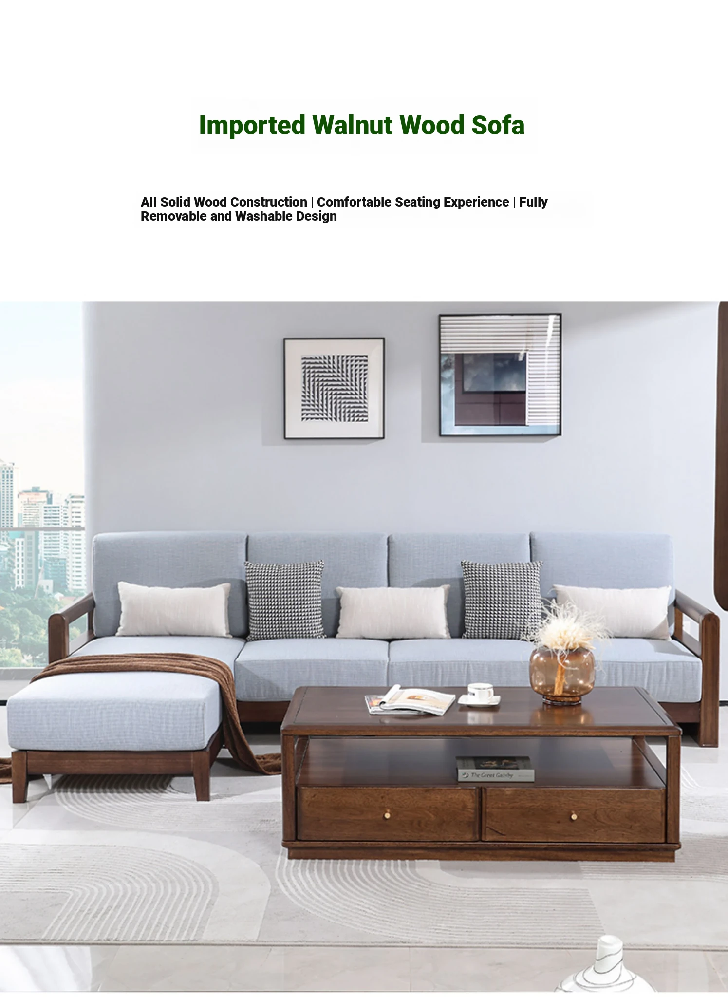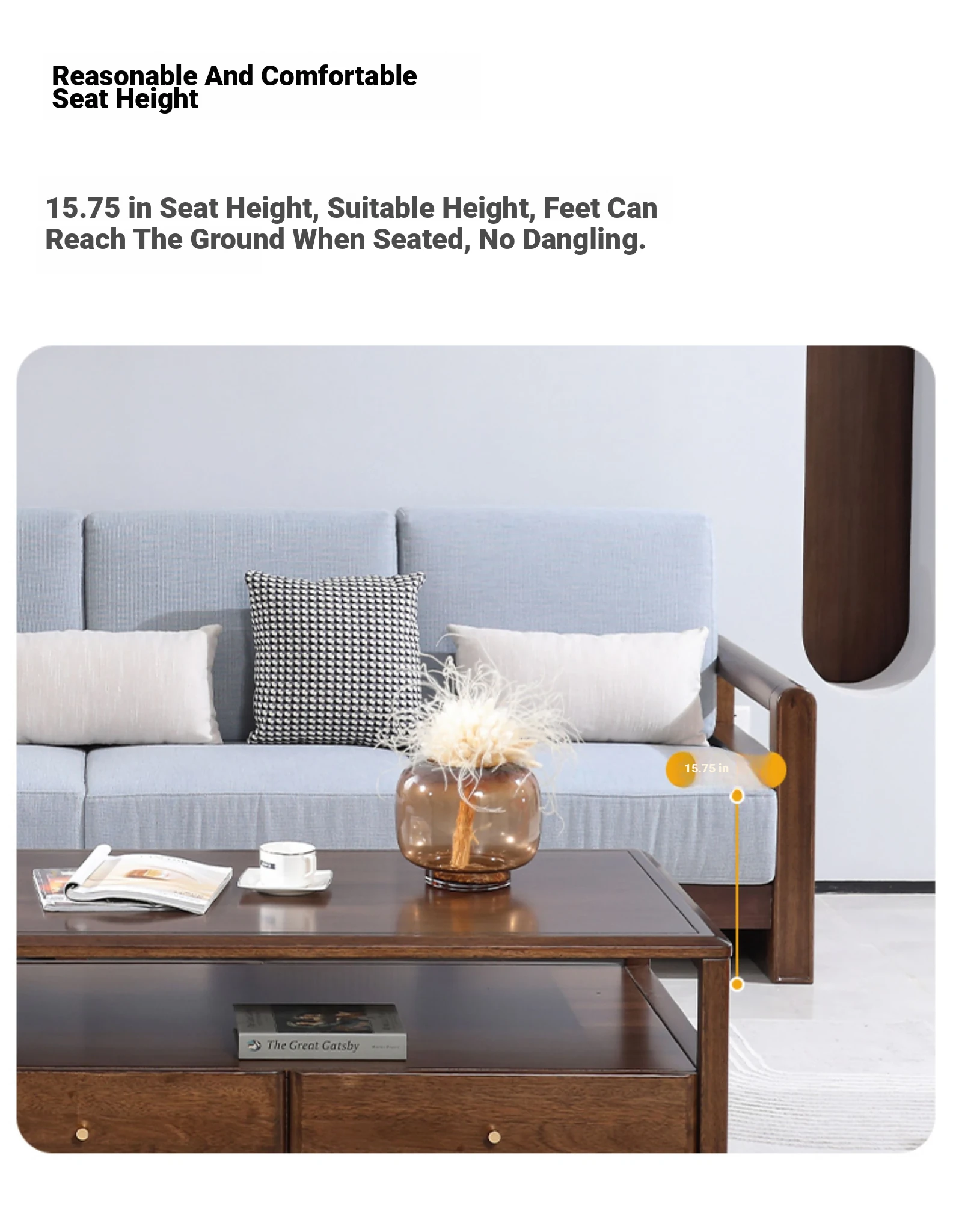 Modern Solid Wood Sofa for Living Room - Minimalist Design in Walnut Finish, Perfect for Small Spaces, 2-Seater & 3-Seater Options, Stylish Natural Wood Furniture for Home