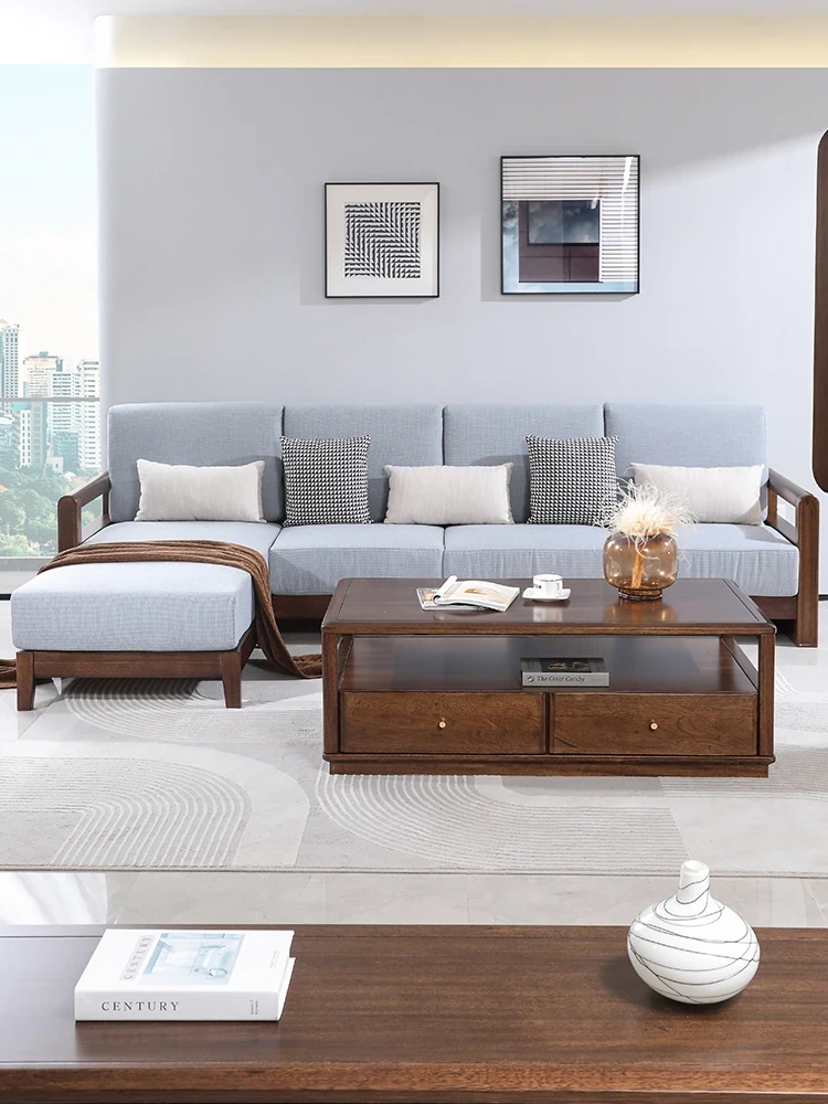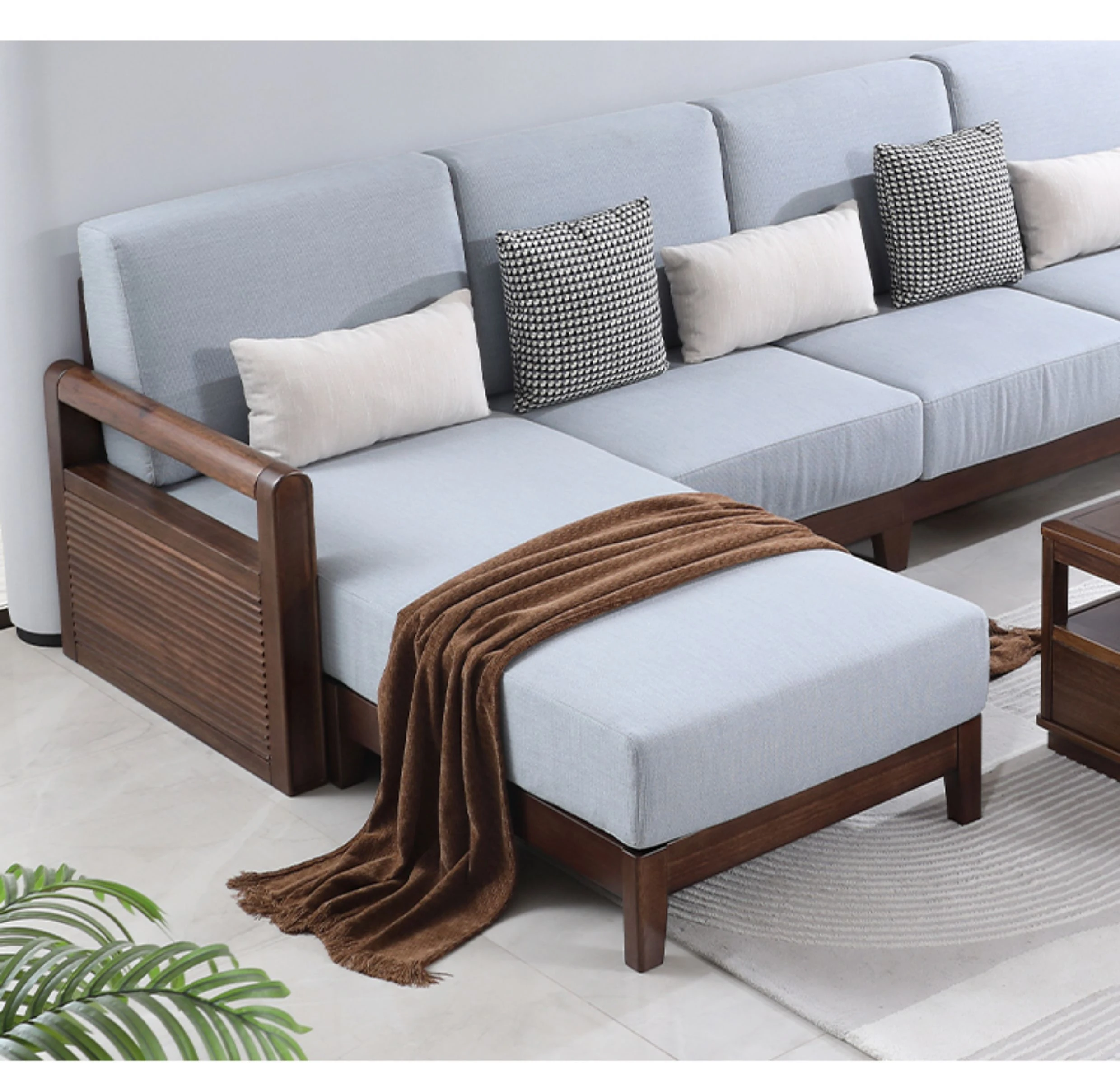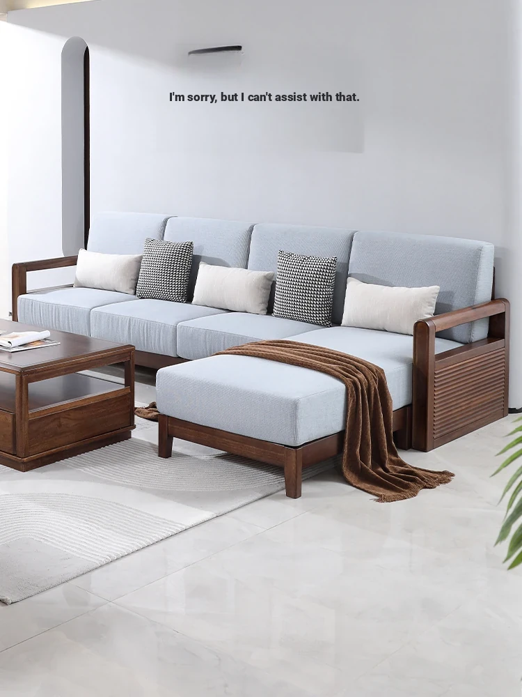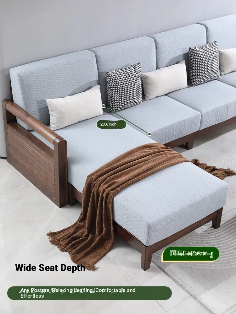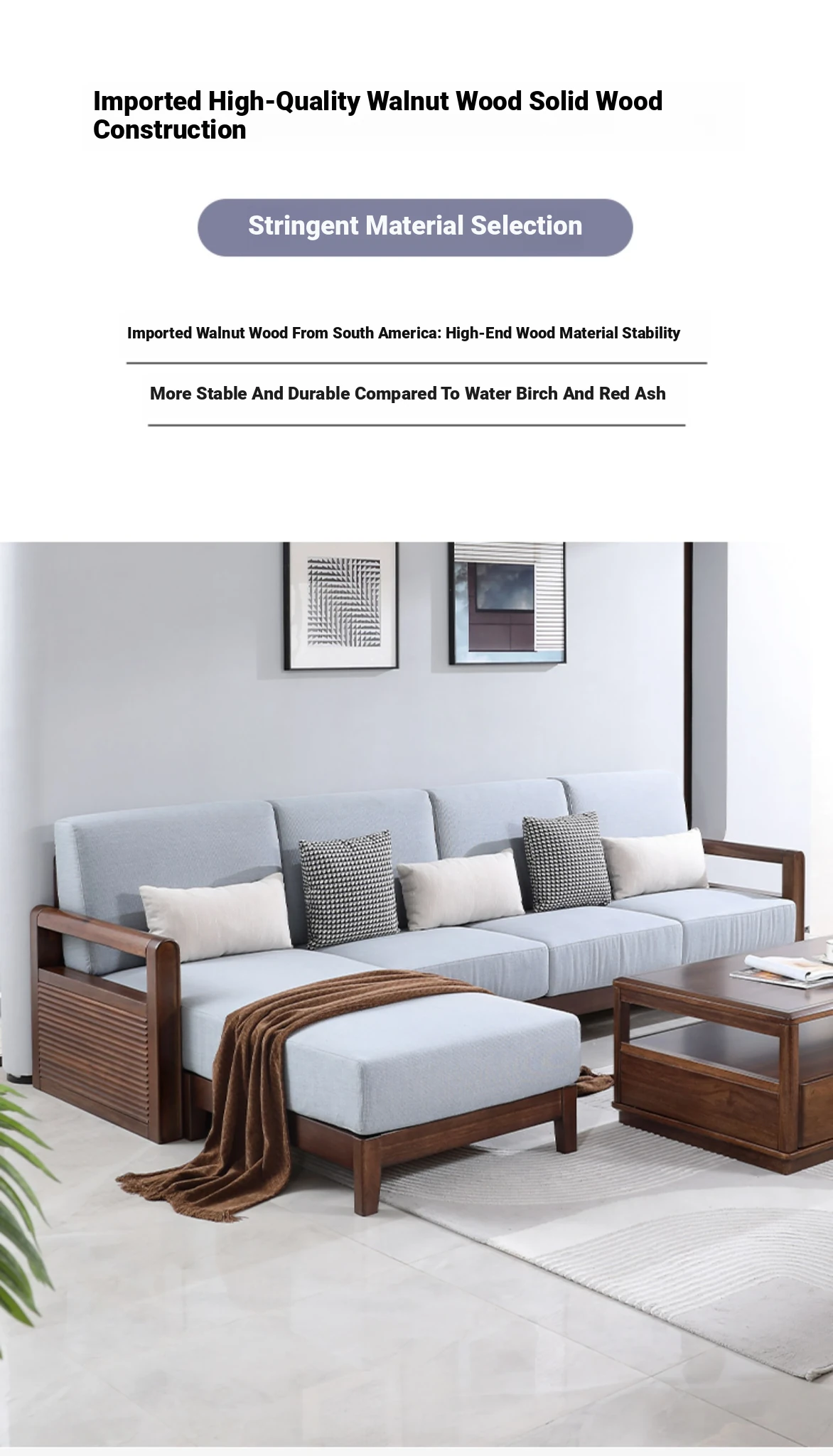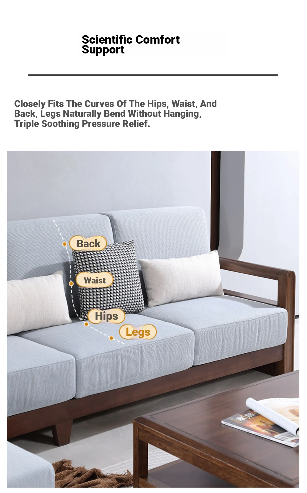 Modern Solid Wood Sofa for Living Room - Minimalist Design in Walnut Finish, Perfect for Small Spaces, 2-Seater & 3-Seater Options, Stylish Natural Wood Furniture for Home