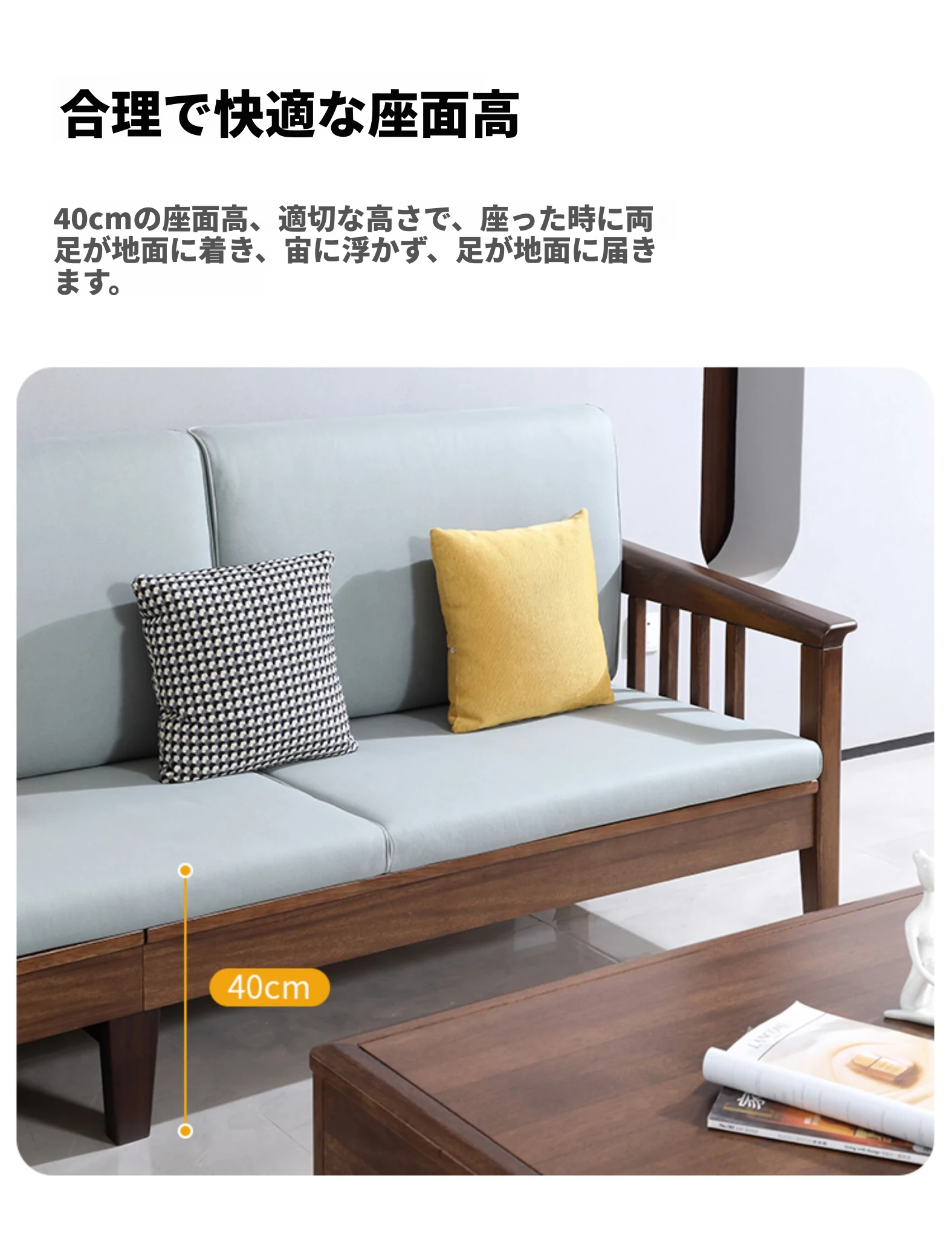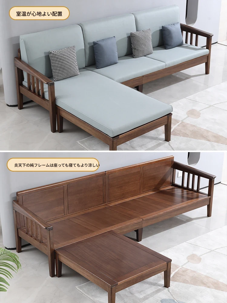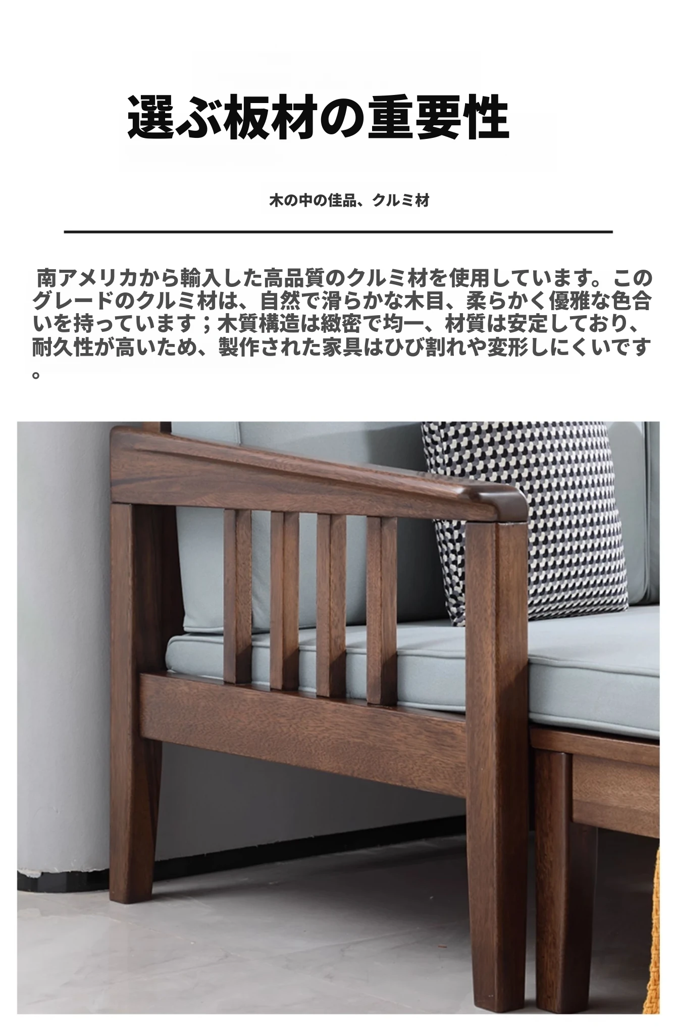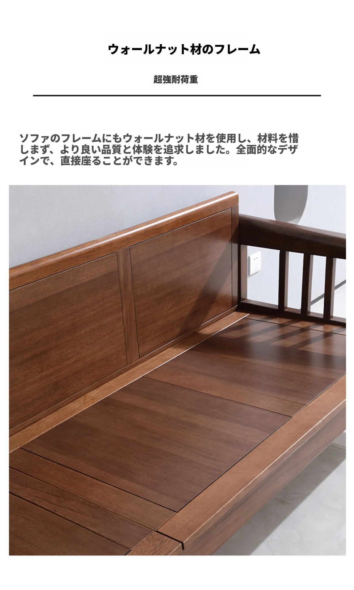 無垢材のリビング用ソファー|モダンでシンプルなウォールナットウッド製|小型住宅に最適な二人掛け・三人掛けソファー|心地よい座り心地で、あなたのリビングをスタイリッシュに演出します!