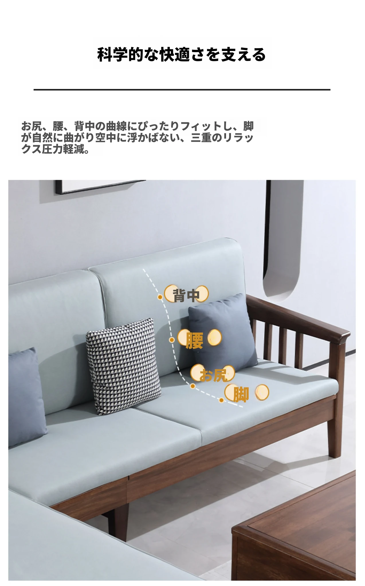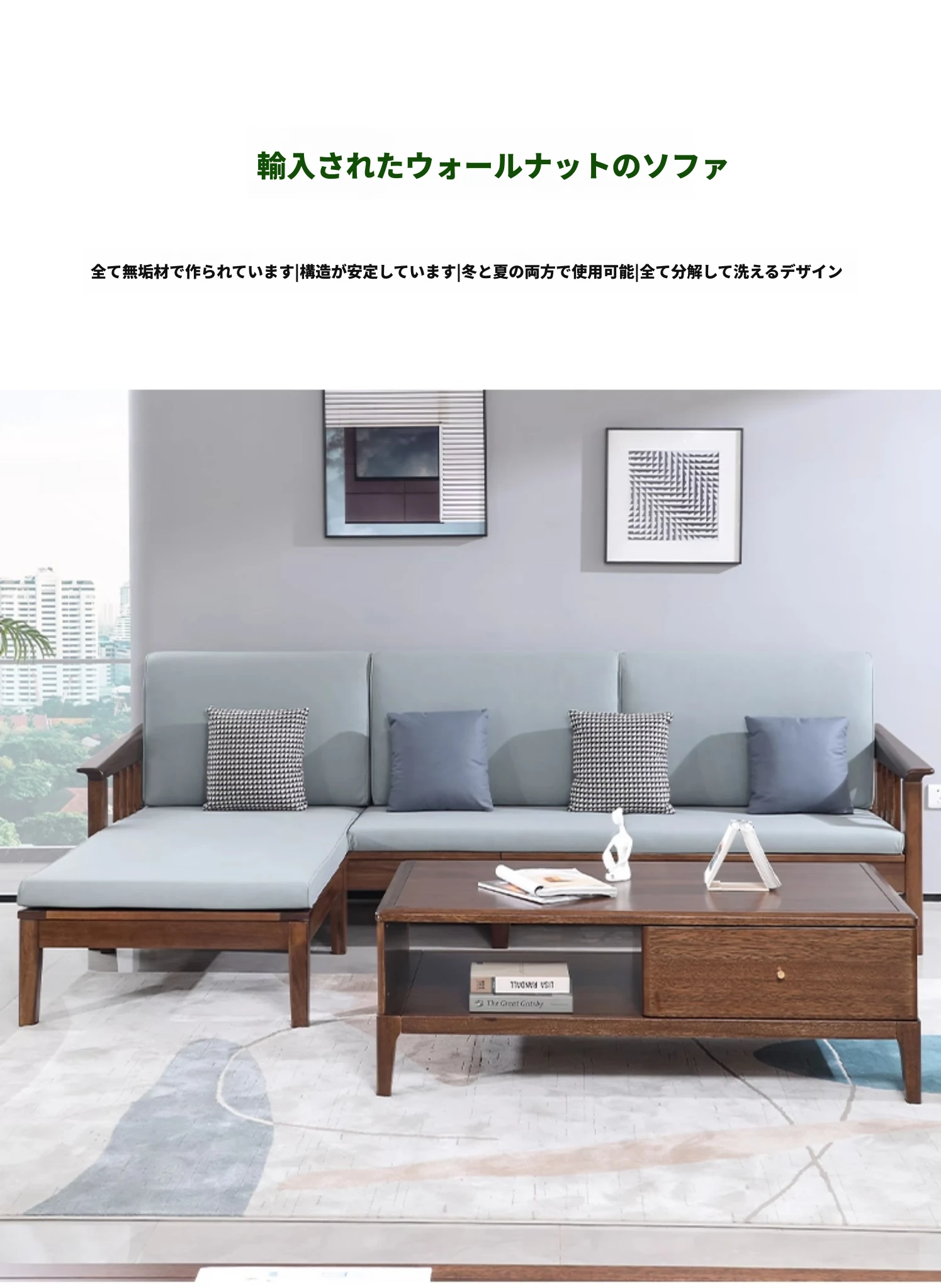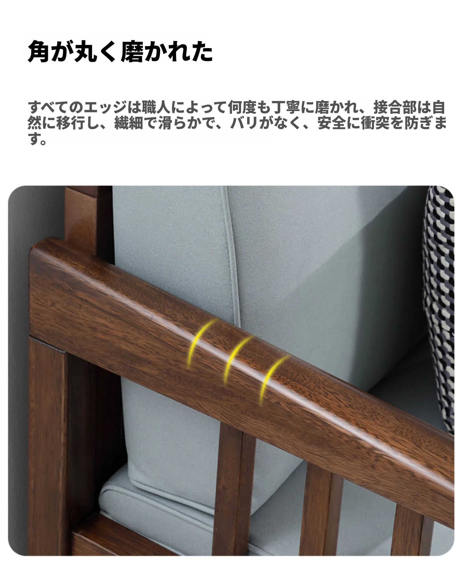 無垢材のリビング用ソファー|モダンでシンプルなウォールナットウッド製|小型住宅に最適な二人掛け・三人掛けソファー|心地よい座り心地で、あなたのリビングをスタイリッシュに演出します!