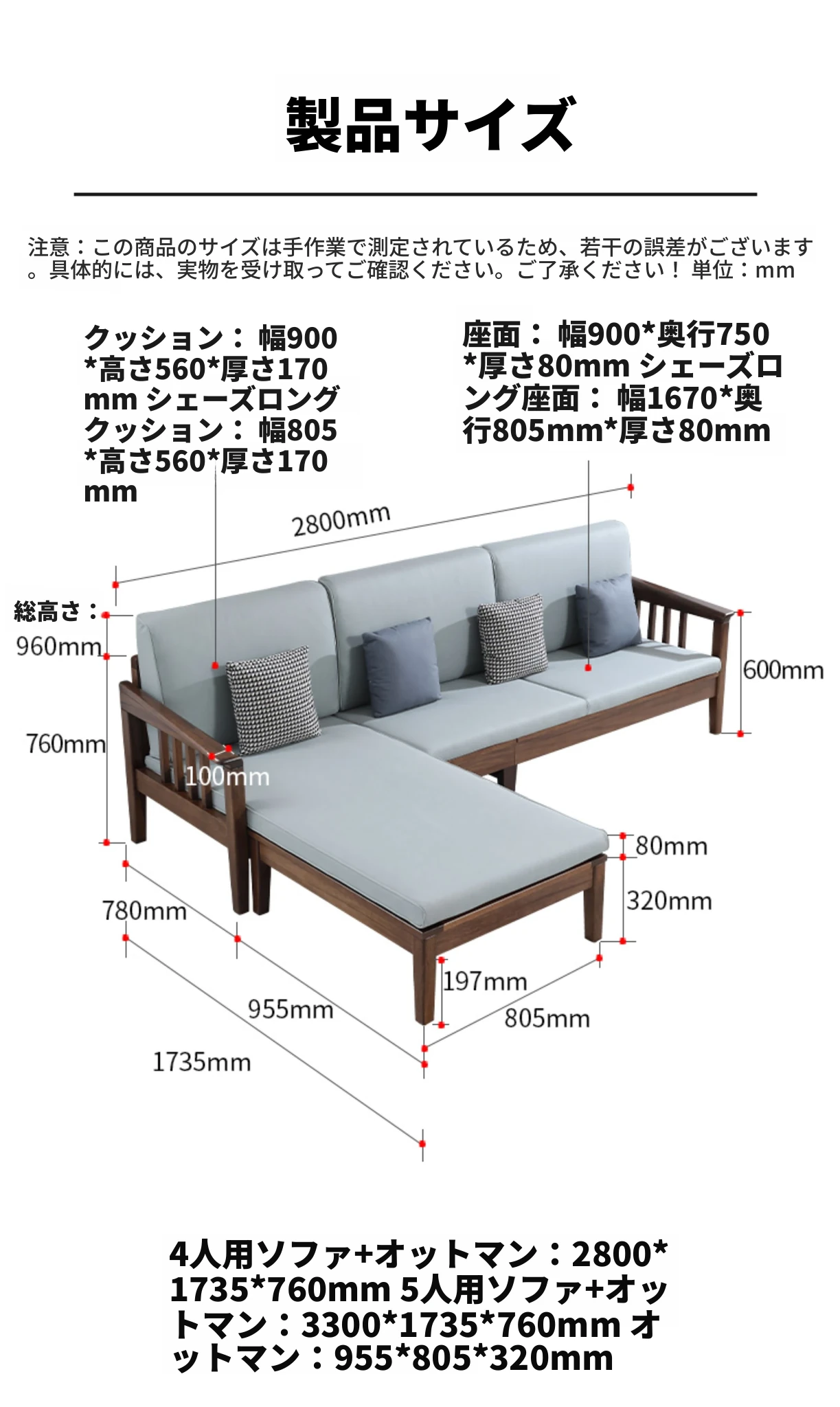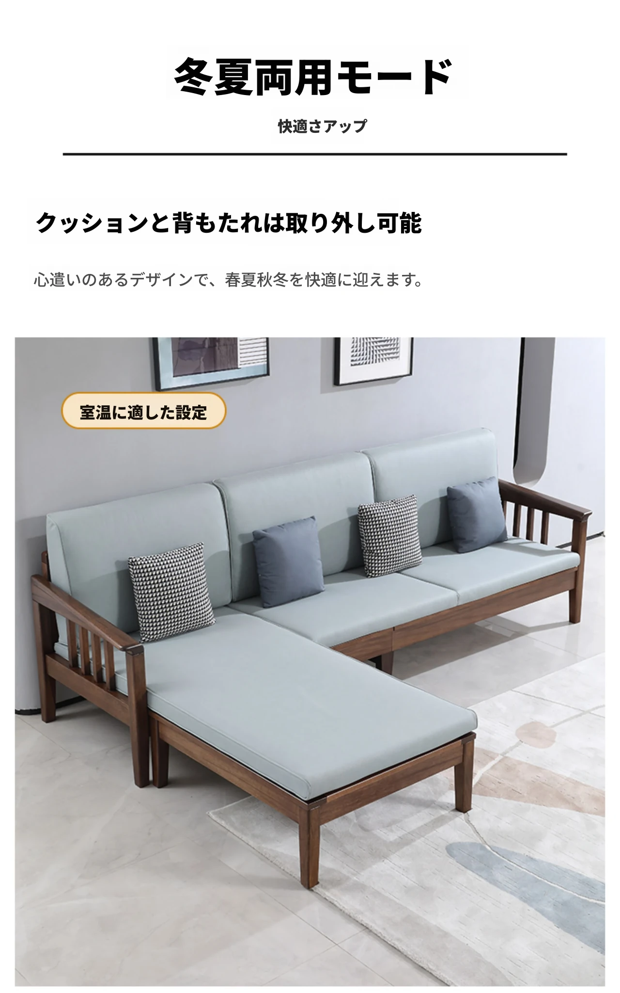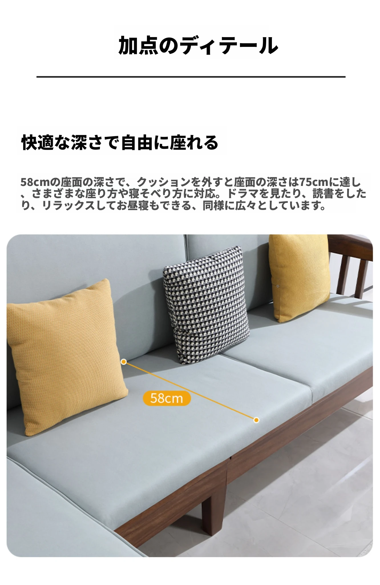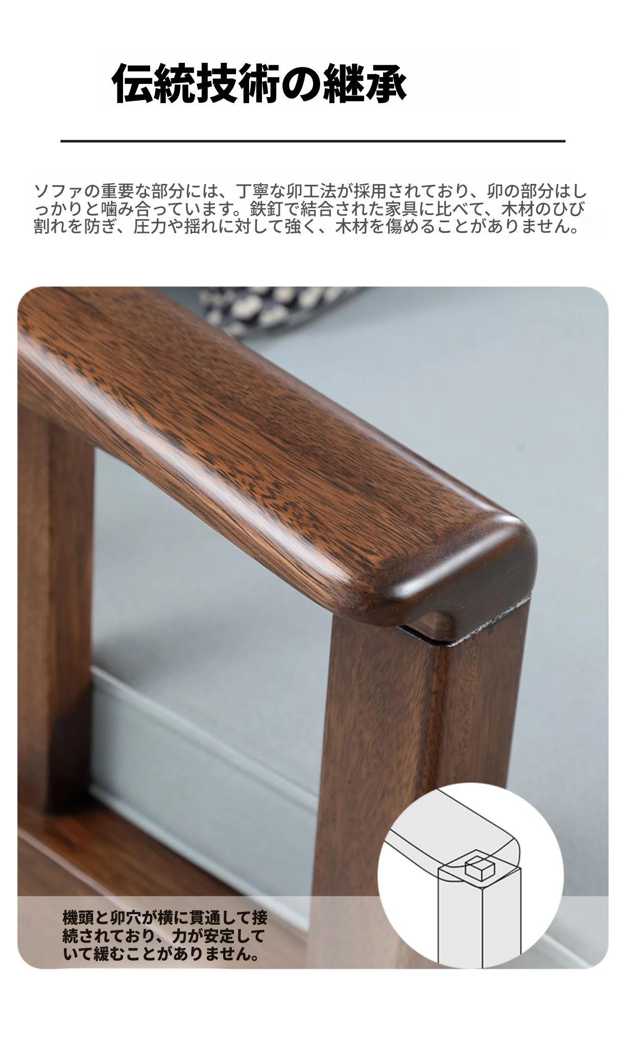 無垢材のリビング用ソファー|モダンでシンプルなウォールナットウッド製|小型住宅に最適な二人掛け・三人掛けソファー|心地よい座り心地で、あなたのリビングをスタイリッシュに演出します!