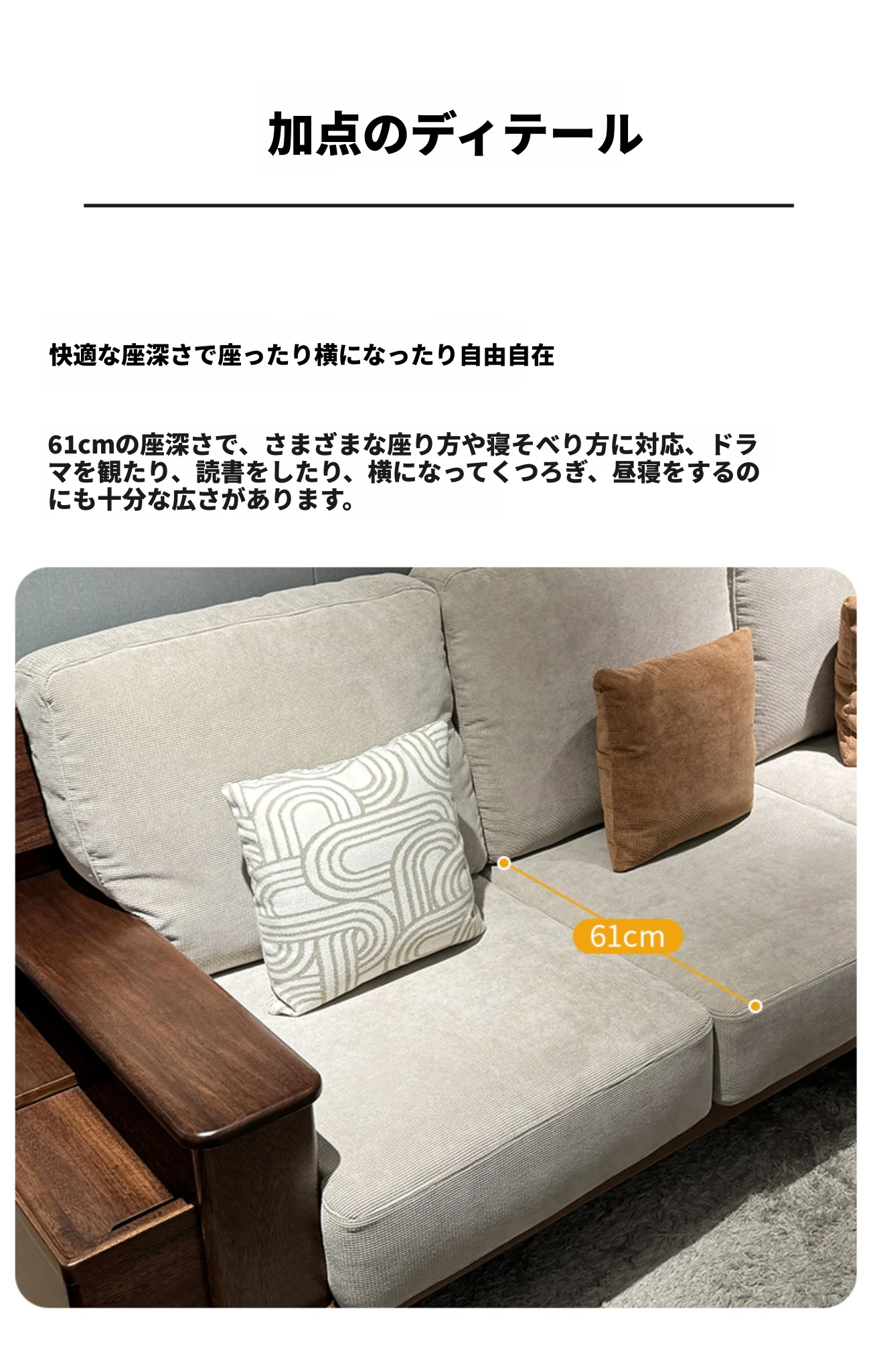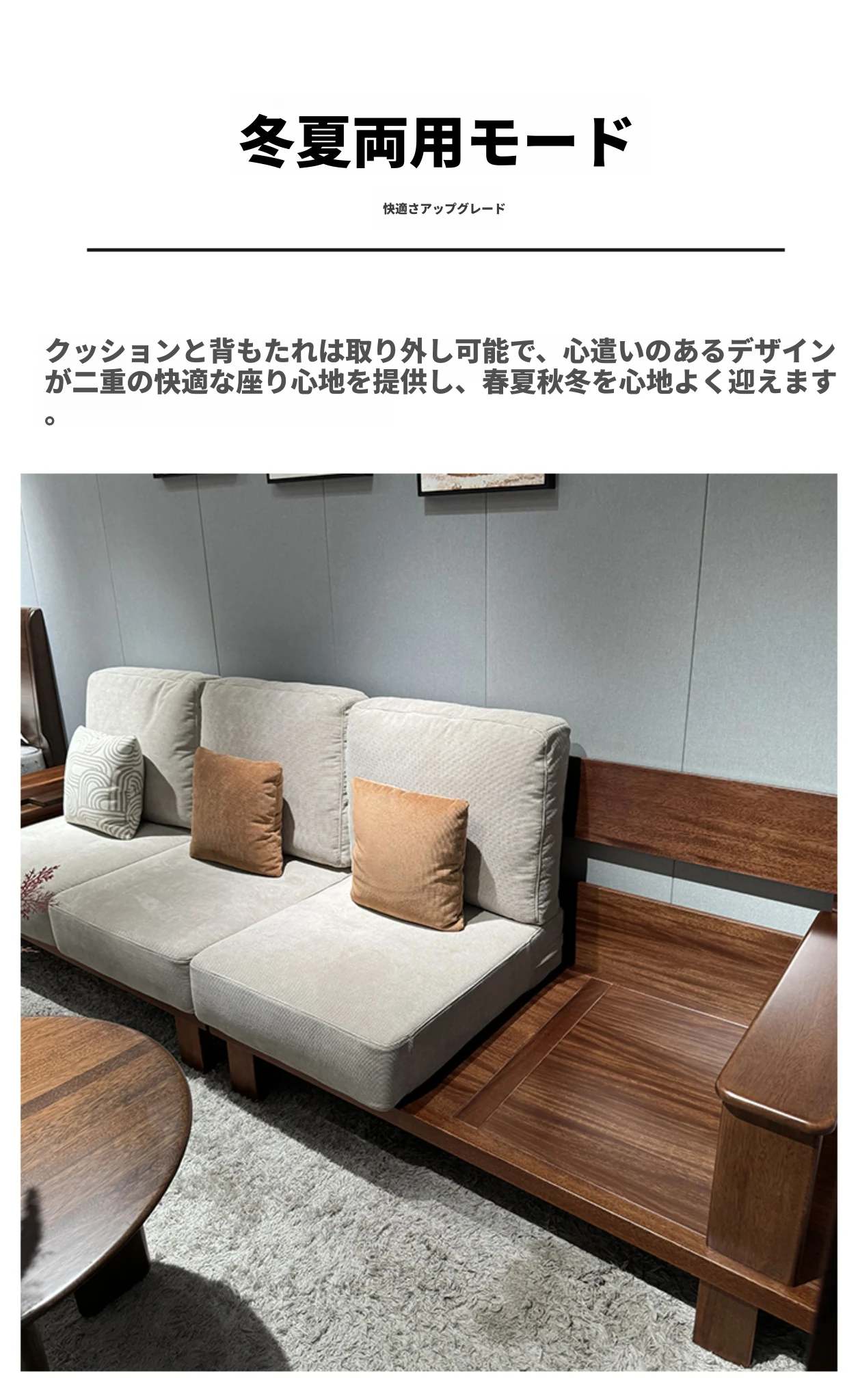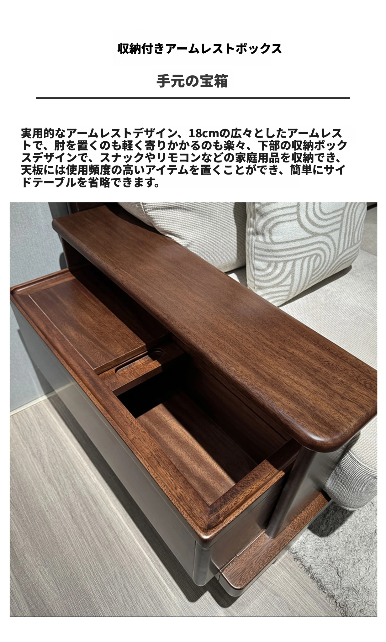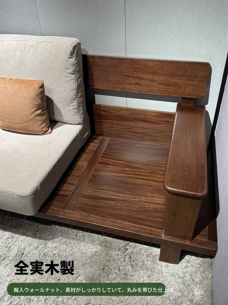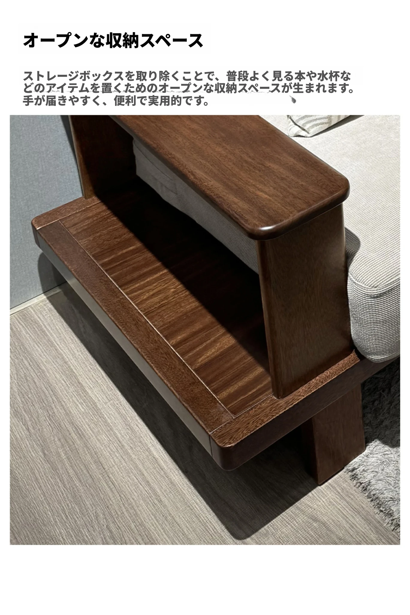 全実木製ソファ|シンプルでモダンなデザイン|小型住宅に最適なウォールナット材|収納付きの4人掛けソファ|快適なリビング空間を演出!