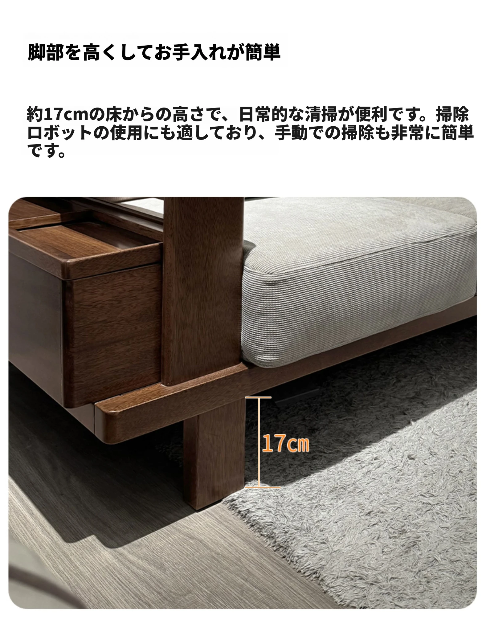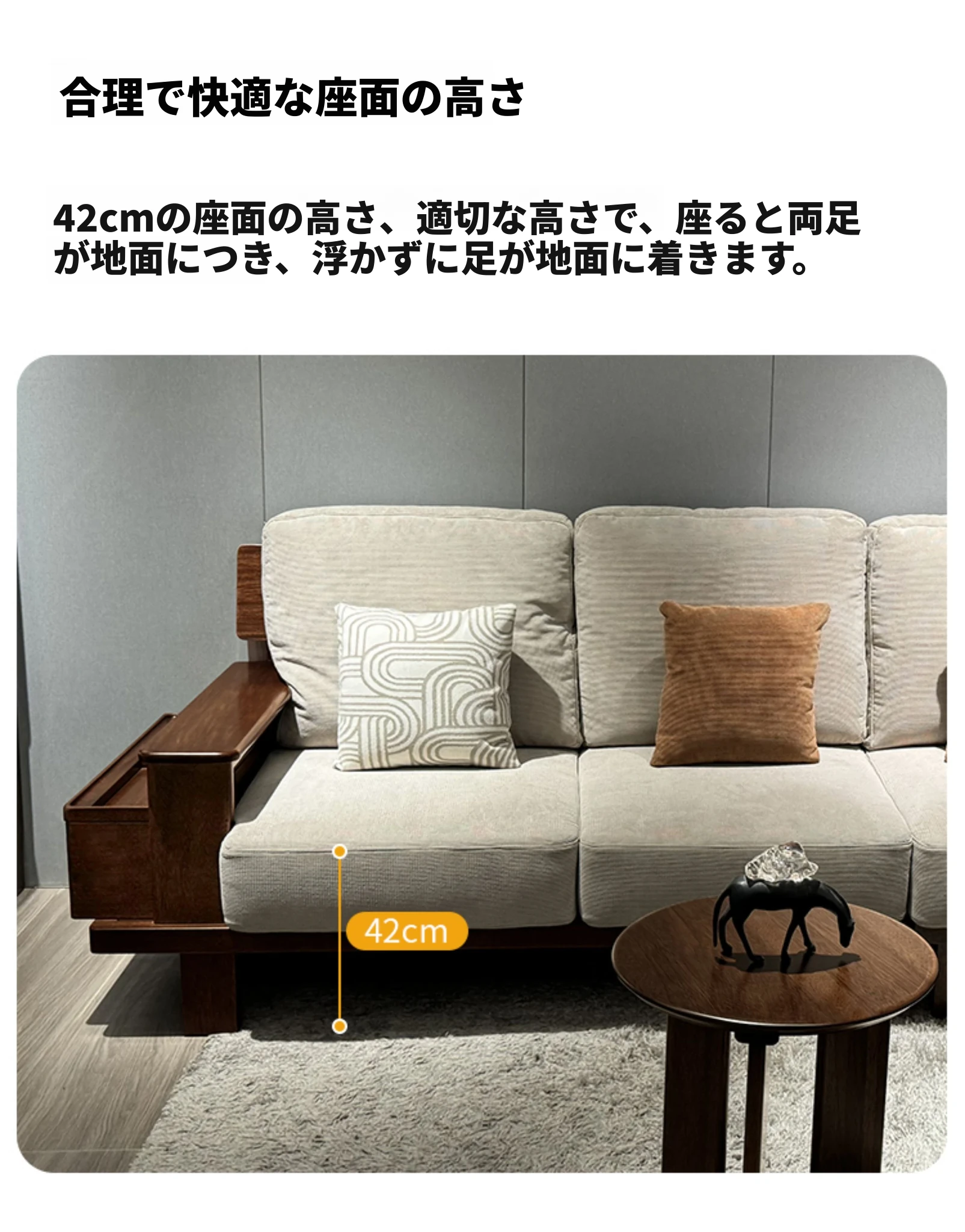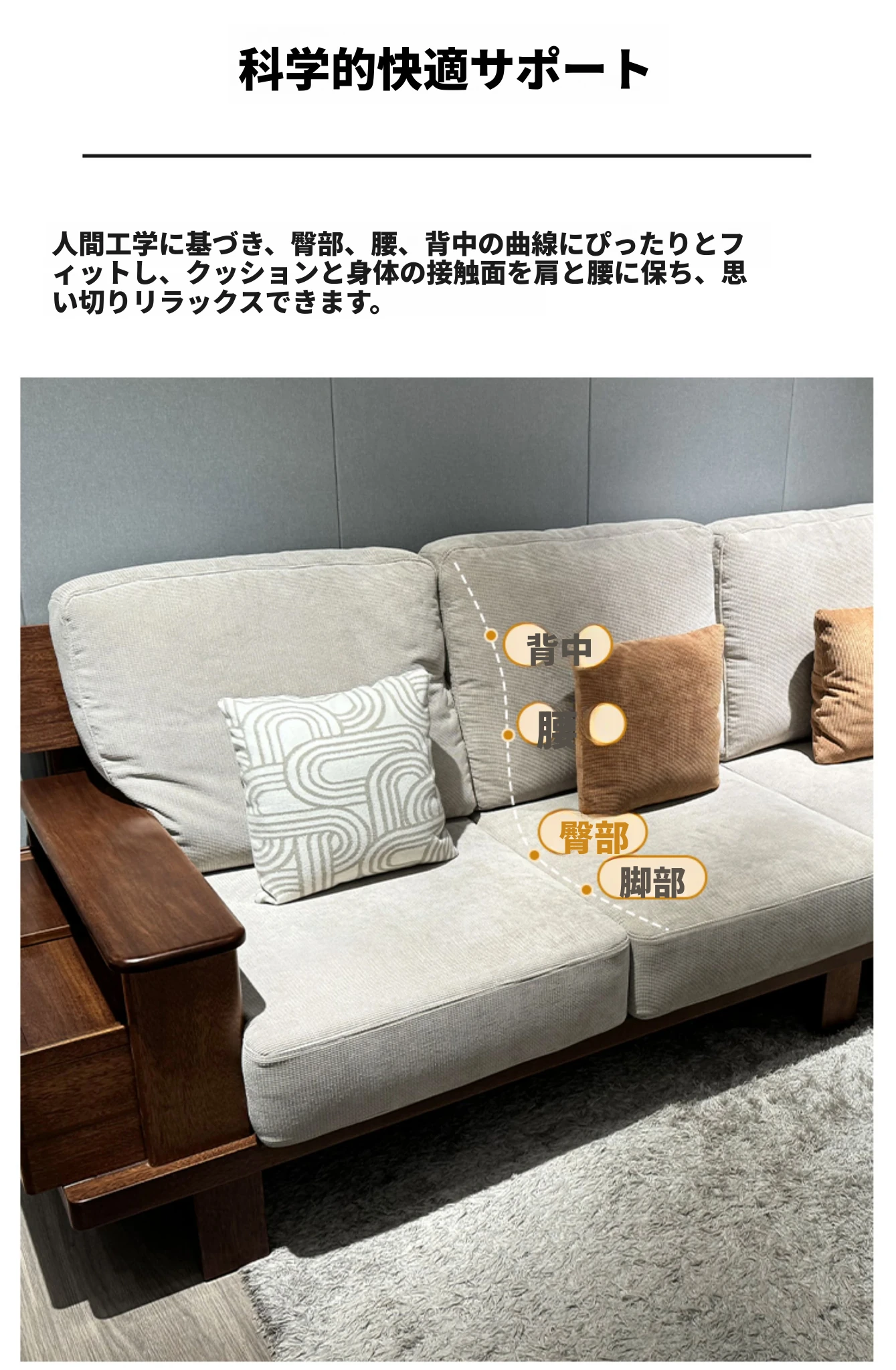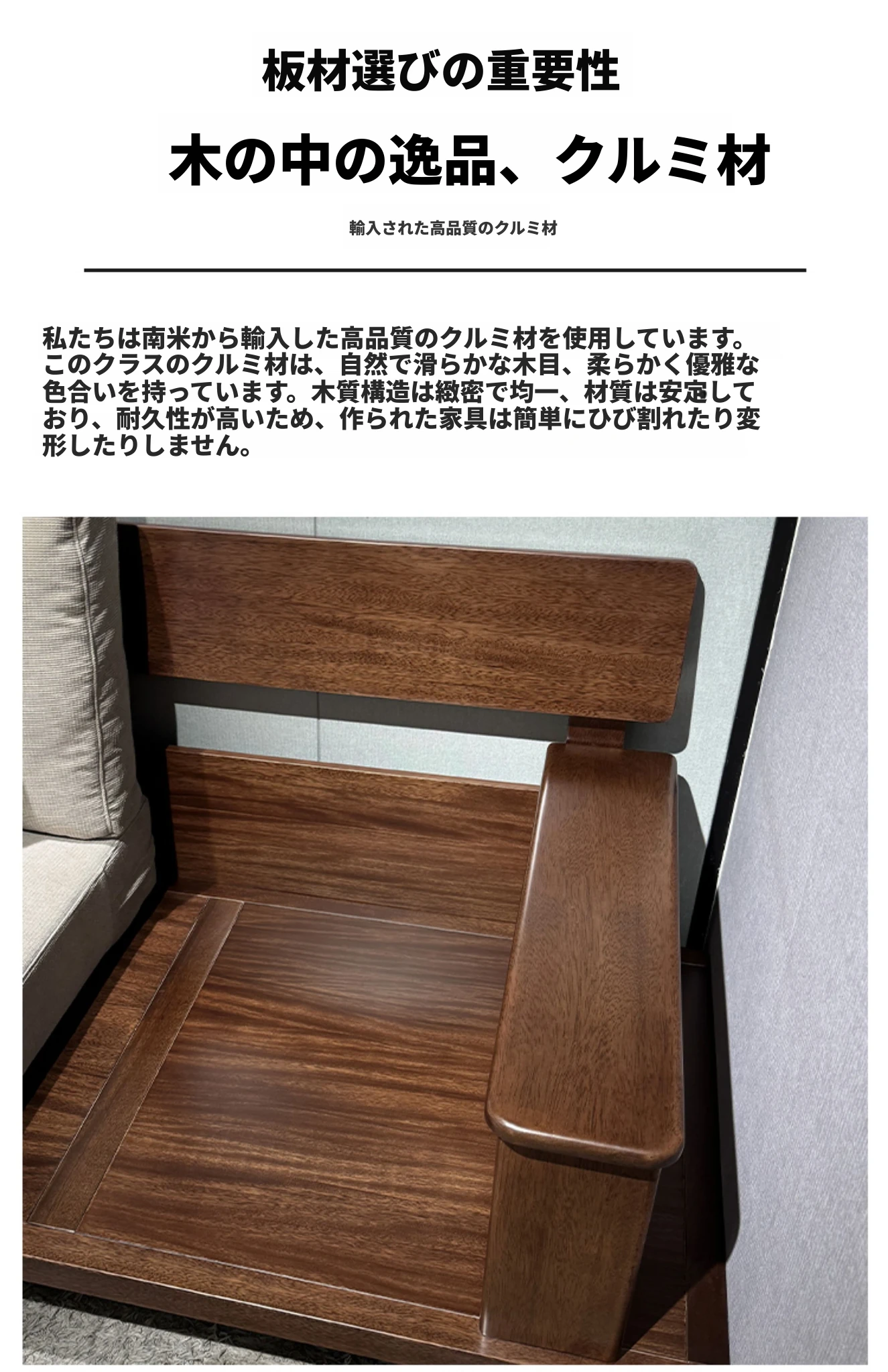 全実木製ソファ|シンプルでモダンなデザイン|小型住宅に最適なウォールナット材|収納付きの4人掛けソファ|快適なリビング空間を演出!