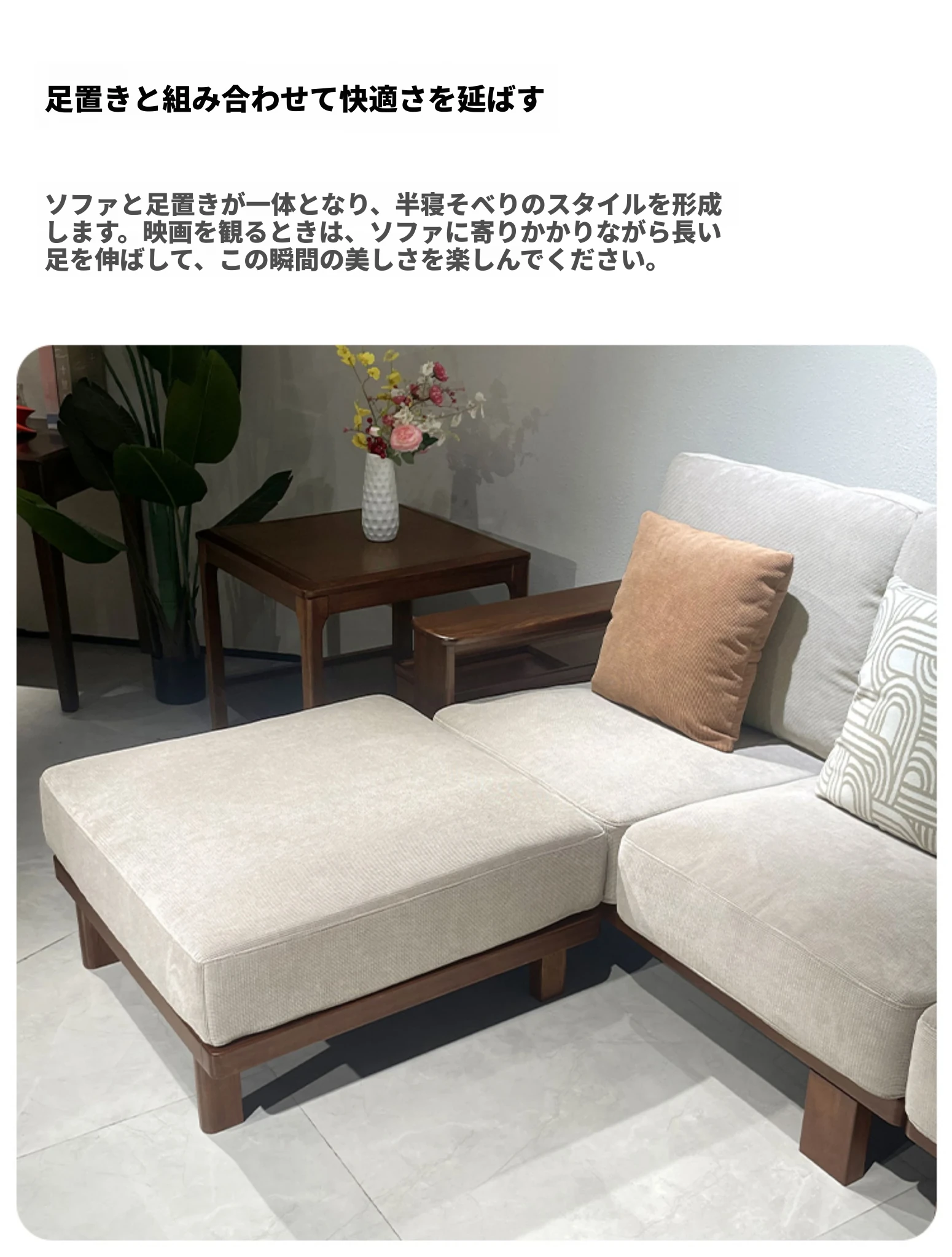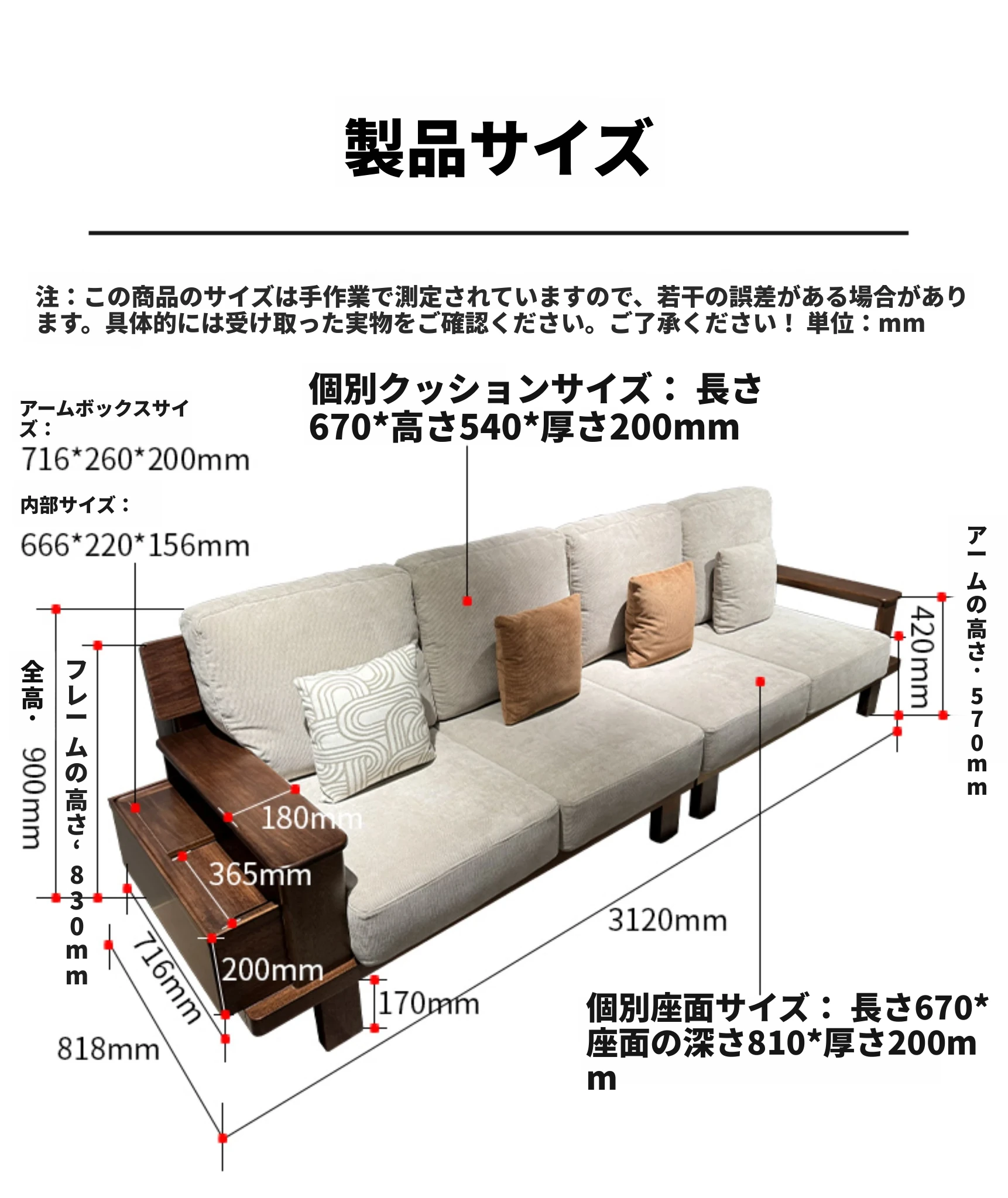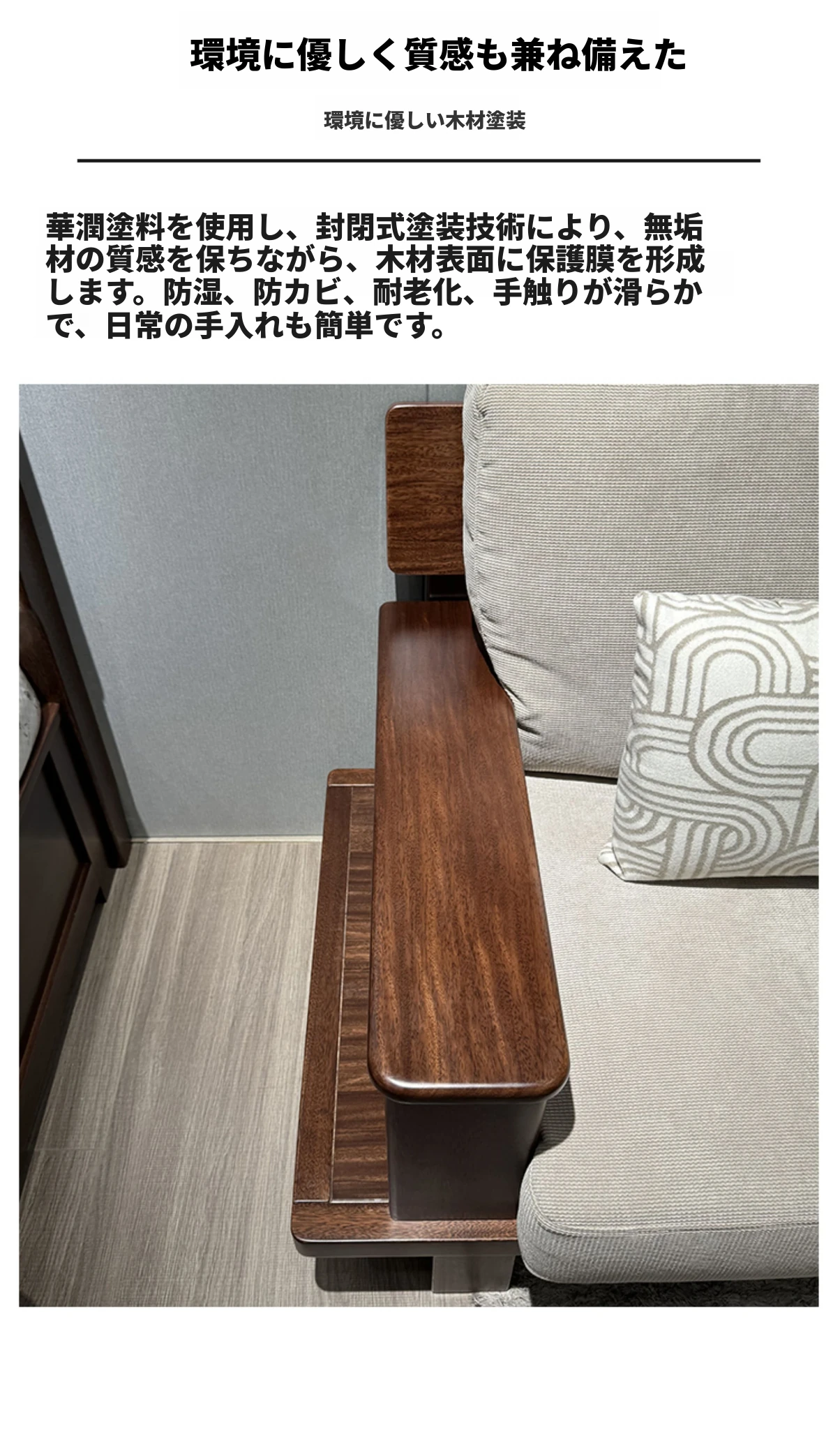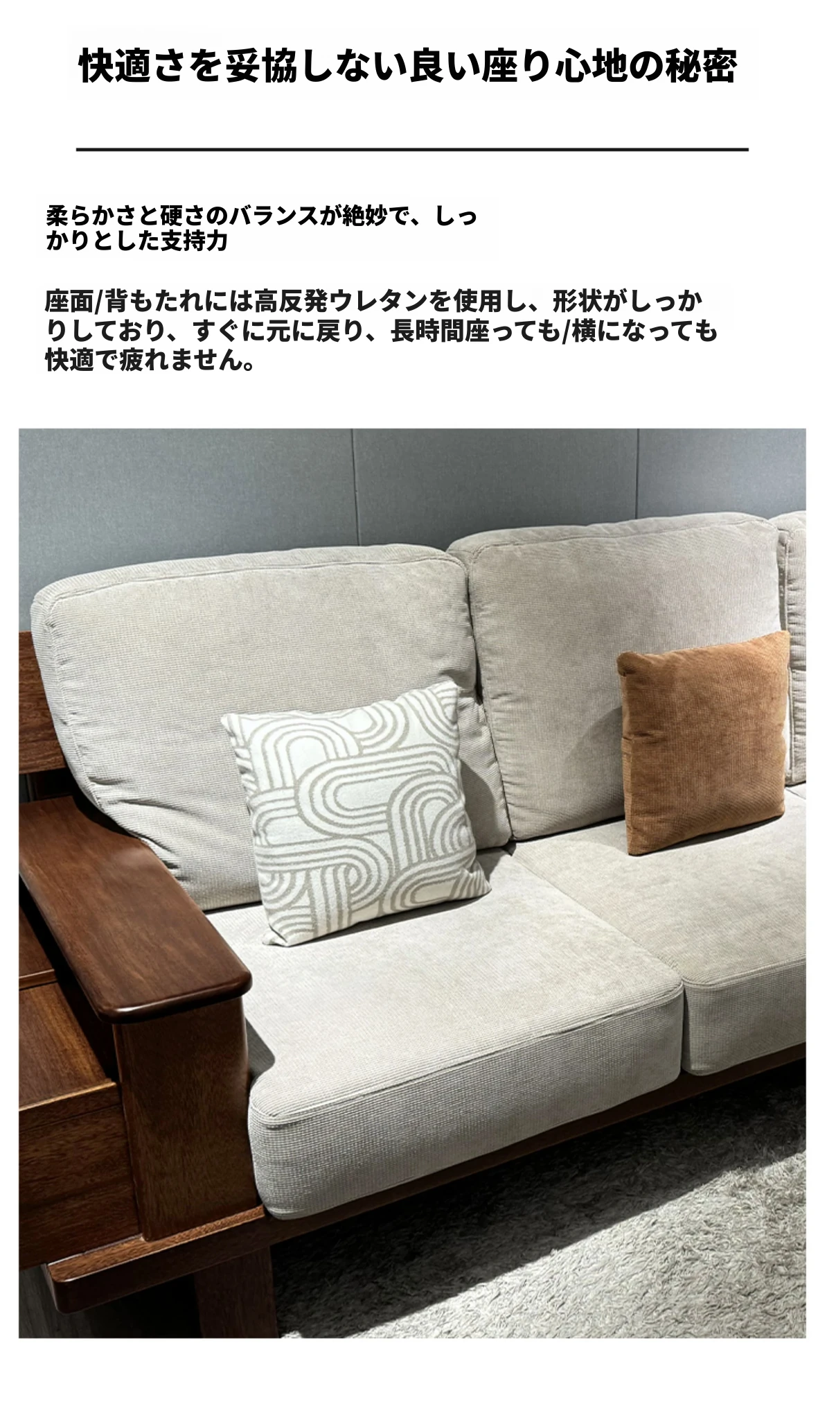 全実木製ソファ|シンプルでモダンなデザイン|小型住宅に最適なウォールナット材|収納付きの4人掛けソファ|快適なリビング空間を演出!