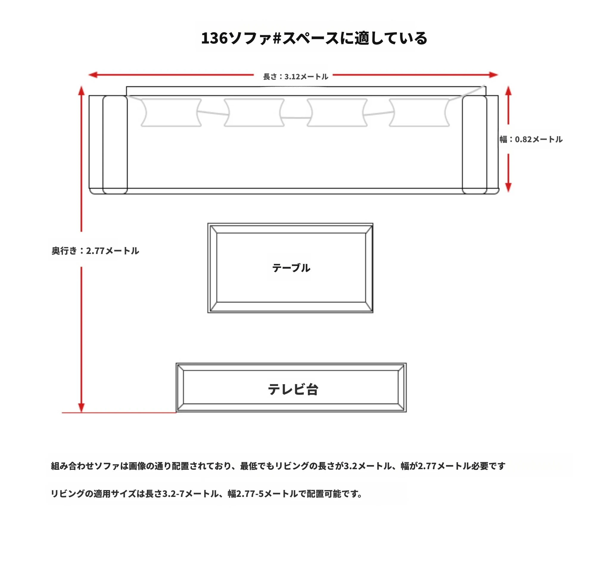 4人用ソファ+オットマン(片肘あり)【312*162*83cm】