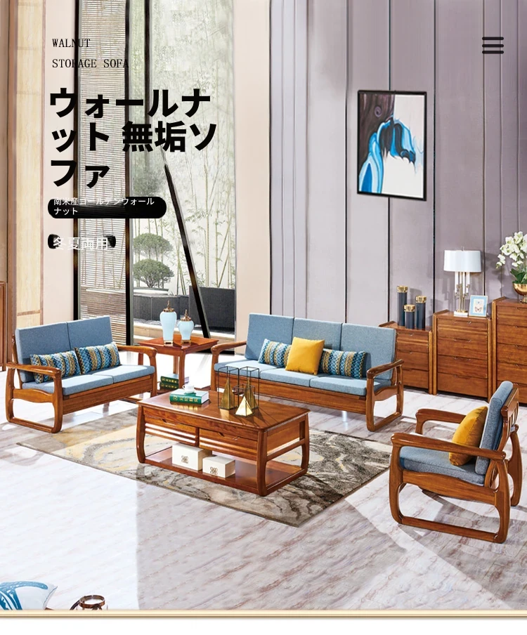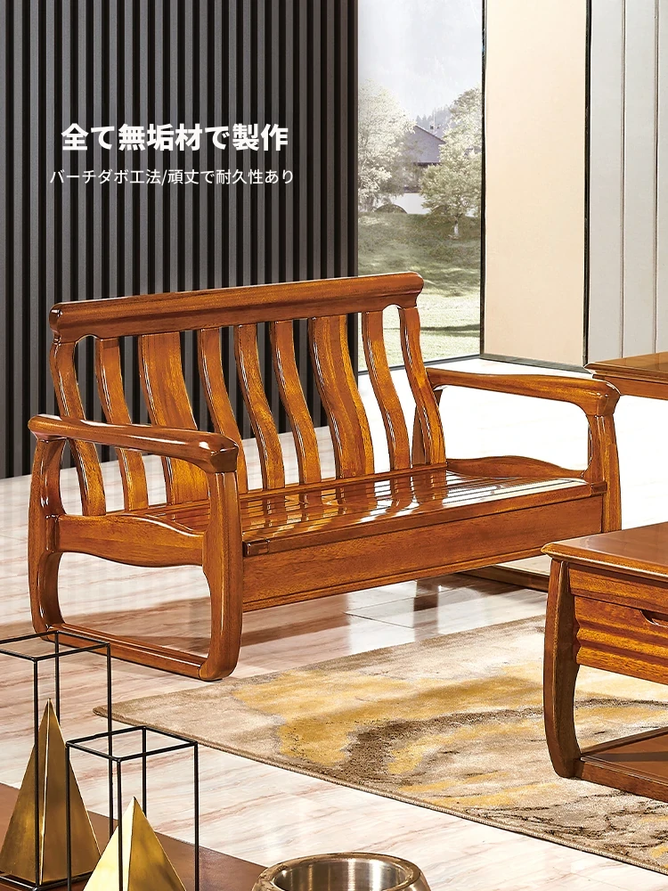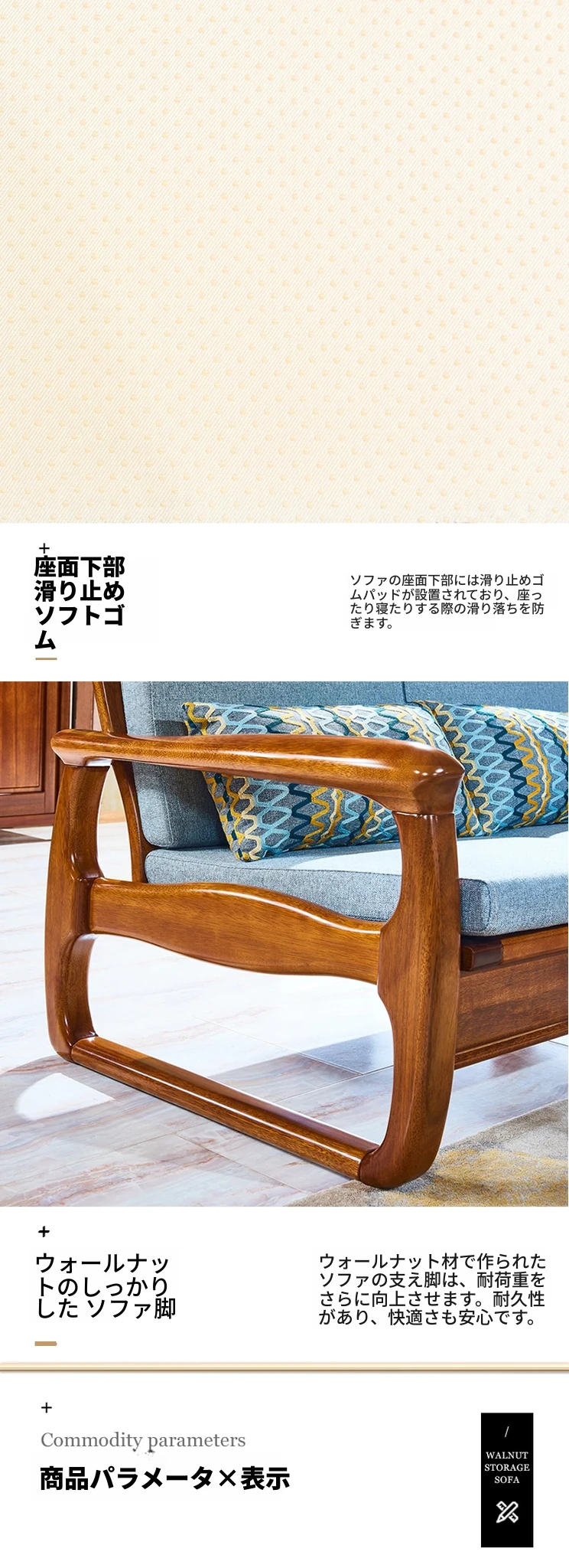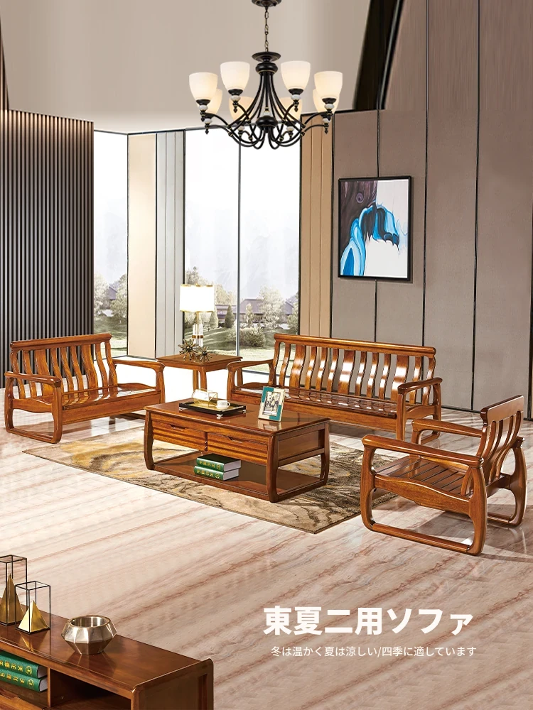 全実木製ソファ|金色の胡桃材を使用したモダン中華風デザイン|小型リビングに最適|1人掛け・2人掛け・3人掛けの選べるスタイル|冬も夏も快適に過ごせる!