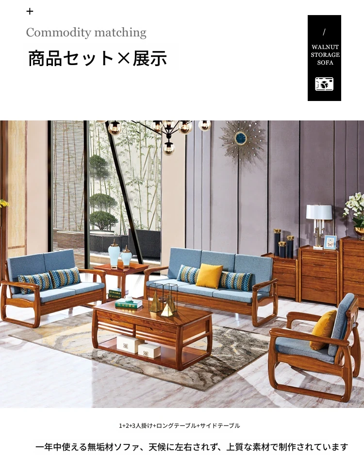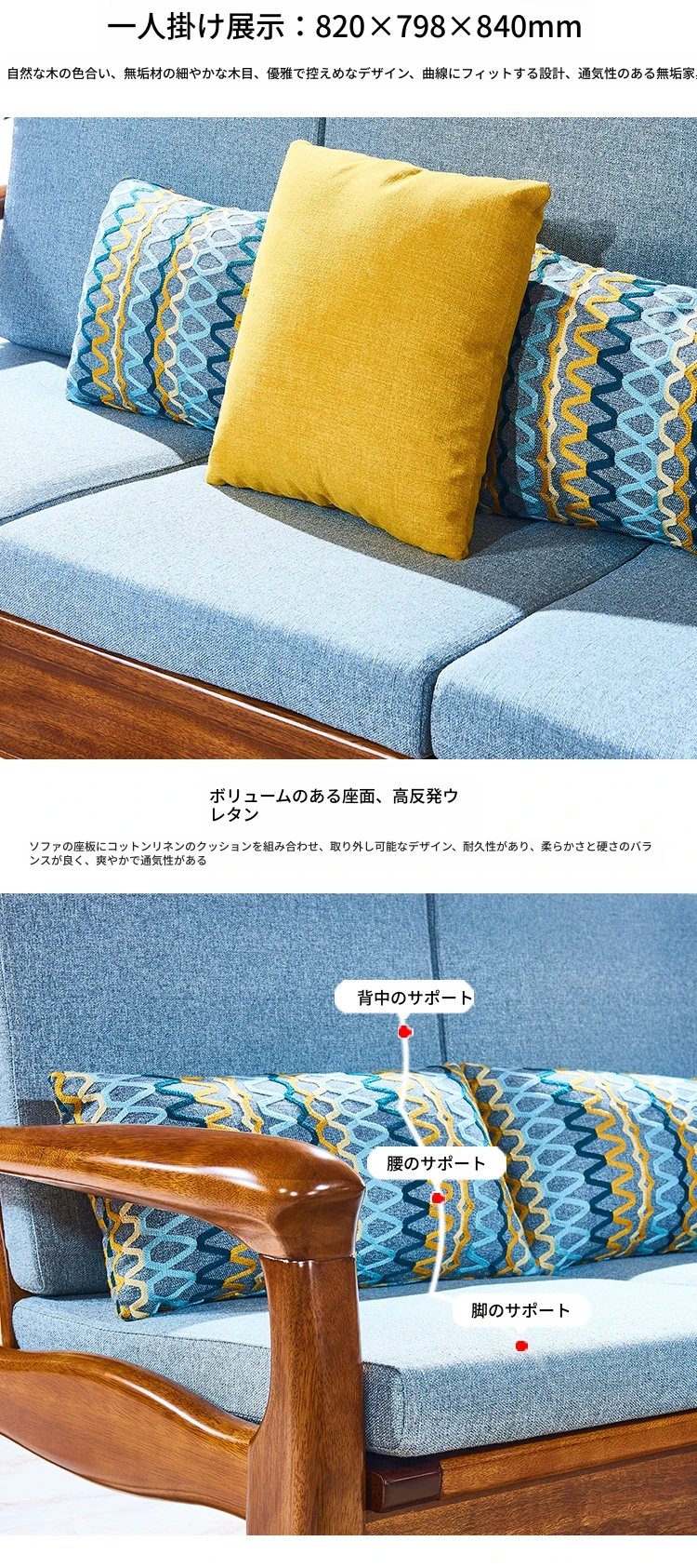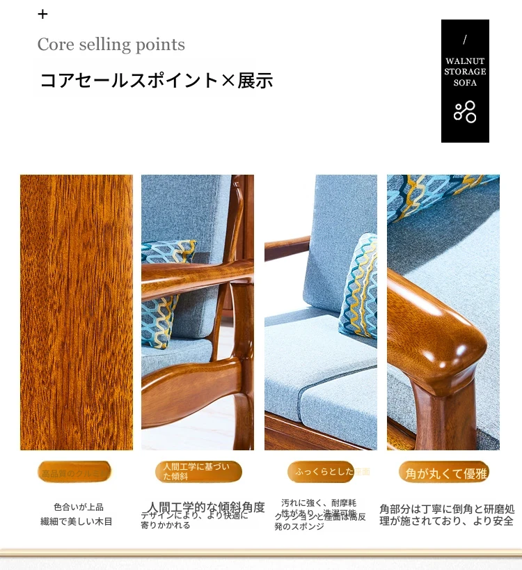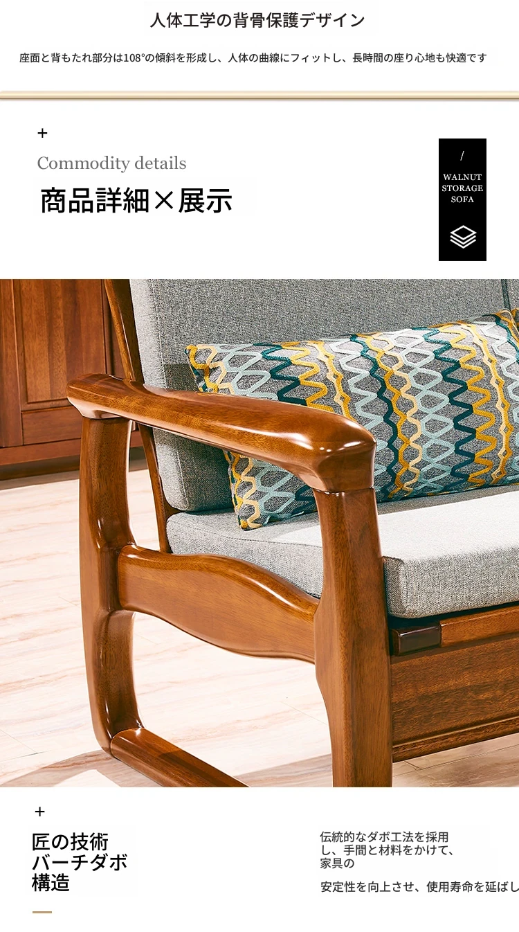 全実木製ソファ|金色の胡桃材を使用したモダン中華風デザイン|小型リビングに最適|1人掛け・2人掛け・3人掛けの選べるスタイル|冬も夏も快適に過ごせる!