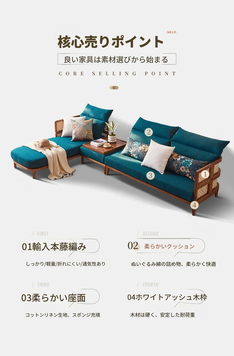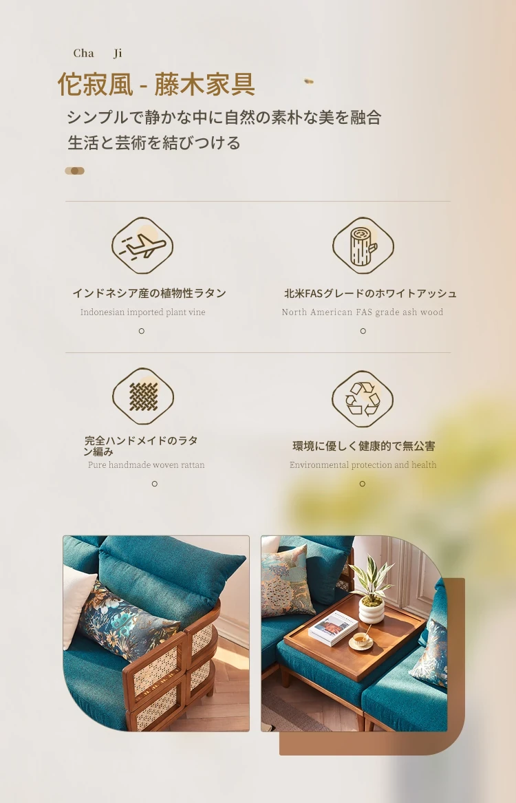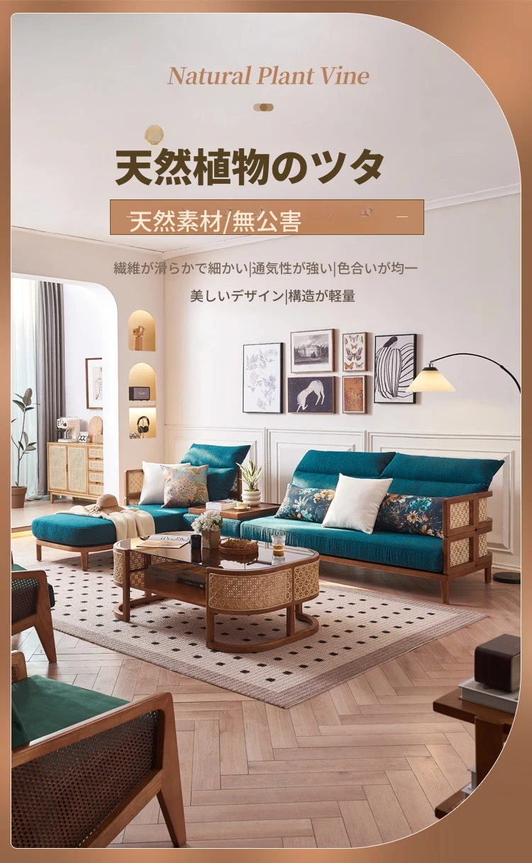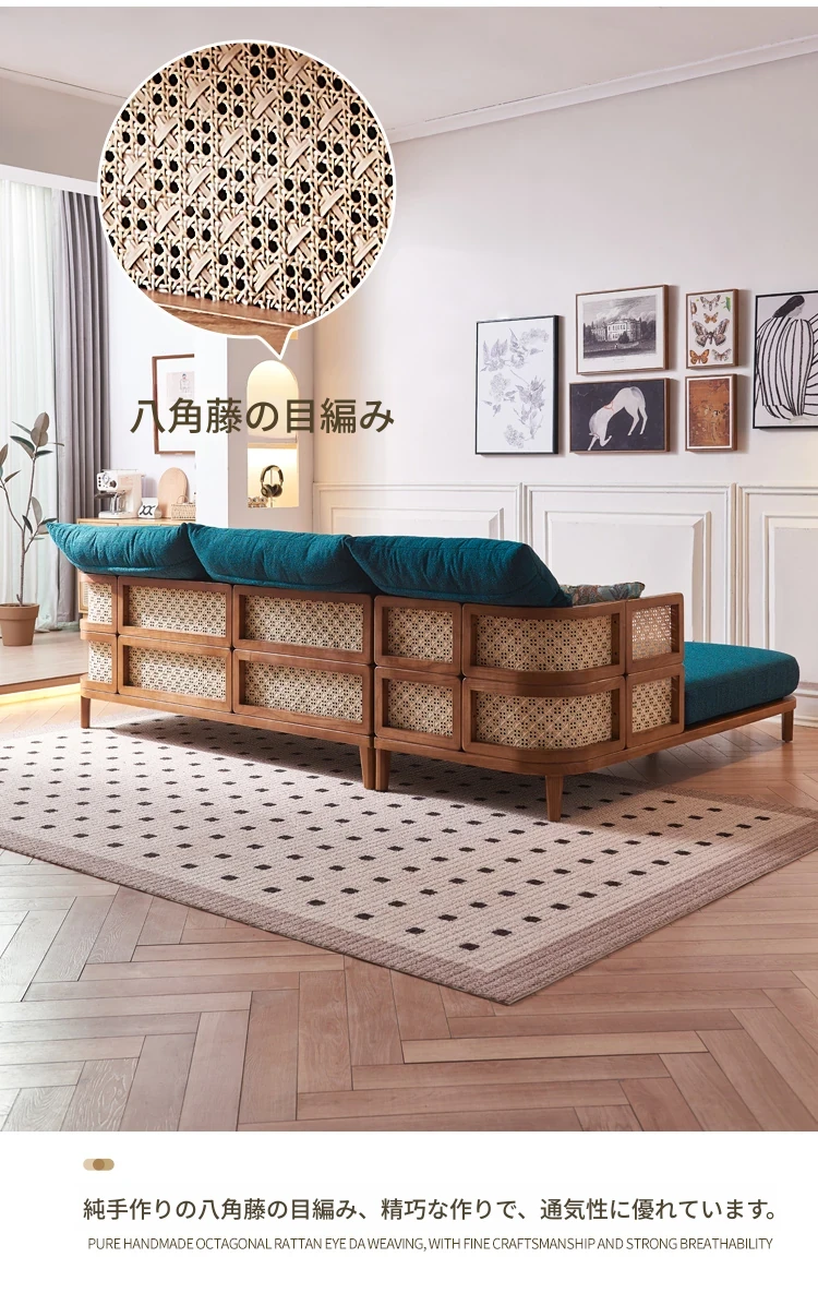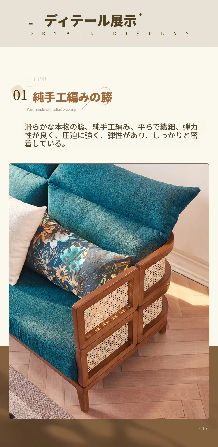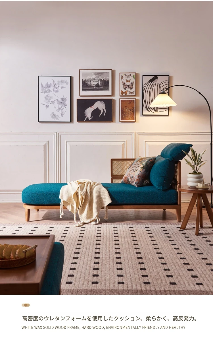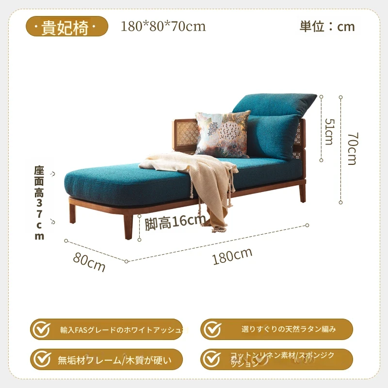 新中式デザインの天然木製リラックスカウチ、家庭用リビングルームに最適!藤編みの休憩用チェア、民宿やホテルでの昼寝にもぴったりなソファです。快適さとスタイルを両立した一品をお見逃しなく!