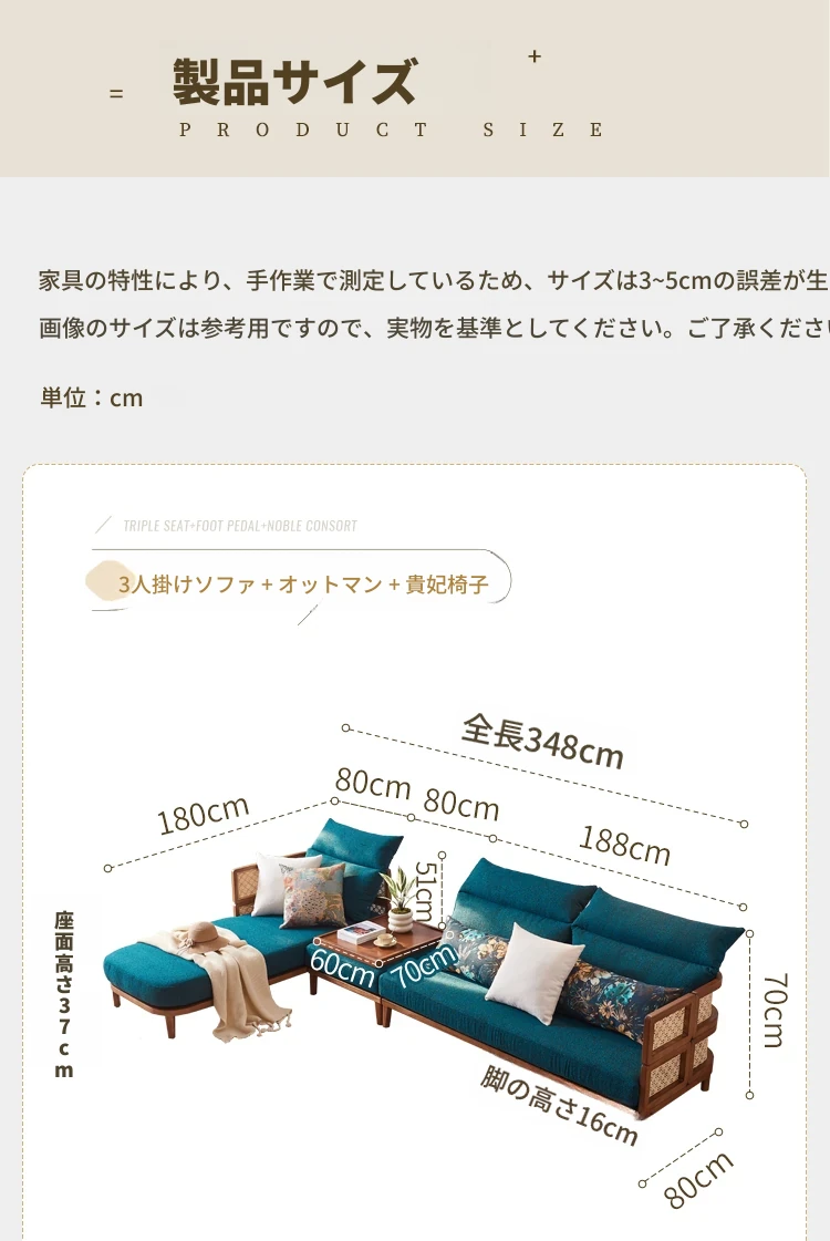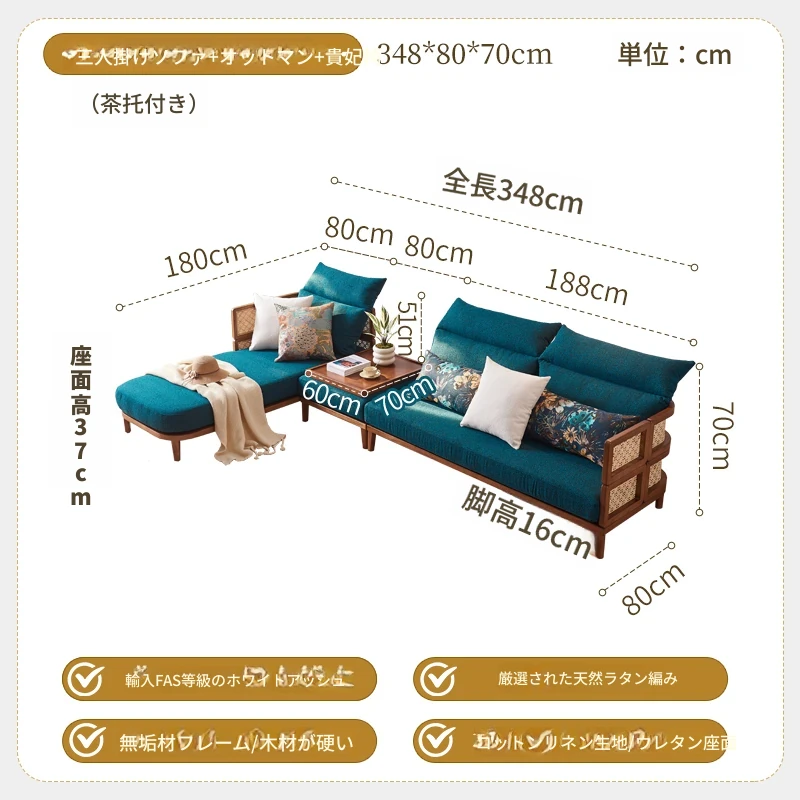 3人掛けソファ+オットマン(上のトレイ付き)+貴妃ソファ