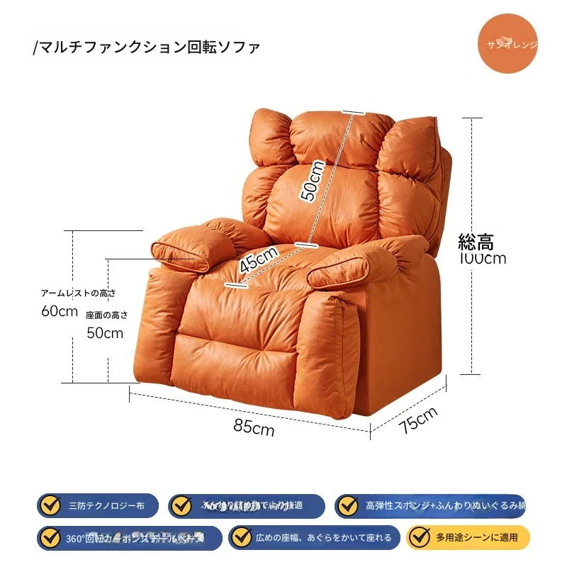 ファーストクラスサンオレンジ【3防テクノロジー布丨回転可能丨超深座】