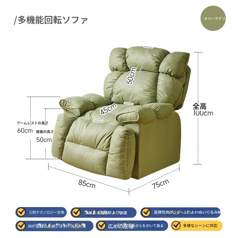 ファーストクラスオリーブグリーン【3防テクノロジー布丨回転可能丨超深座】