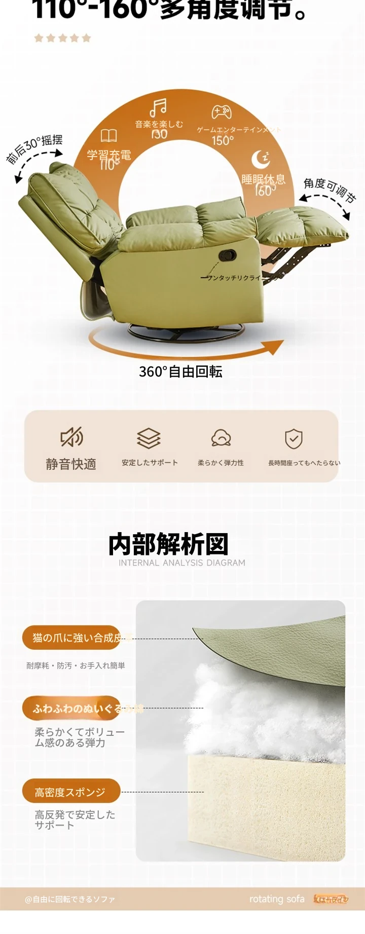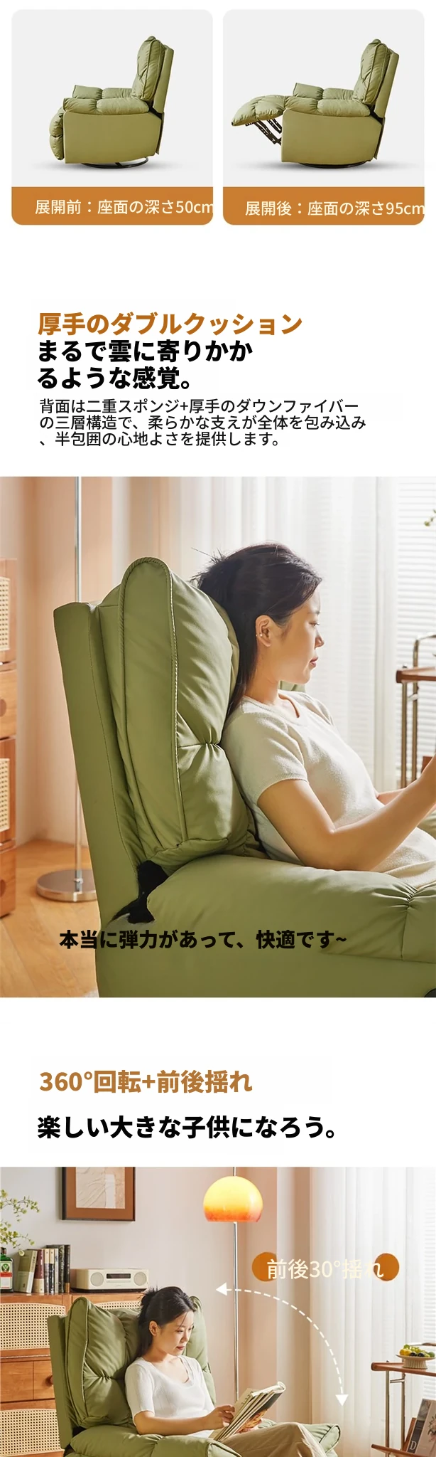 新作!リラックスソファ:寝転びもできる多機能シングルローリングチェア。リビングやバルコニーに最適な、くつろぎのひとときを提供します。あなたの休息空間を彩る、快適さとスタイルを兼ね備えた一品!