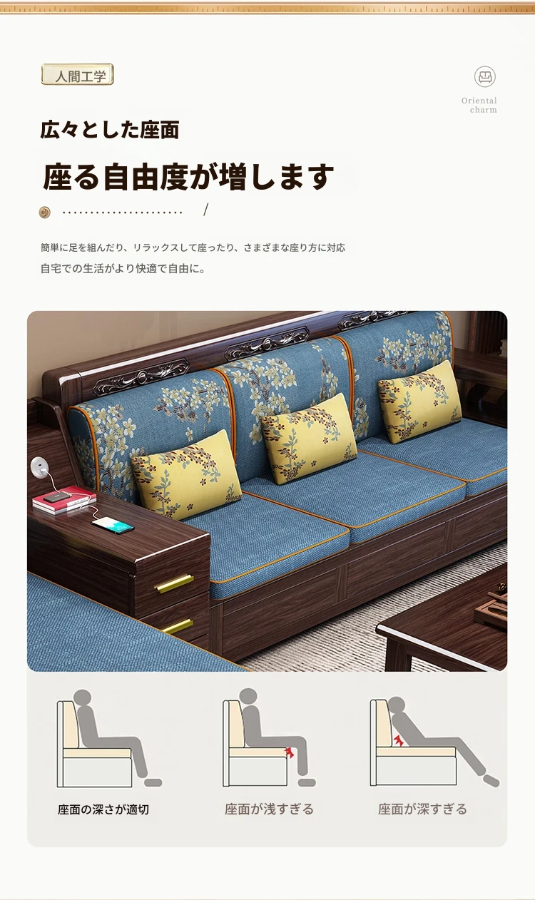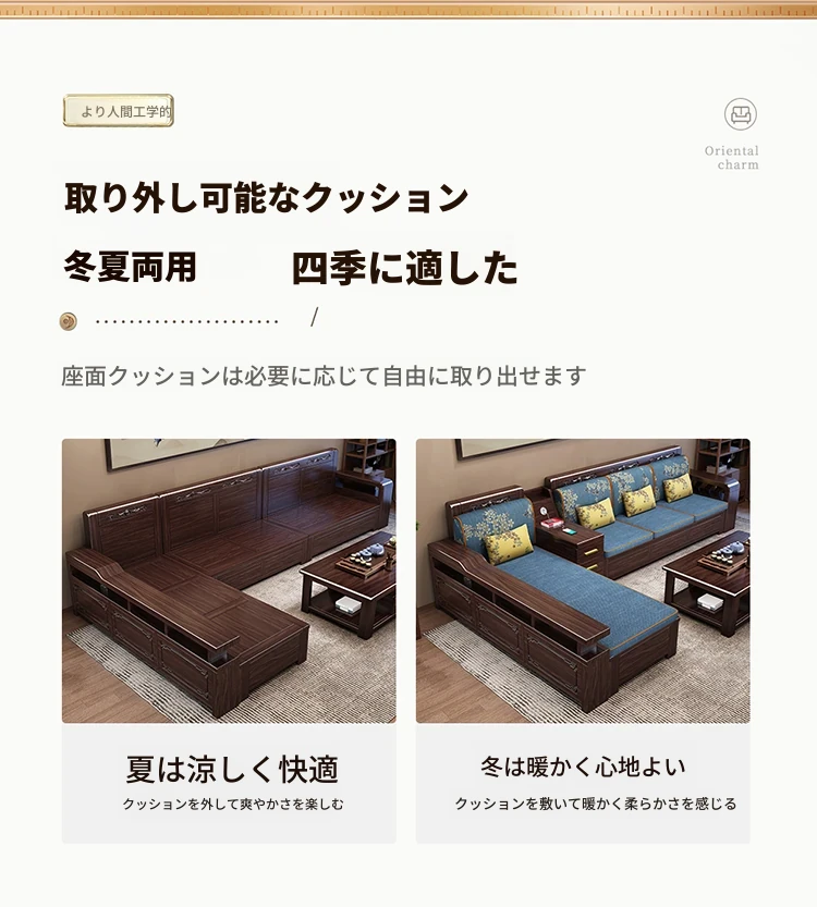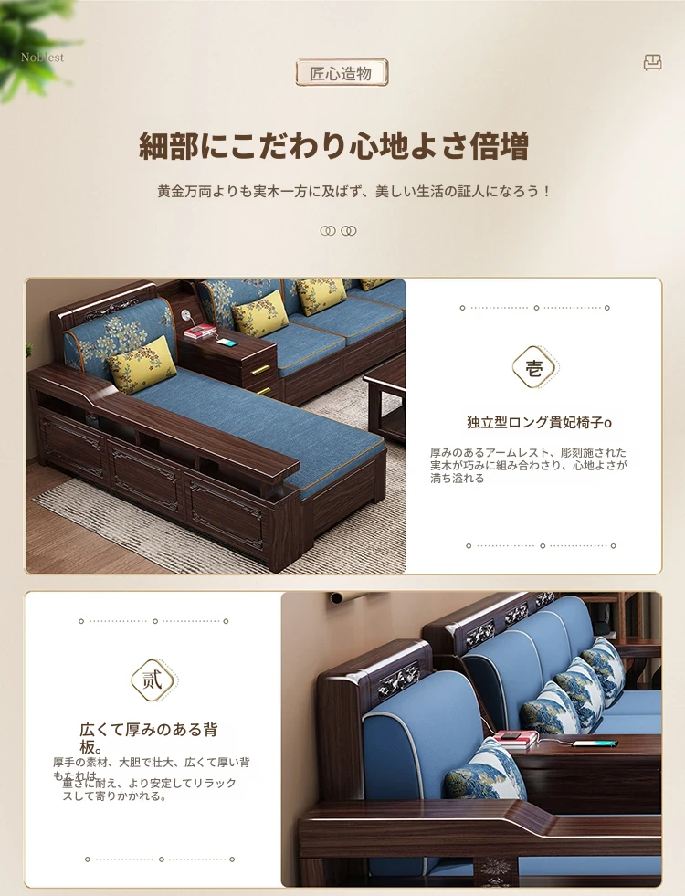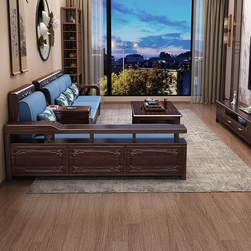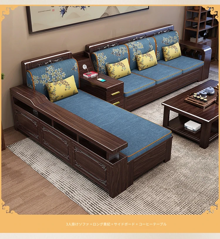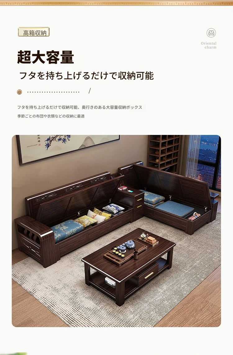 紫金檀木製のモダン新中式リビング用ソファセット - 美しいデザインと実用性を兼ね備えた全木製収納ソファで、快適な居住空間を演出します!