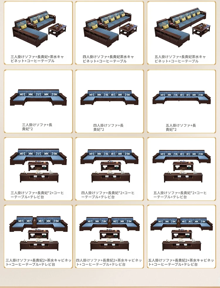 4人用ソファ+貴妃椅*2+テーブル+テレビ台