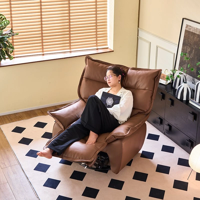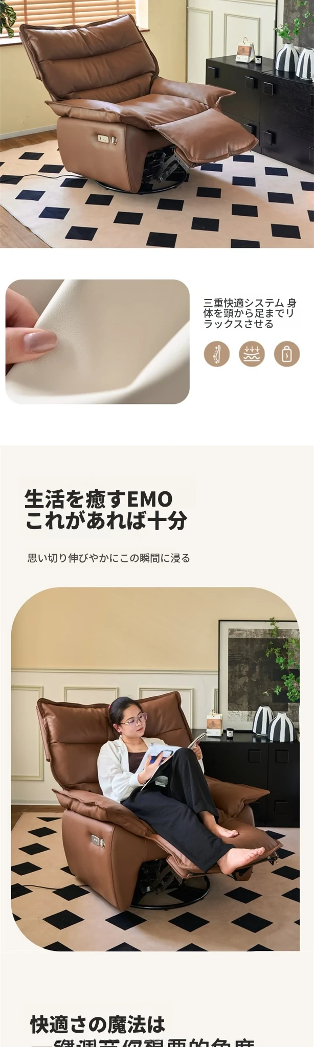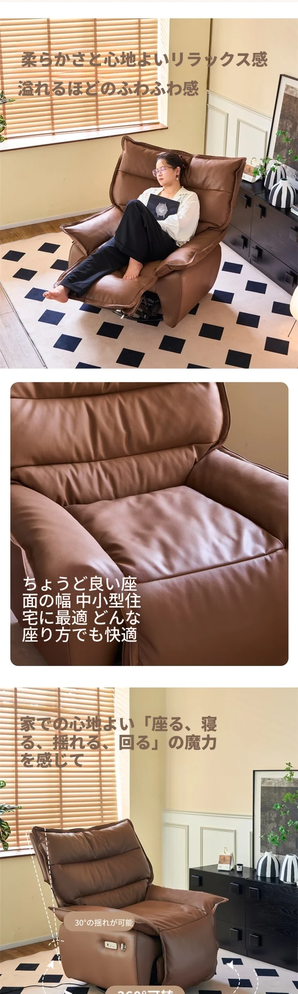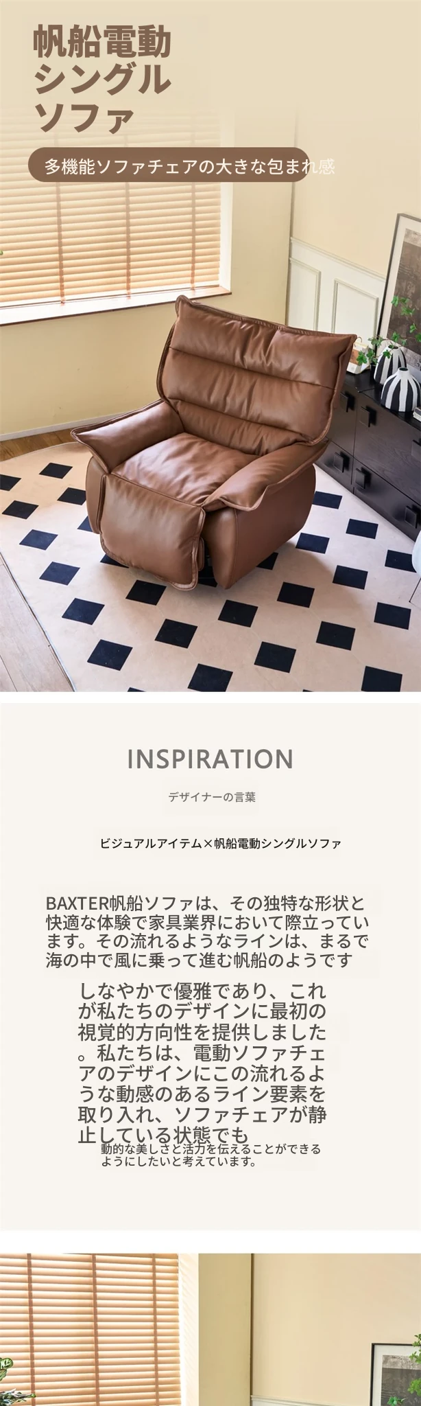 帆船スタイルの一人用電動マルチファンクションソファ、リクライニング機能付き!くつろぎの時間を演出する電動ロッキングチェア、バルコニーにぴったりのリラックスソファ。