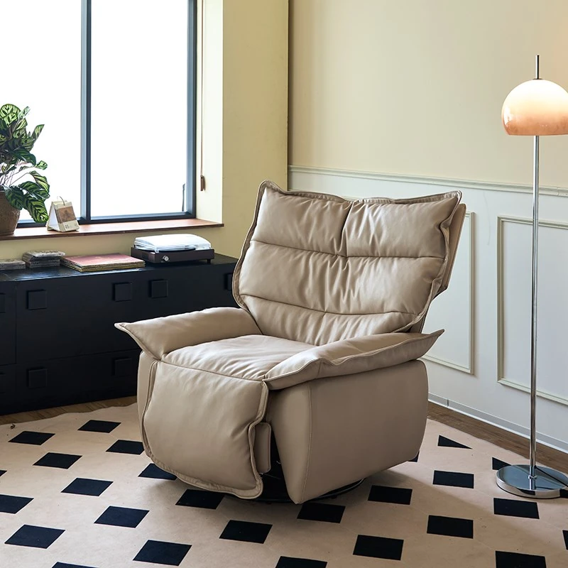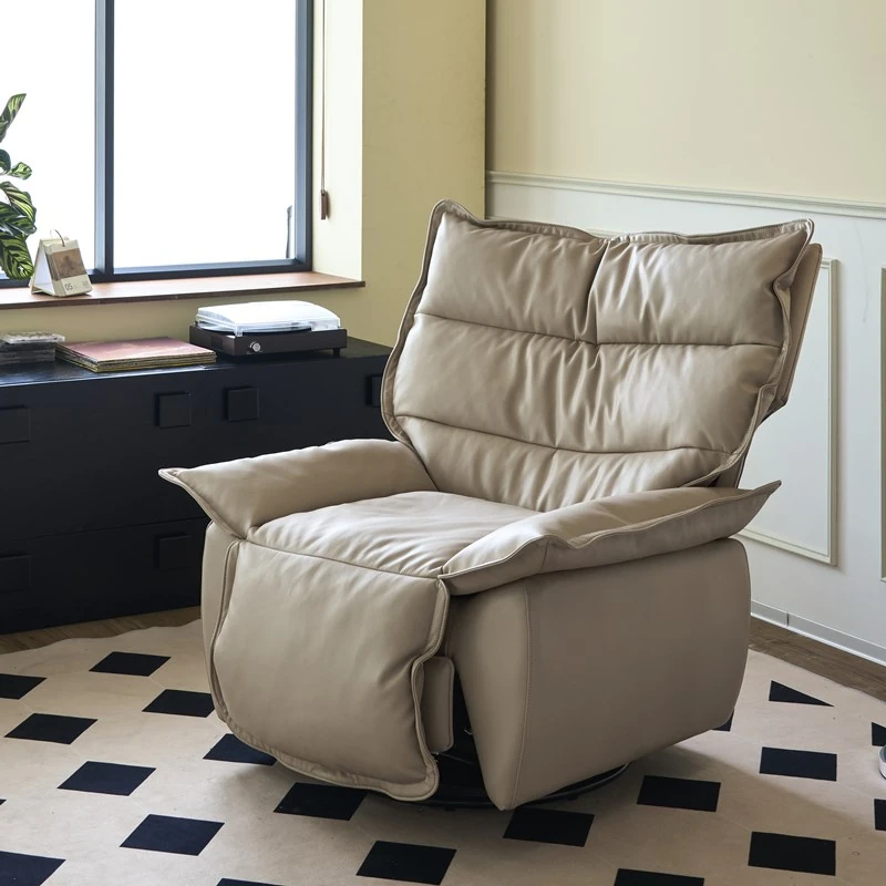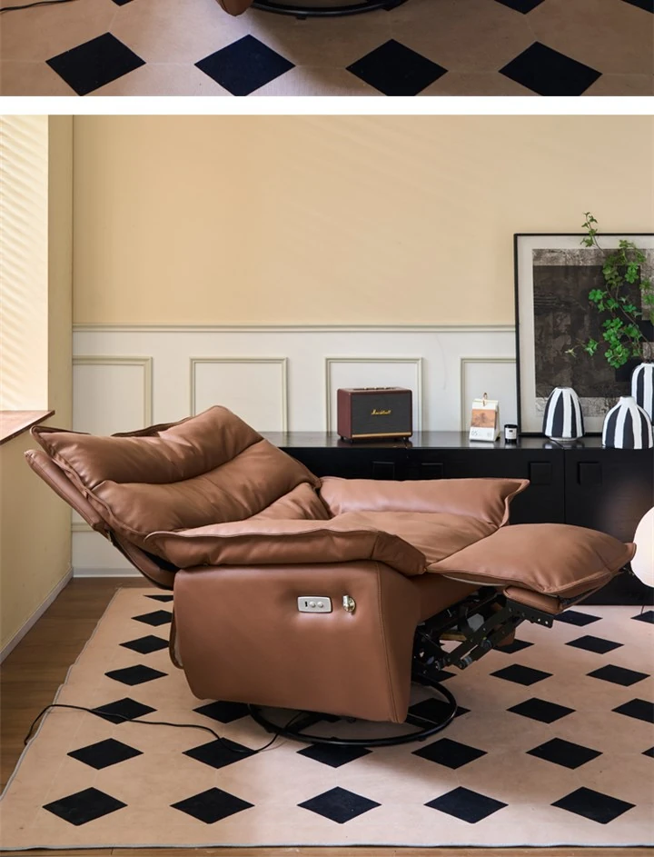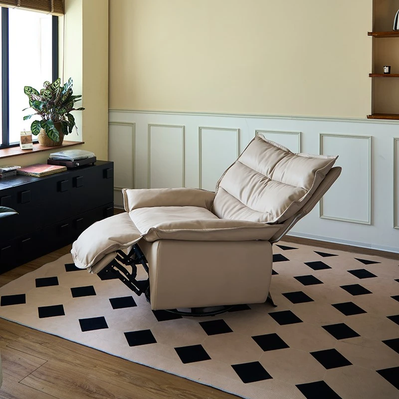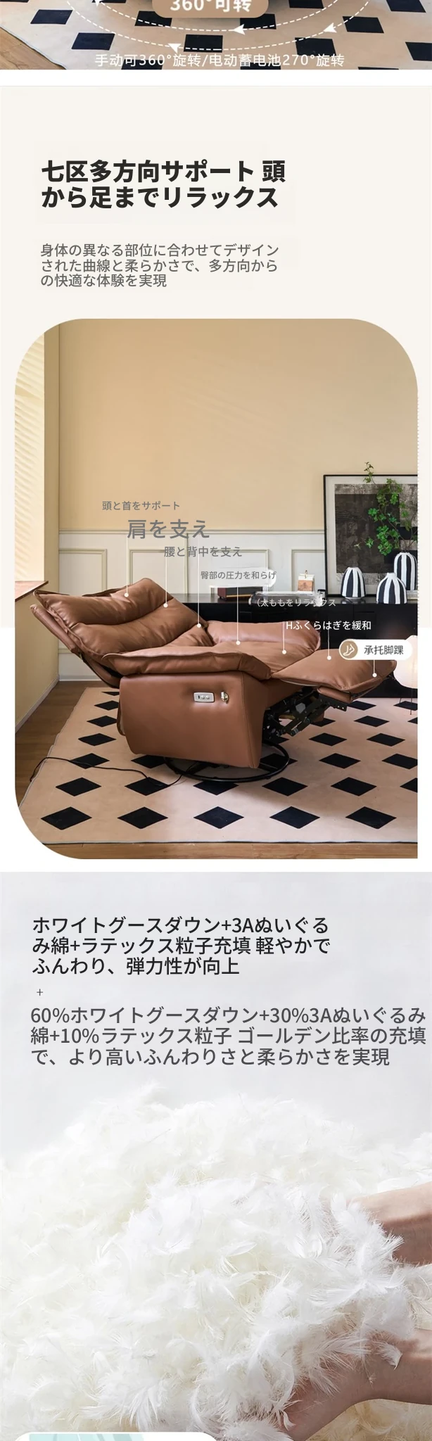 帆船スタイルの一人用電動マルチファンクションソファ、リクライニング機能付き!くつろぎの時間を演出する電動ロッキングチェア、バルコニーにぴったりのリラックスソファ。