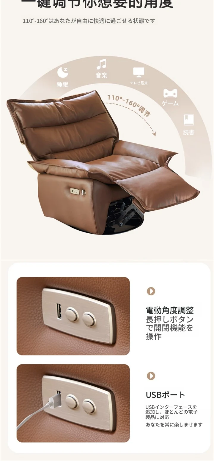 【電動タイプ 輸入一級牛革】コーヒーブラウン リクライニング可+USB