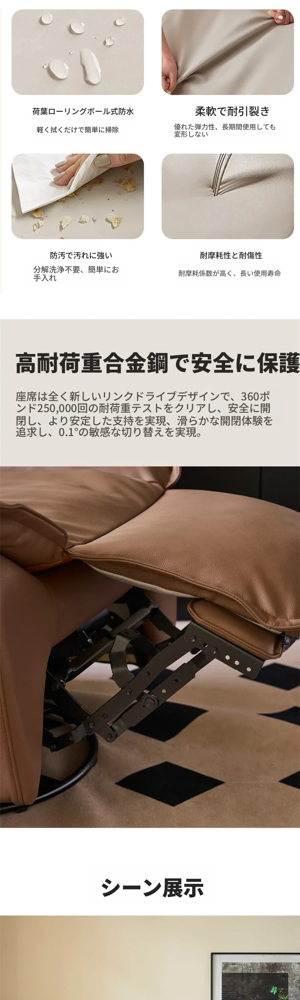 【バッテリータイプ 輸入一級牛革】コーヒーブラウン リクライニング可+USB