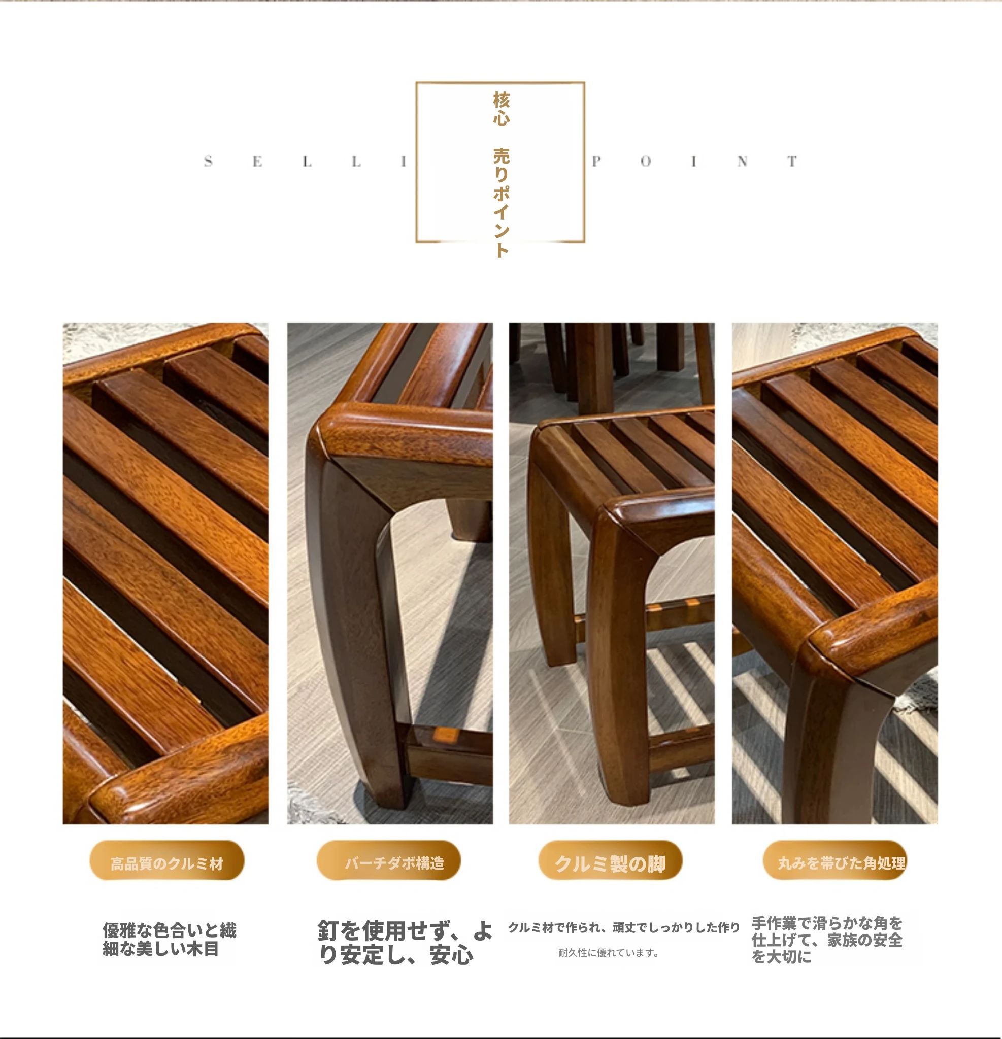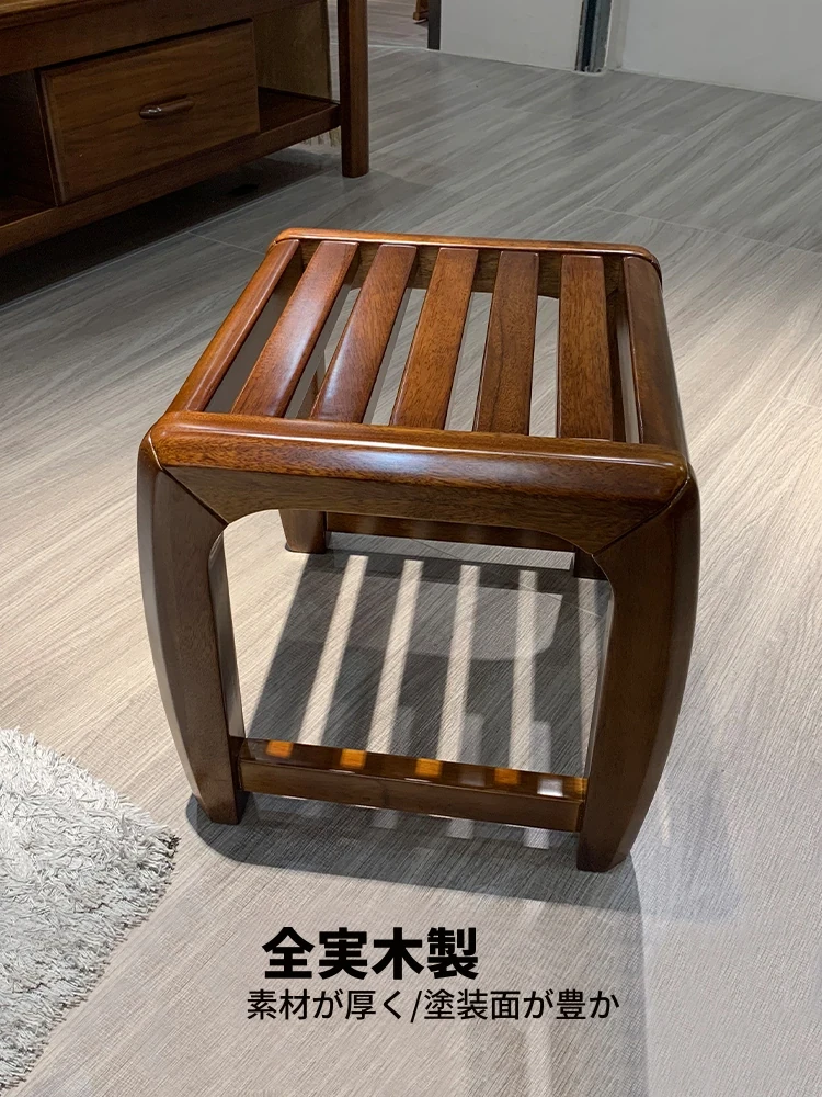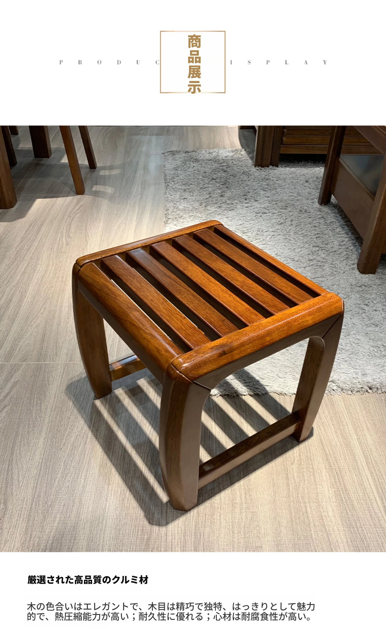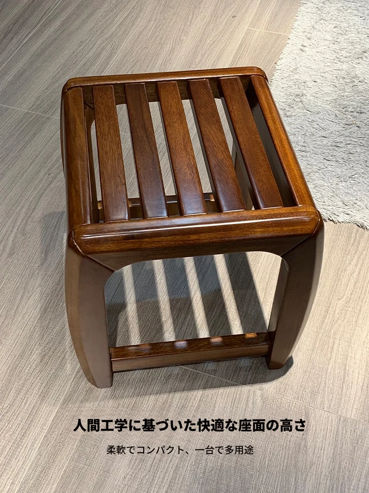 全木製のミニスツール - リビングや家庭用に最適!シンプルでスタイリッシュなデザイン、ティーテーブルや靴を履く際にも便利。中華風の美しさを兼ね備えた化粧用スツールで、あなたの空間を引き立てます!