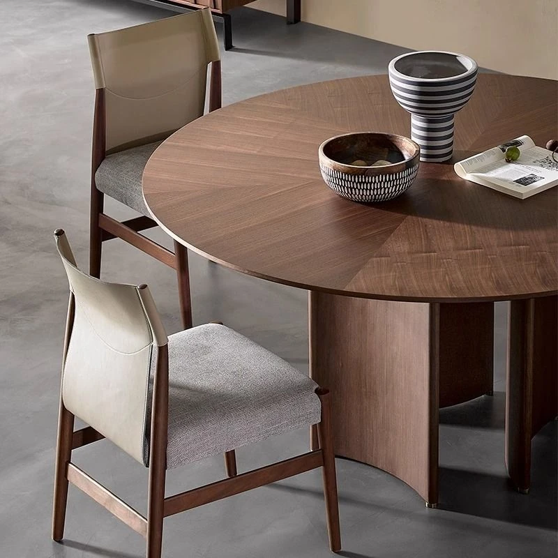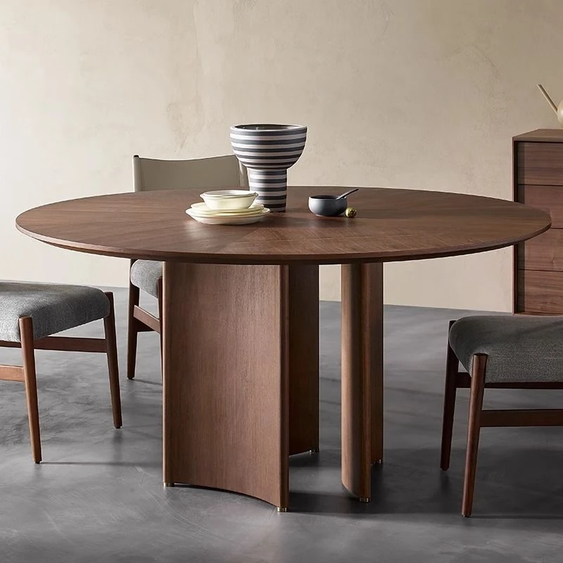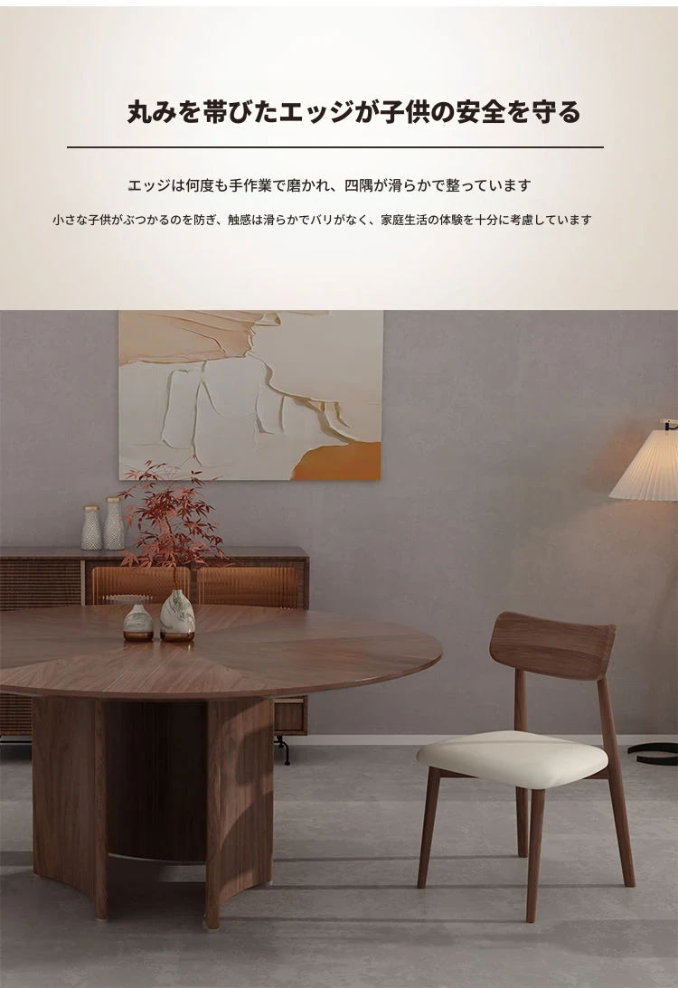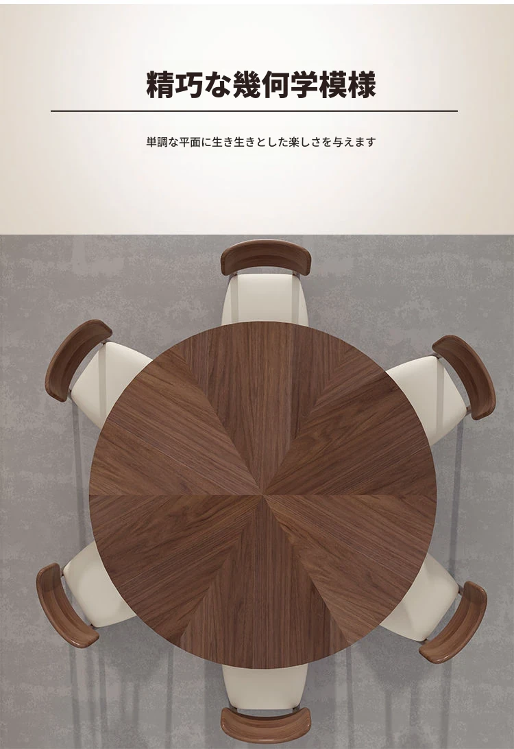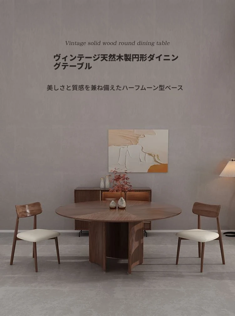 レトロな無垢材の円形ダイニングテーブルセット - コンパクトな家族向け、回転プレート付きのブラックウォールナット円卓。食卓を華やかに彩り、家族や友人との楽しいひとときを演出します!