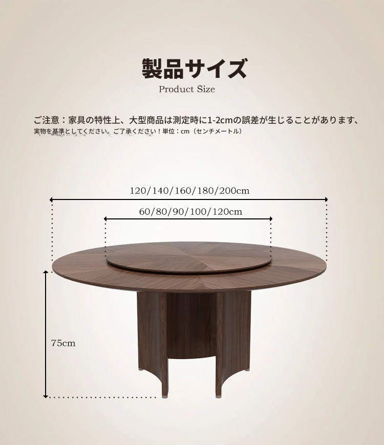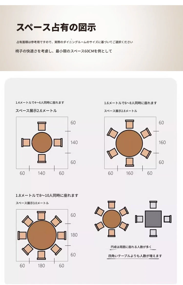 1.8メートル円形ダイニングテーブル【回転盤あり】
