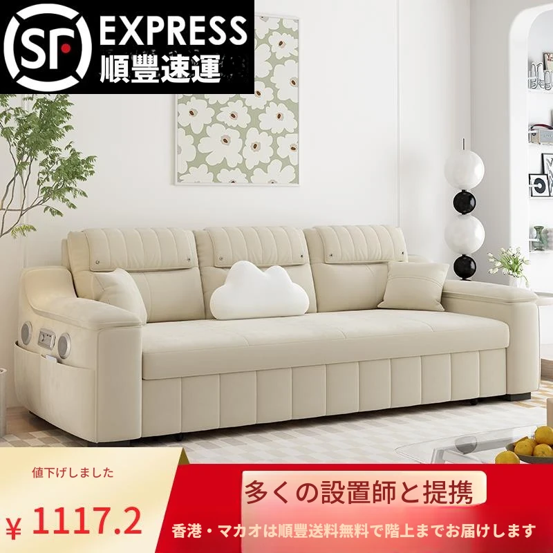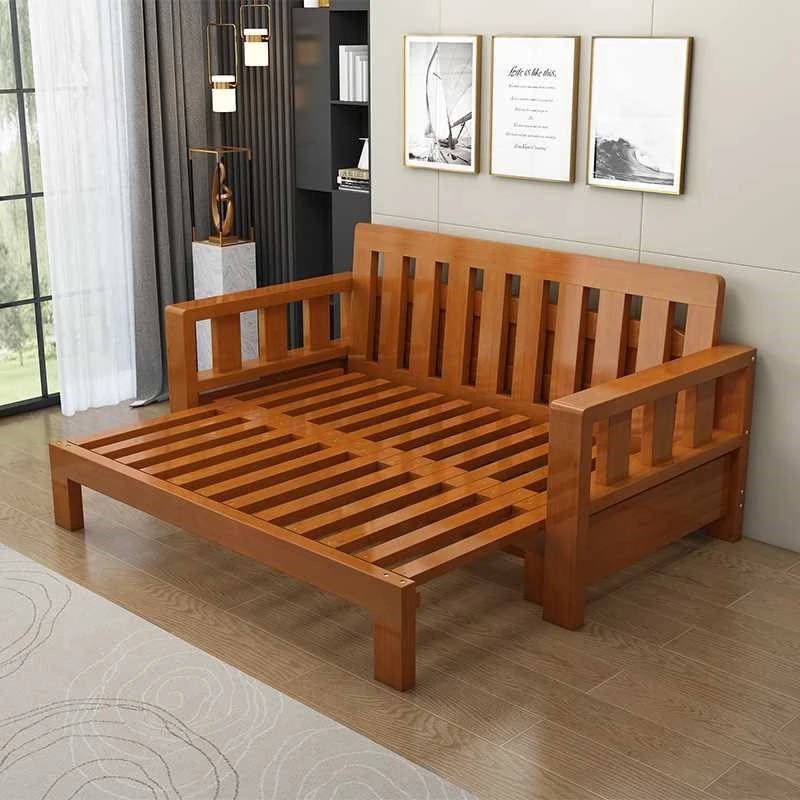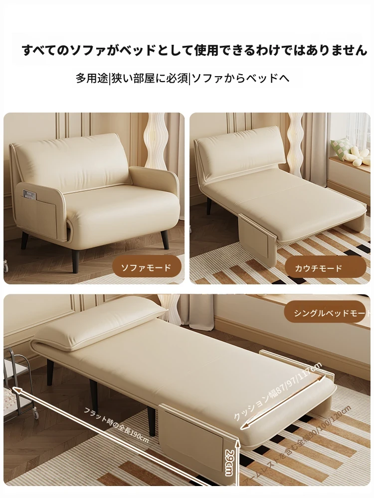 7T全実木ソファーベッド - スタイリッシュな収納機能付き、伸縮自在で多機能!リビングにぴったりな折りたたみソファーベッド、小スペースにも最適です。