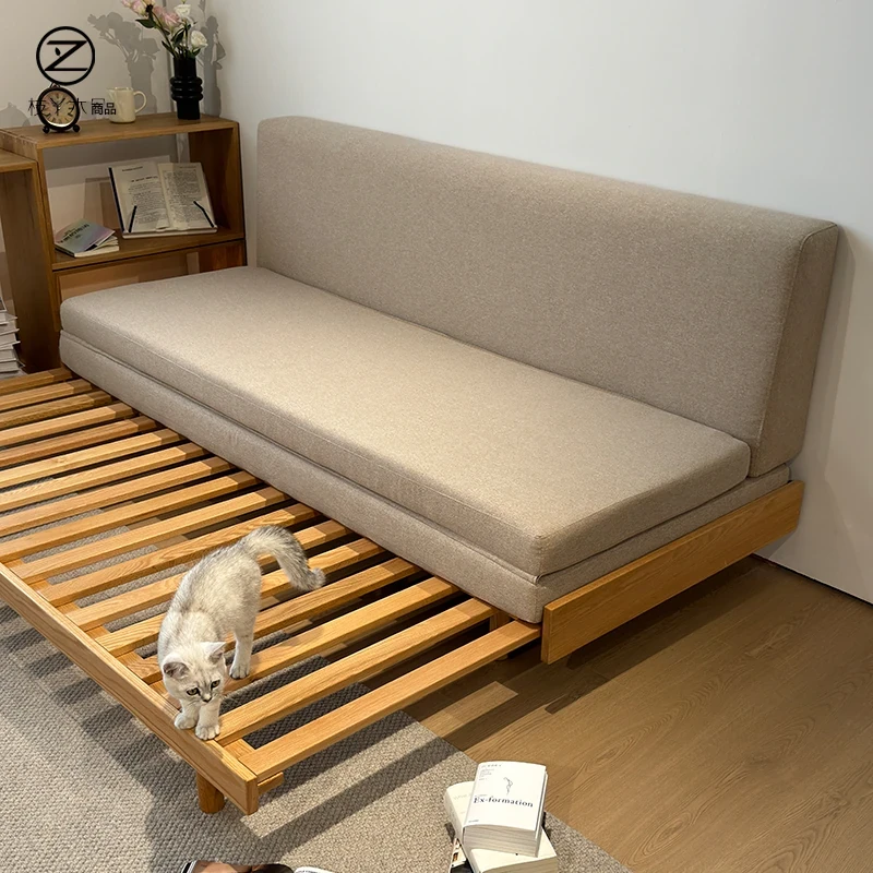 全実木のスライド式ソファベッド - 北米産のレッドオーク材使用!小型住宅や次の寝室、リビング、書斎に最適な機能的で伸縮可能なベッド。洗練されたデザインで快適な空間を実現します!