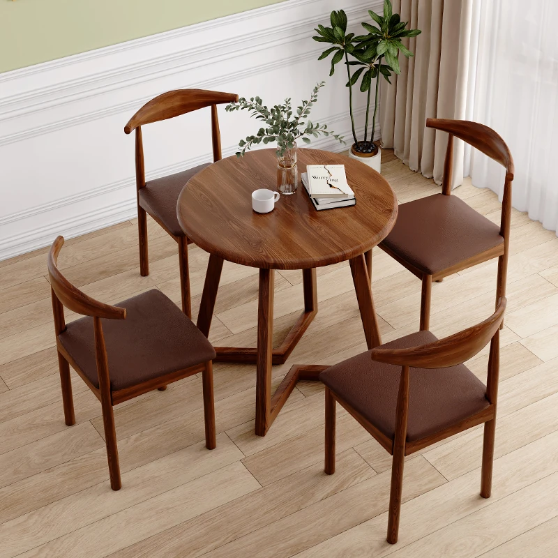 シンプルな木目調の商談テーブル&椅子セット - カフェやミルクティー店に最適!おしゃれで実用的な小型丸テーブルで、食事やお客様の接待にもぴったり。ビジネスシーンを彩るスタイリッシュなデザイン!